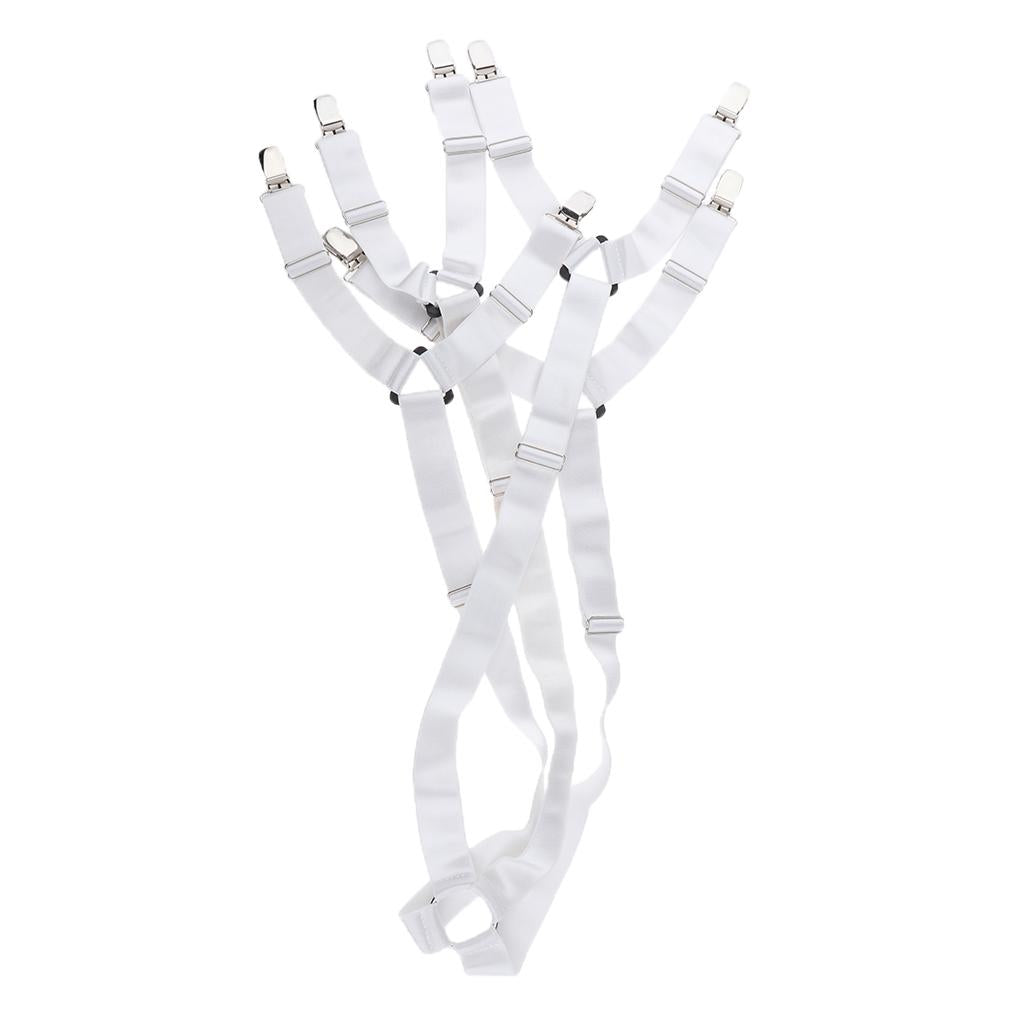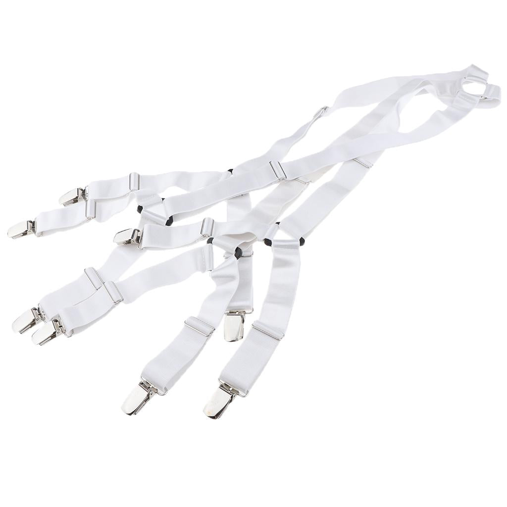 Sheet Bed Suspenders Adjustable Crisscross Sheet Band Straps Grippers White