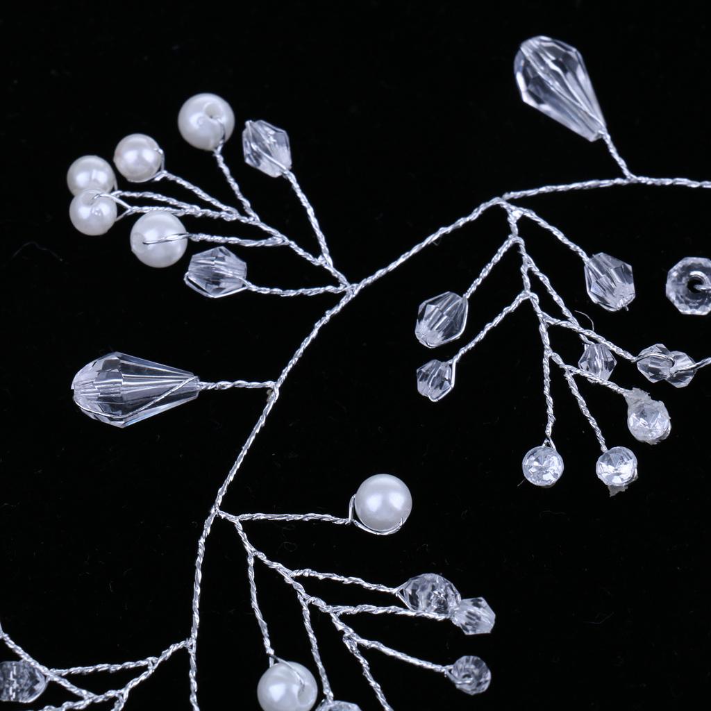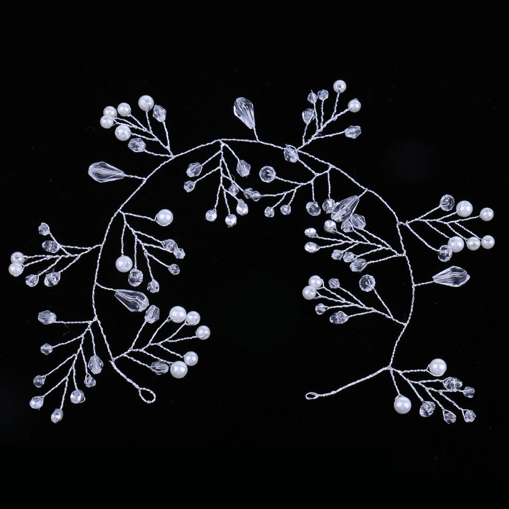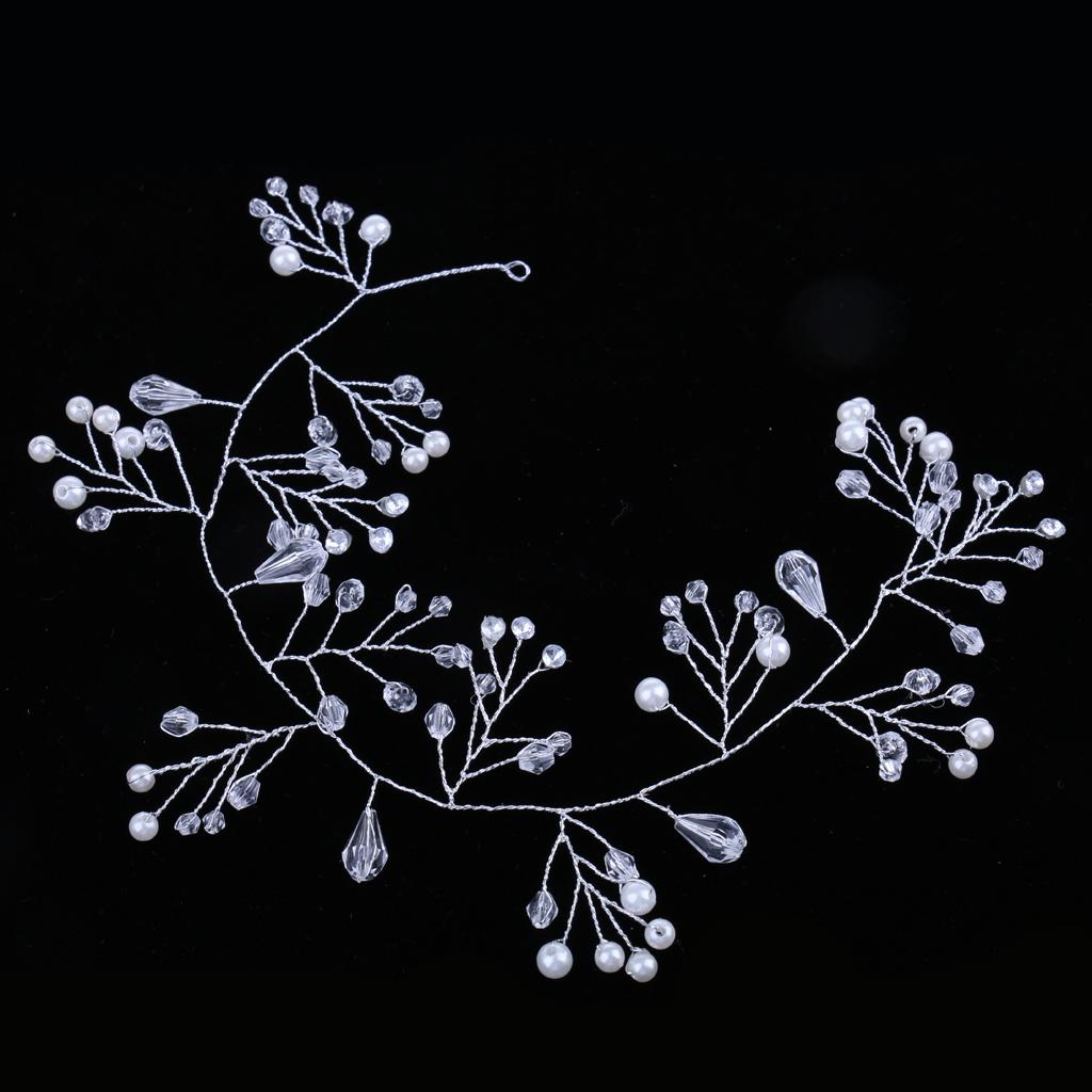 A delicate headband for women and girls, featuring vines with dangling clear beads and pearls
