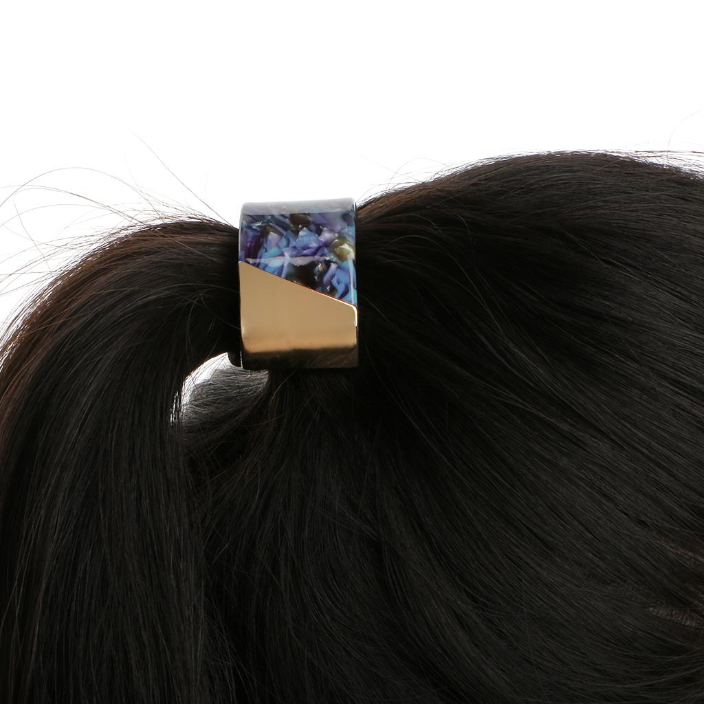 • Simple semicircle shape, spliced by acrylic and gold plated alloy, fully wraping the hair