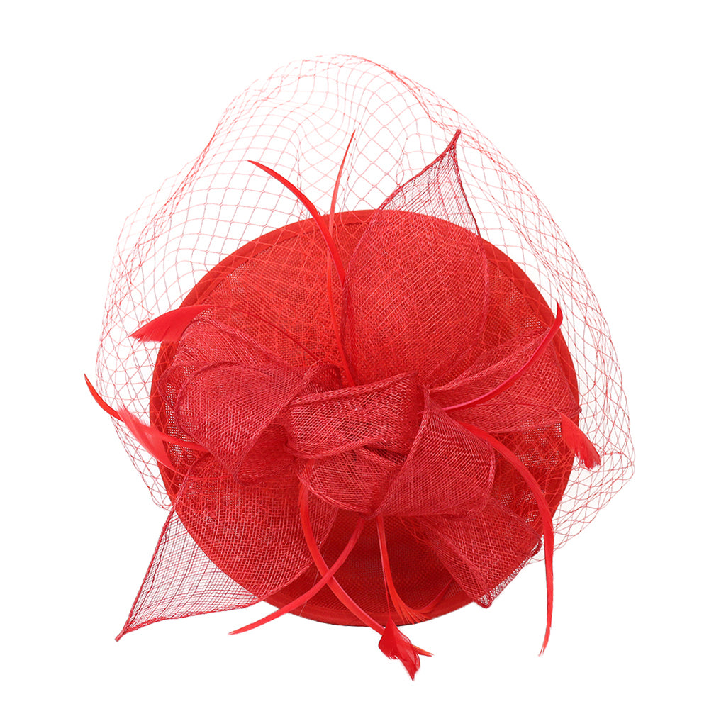 Sinamay Hat Feather Headband Fascinator Veil Wedding Royal Ascot Red