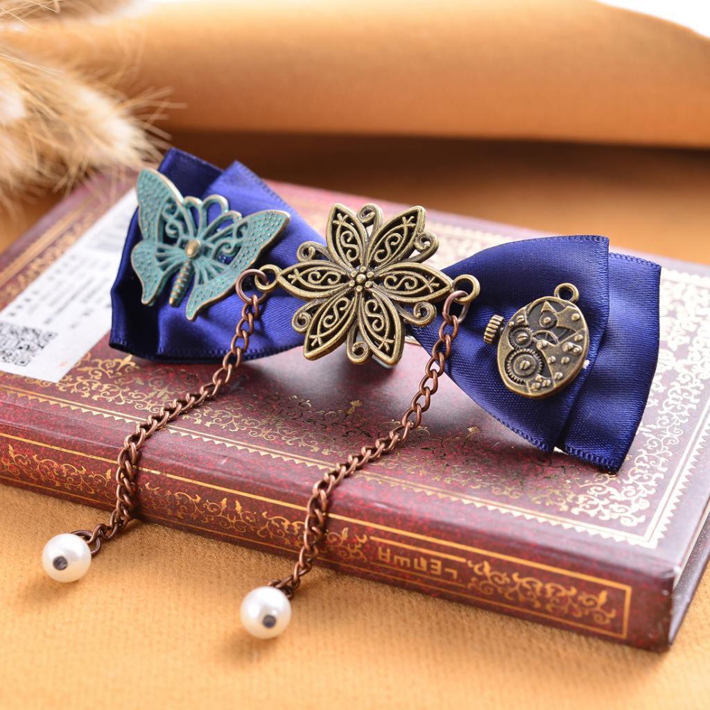 Simple fashion Bow shape Acetate hair clips French Barrettes with long tassel chain drop
