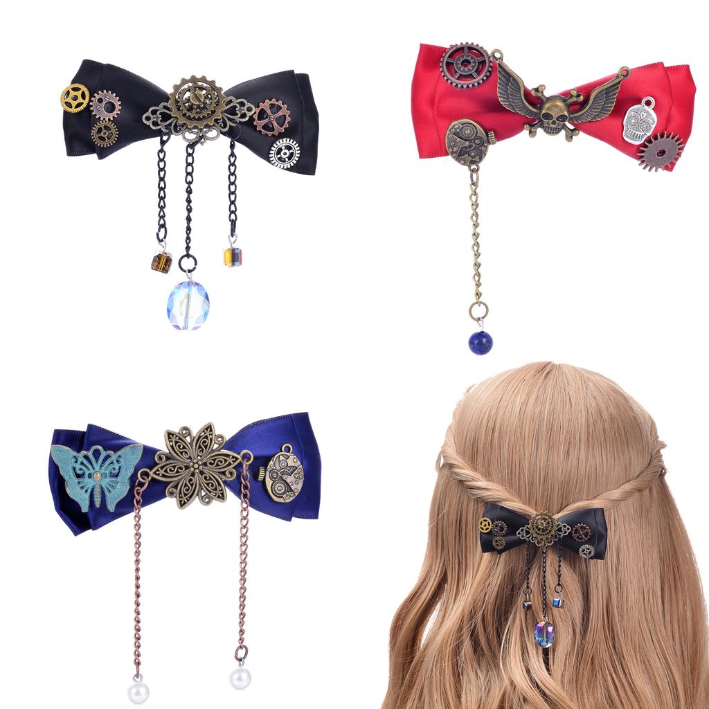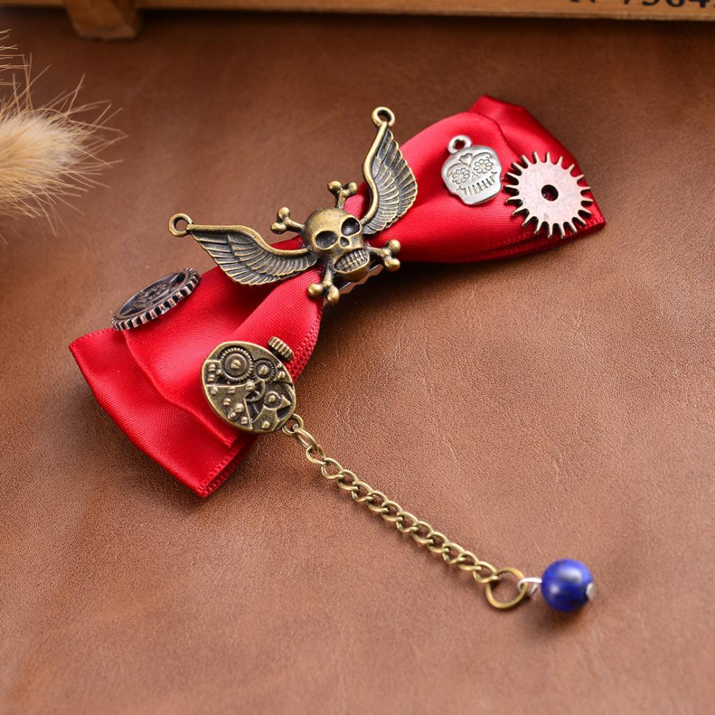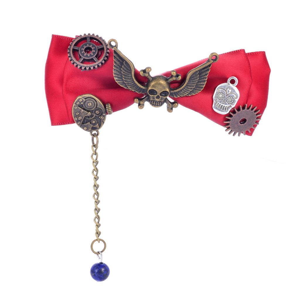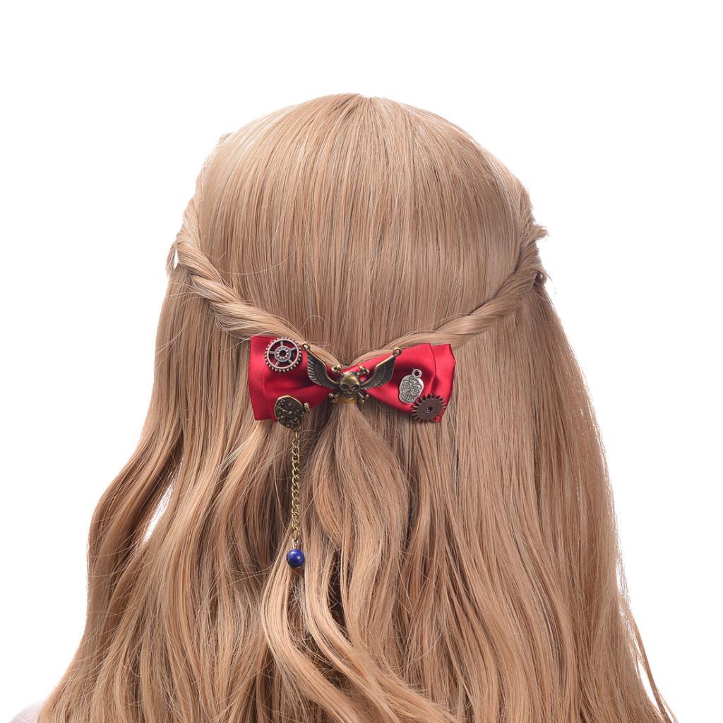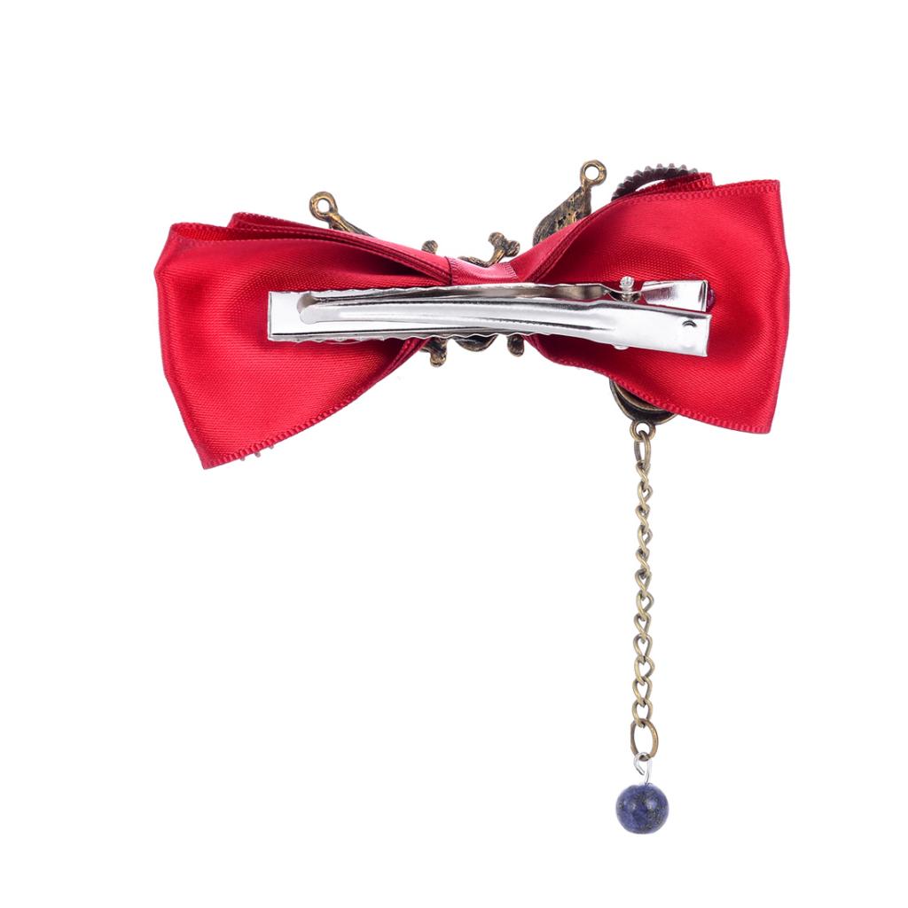 Steampunk Gear Hair Clip Bow Hairpin Acetate Barrettes Cosplay Prop Red