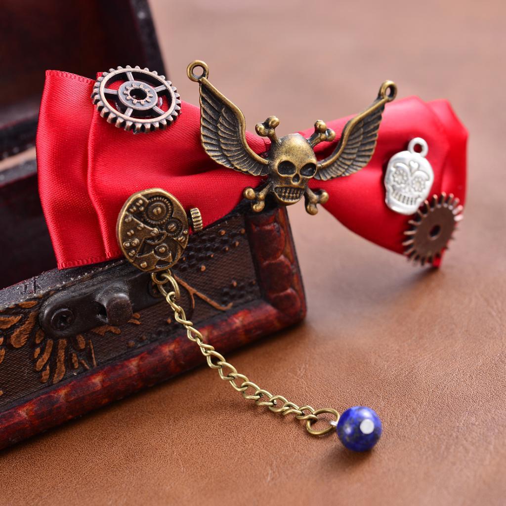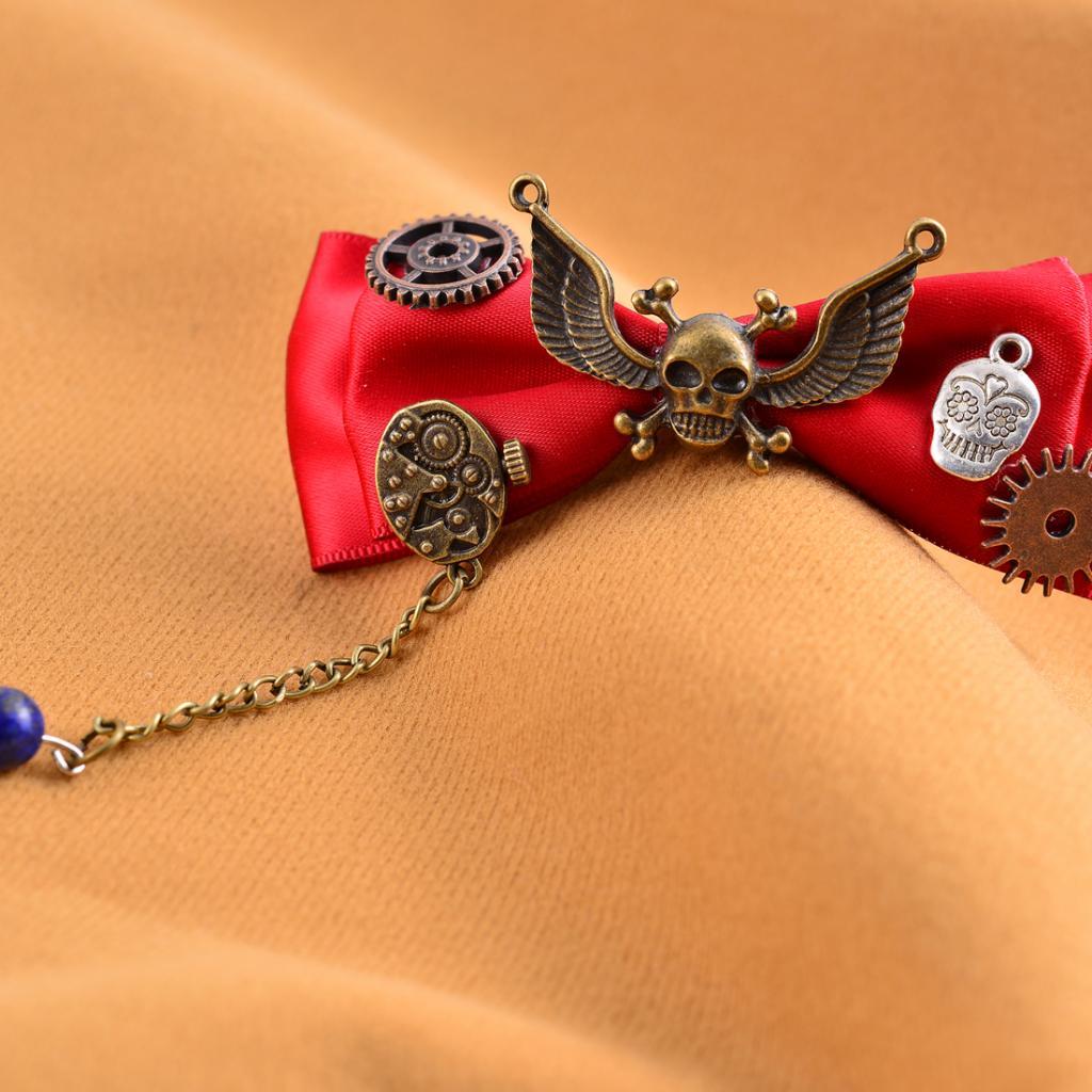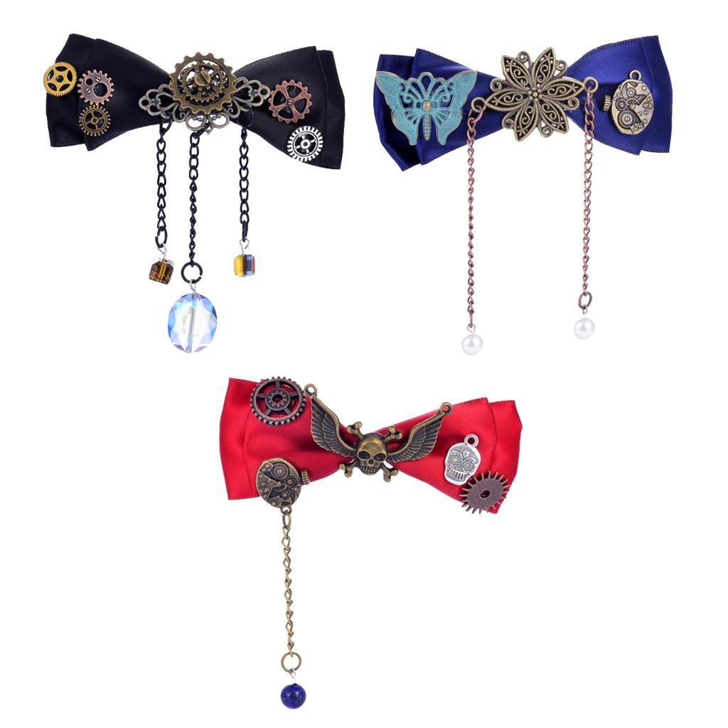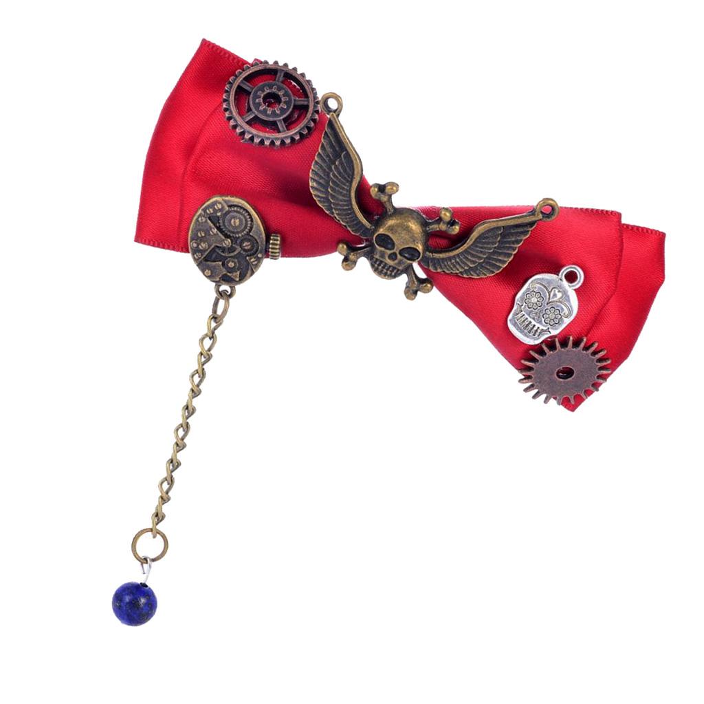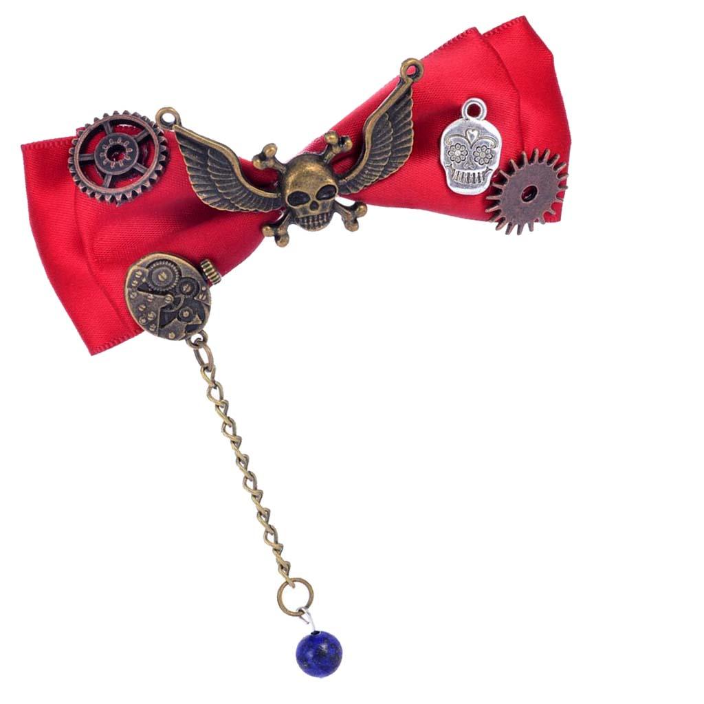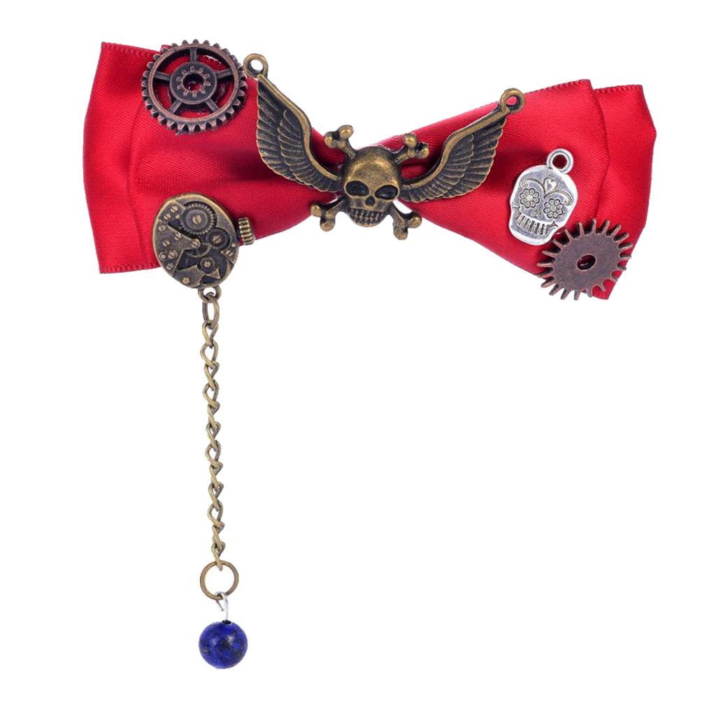 Steampunk Gear Hair Clip Bow Hairpin Acetate Barrettes Cosplay Prop Red