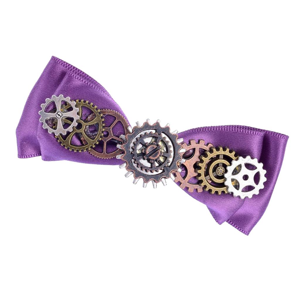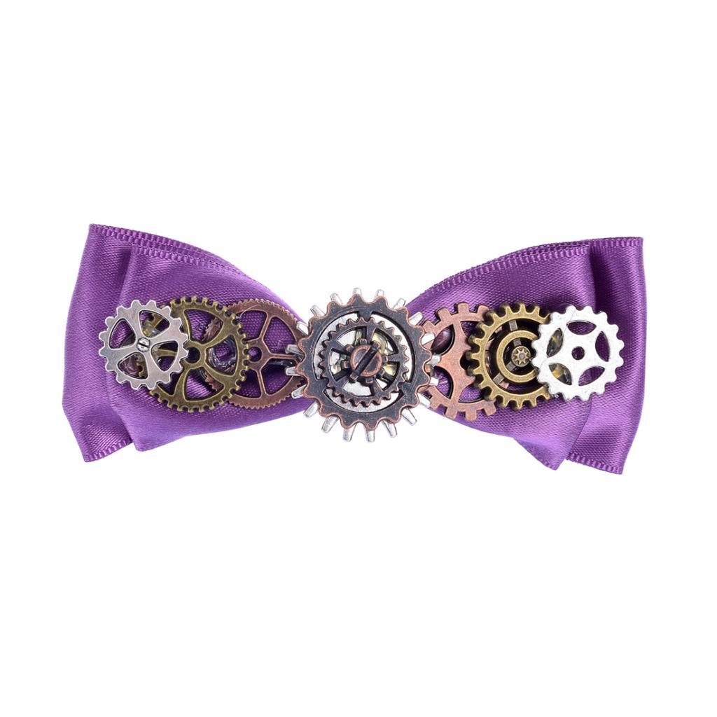 Violet ribbon bowknot with steampunk gear hair clip, great accessory for any adult's or child steampunk costume.