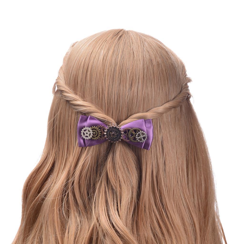 Steampunk Gear Violet Ribbon Cute Bowknot Hair Barrettes Duckbill Clip Girls