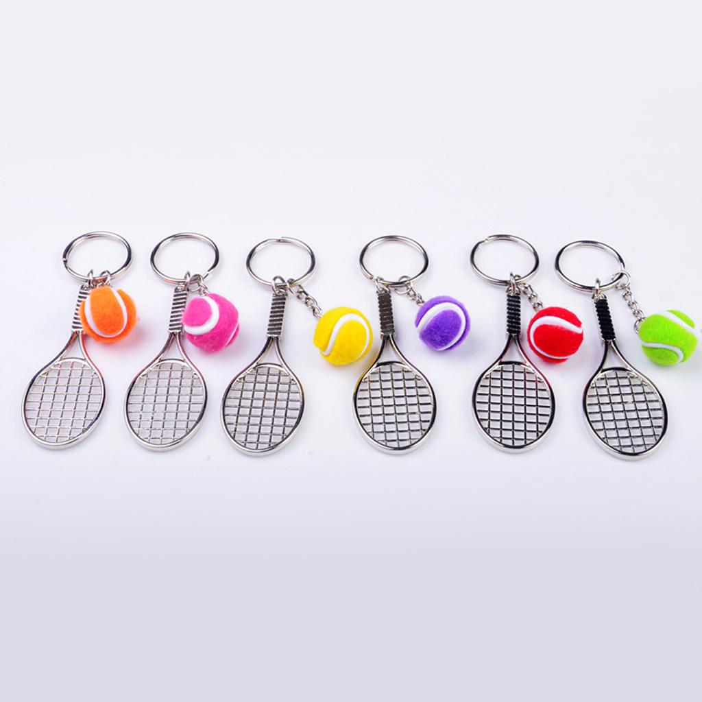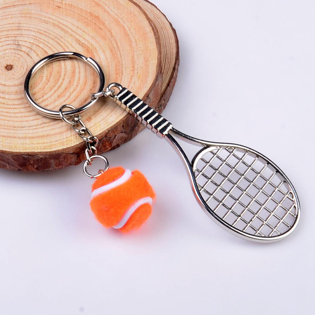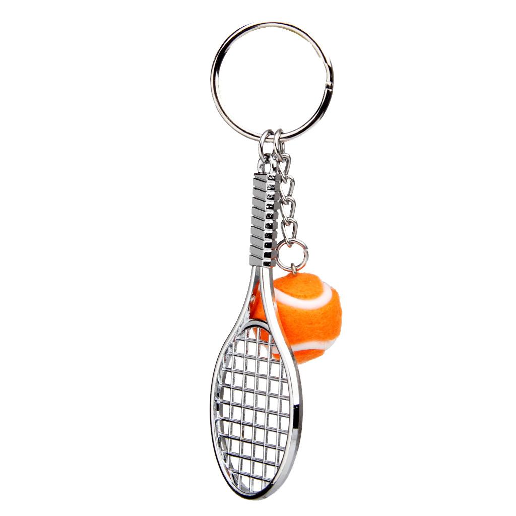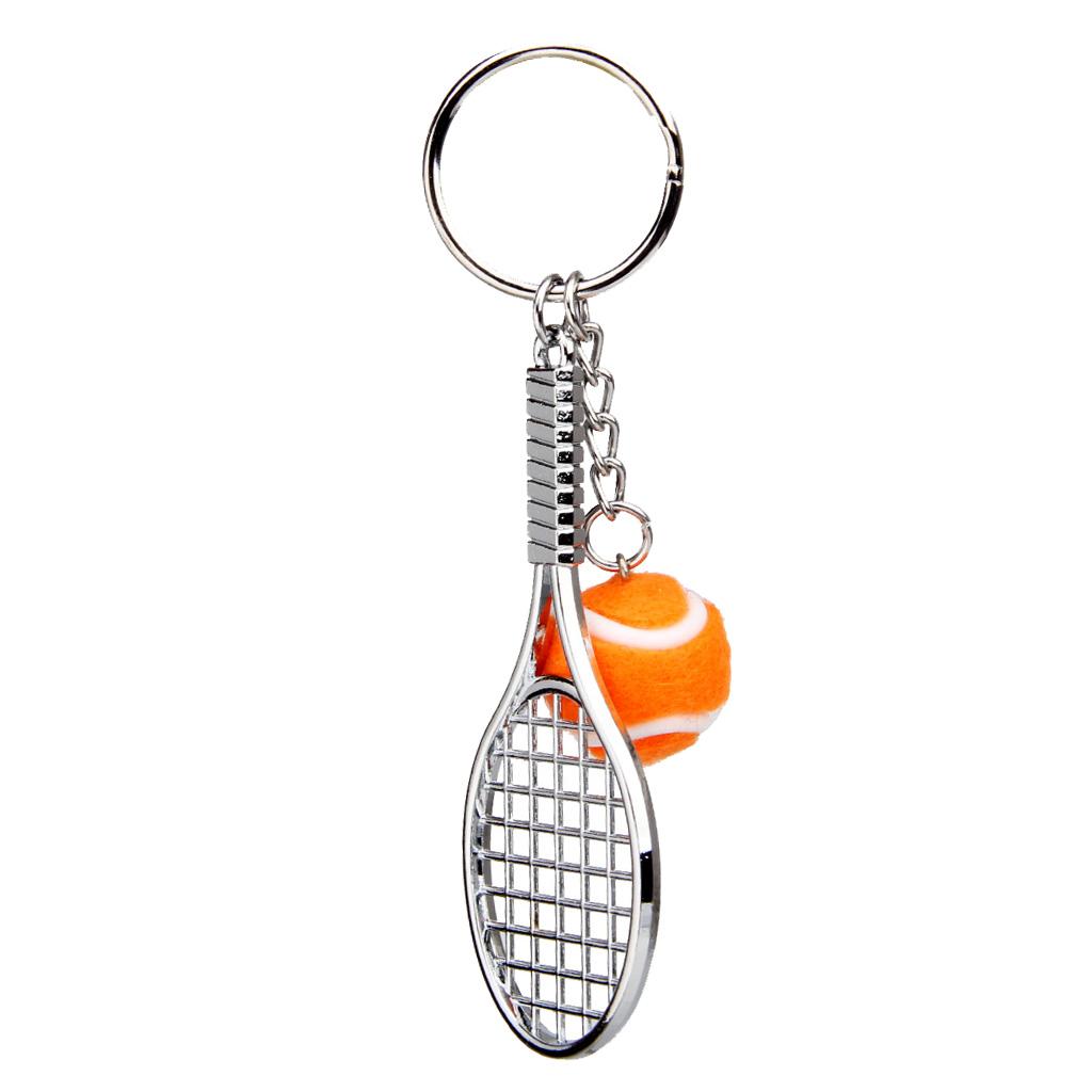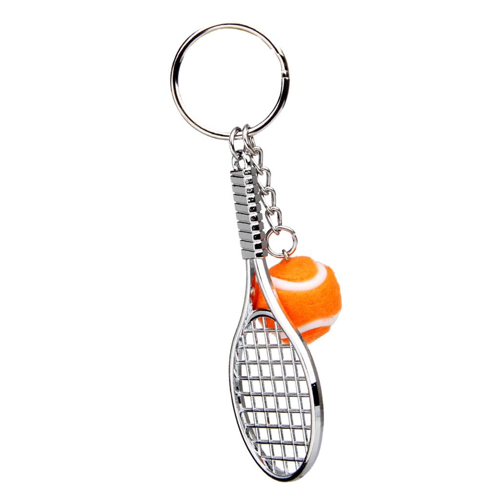Tennis Ball Racket Pendant Keyring Key Chain Gift - Orange