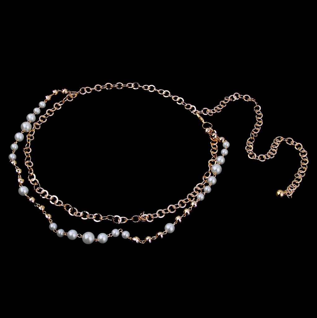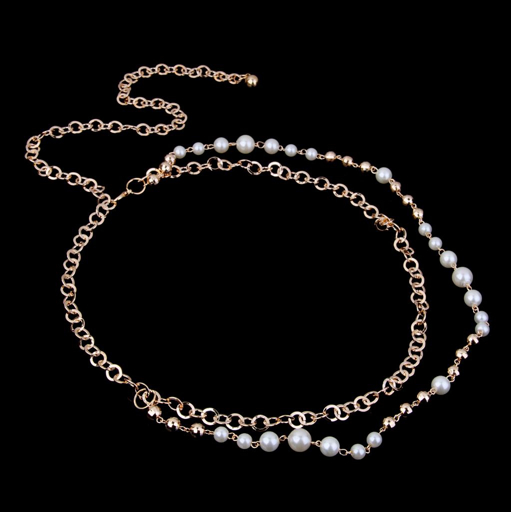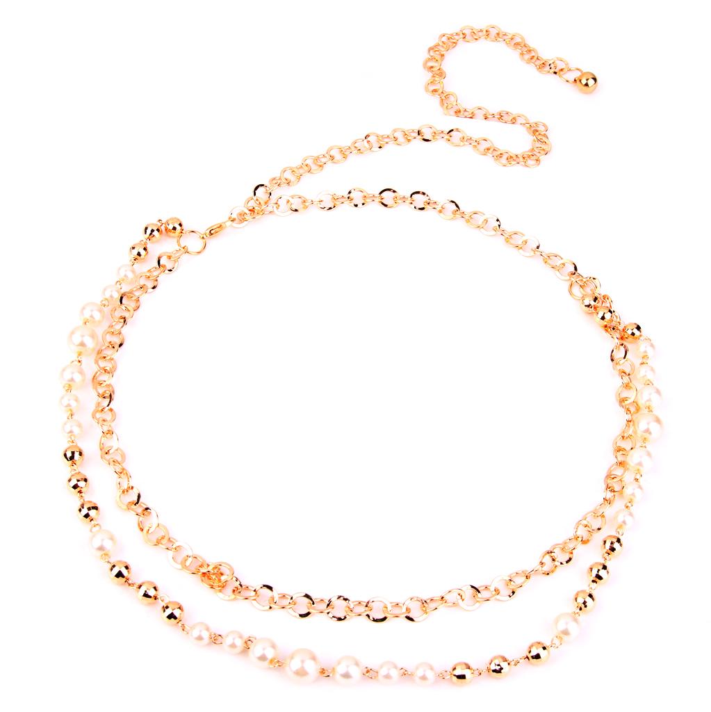 Two-Rows Pearls Beaded Belt Body Belly Waist Chain Bikini Beach Golden
