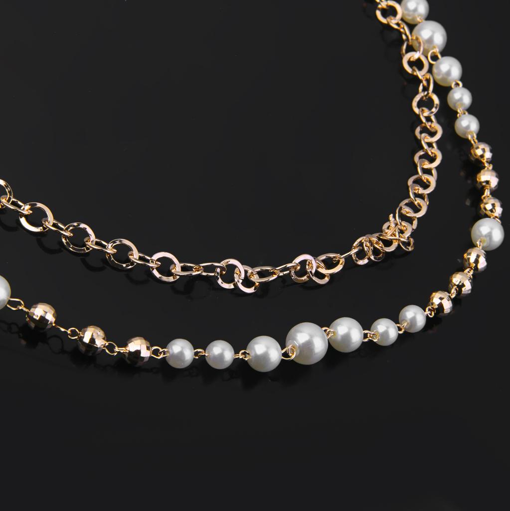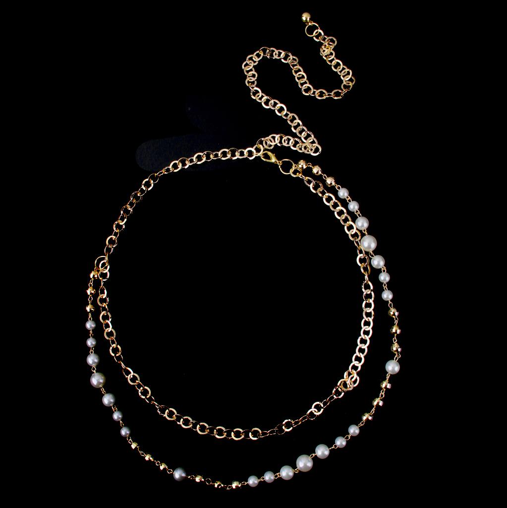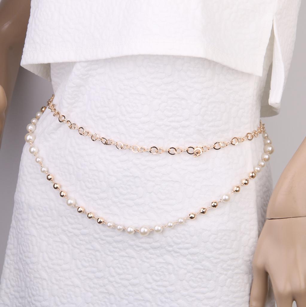 Two-Rows Pearls Beaded Belt Body Belly Waist Chain Bikini Beach Golden