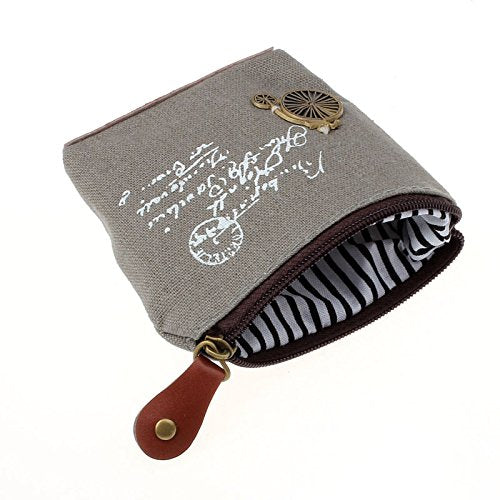 Unisex Canvas Zip Coin Purse Mini Money Wallet Pouch Purse Grey