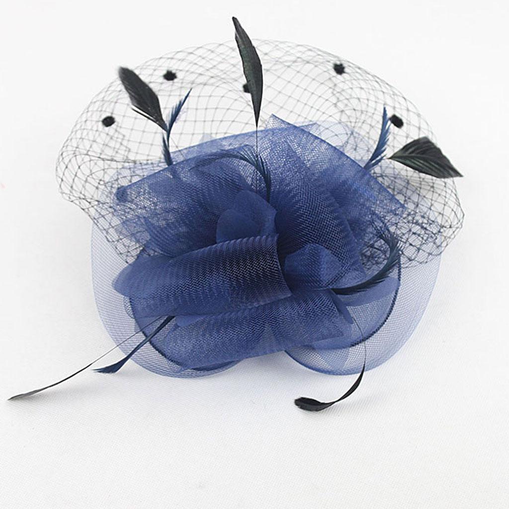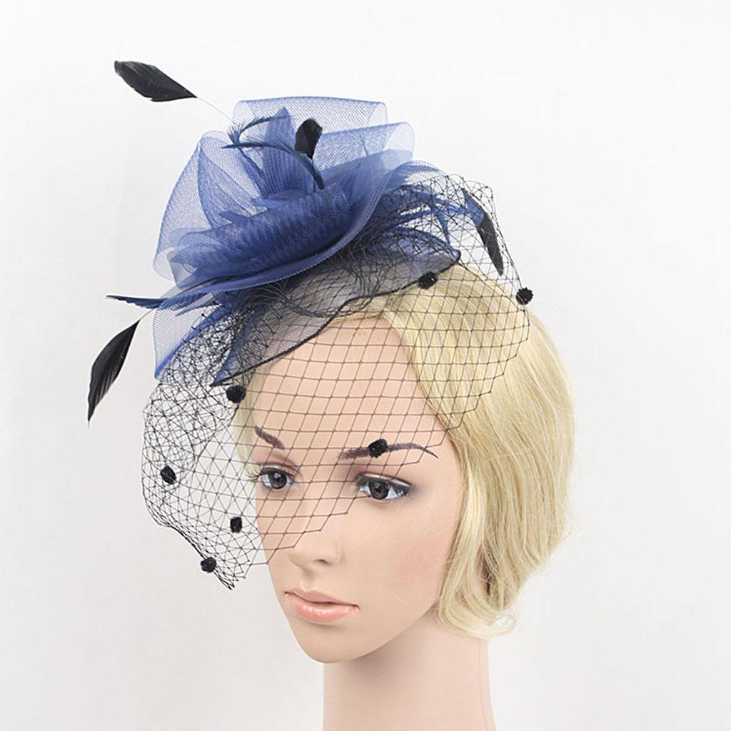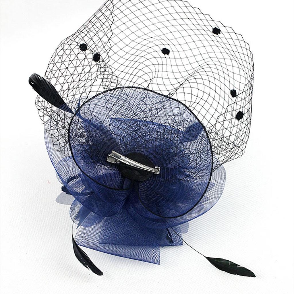 Wedding Bridal Ladies Prom Mesh Veil Feather Fascinator Hair Clip Dark Blue