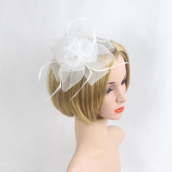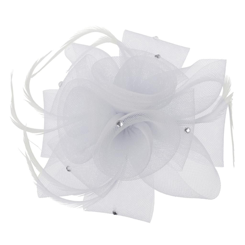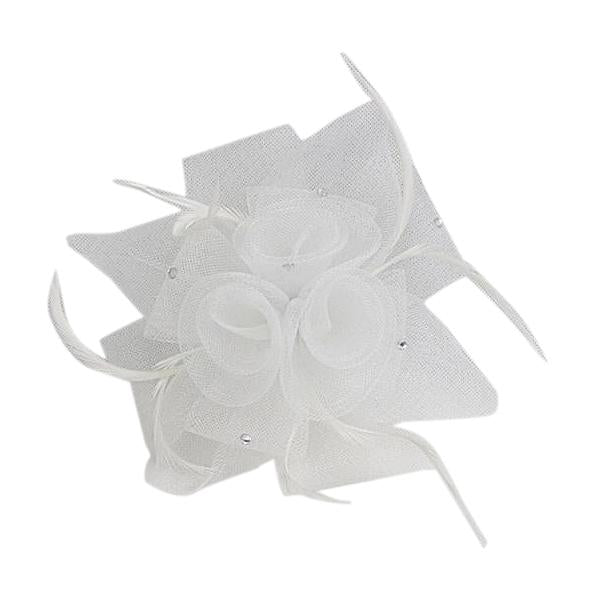 Wedding Bridal Ladies Prom Rose Feather Fascinator Hair Clip white