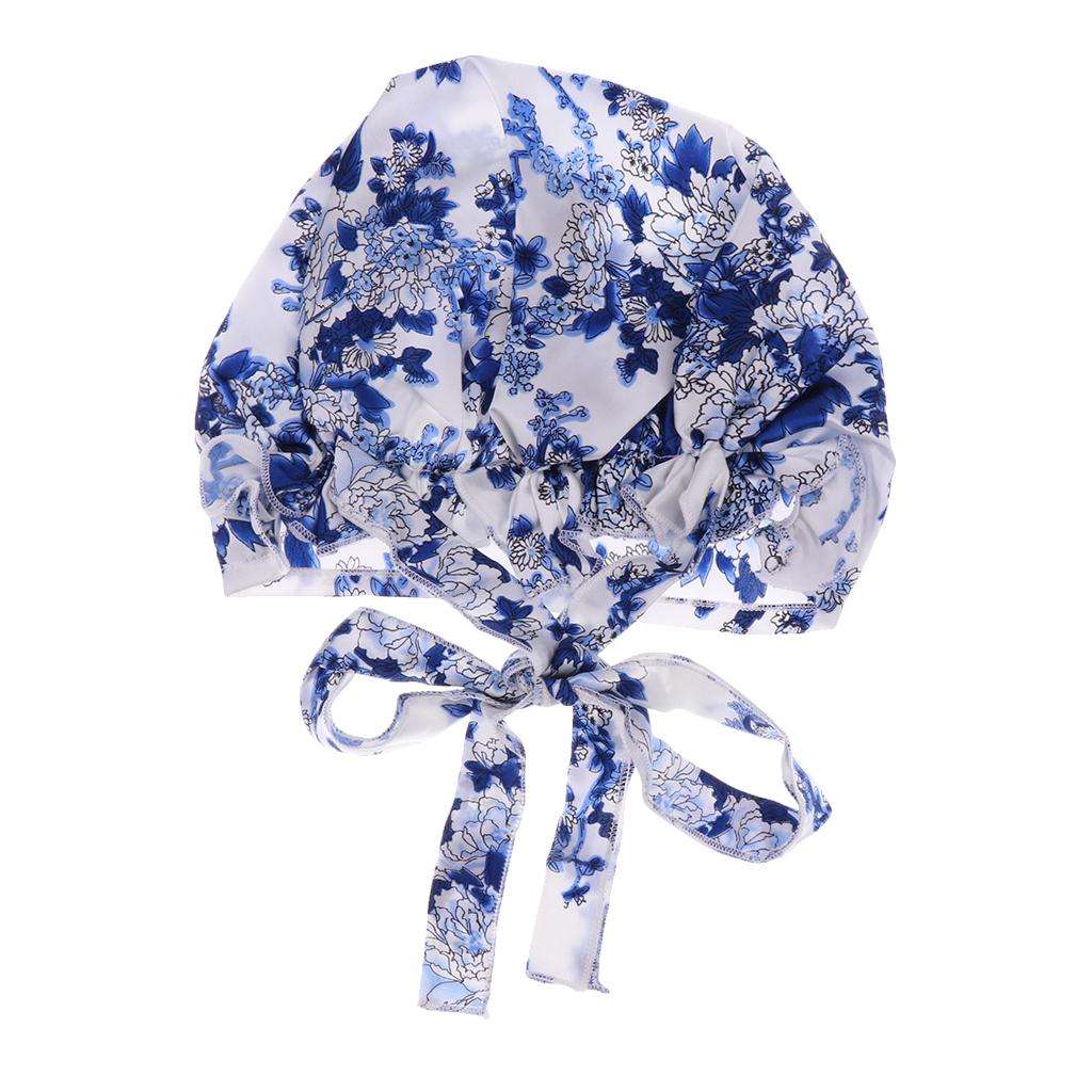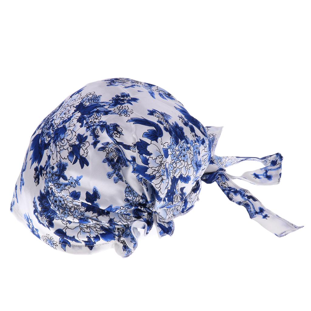 Women Bow Headscarf Sleeping Bonnet Hair Wrap Silk Cap Headwear Blue
