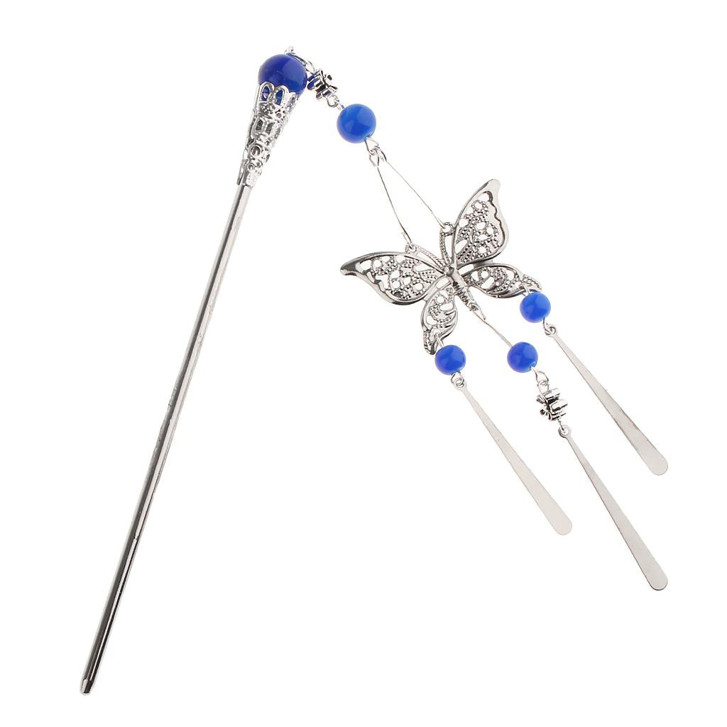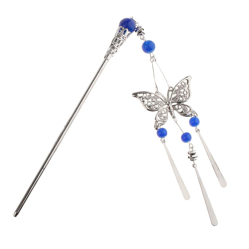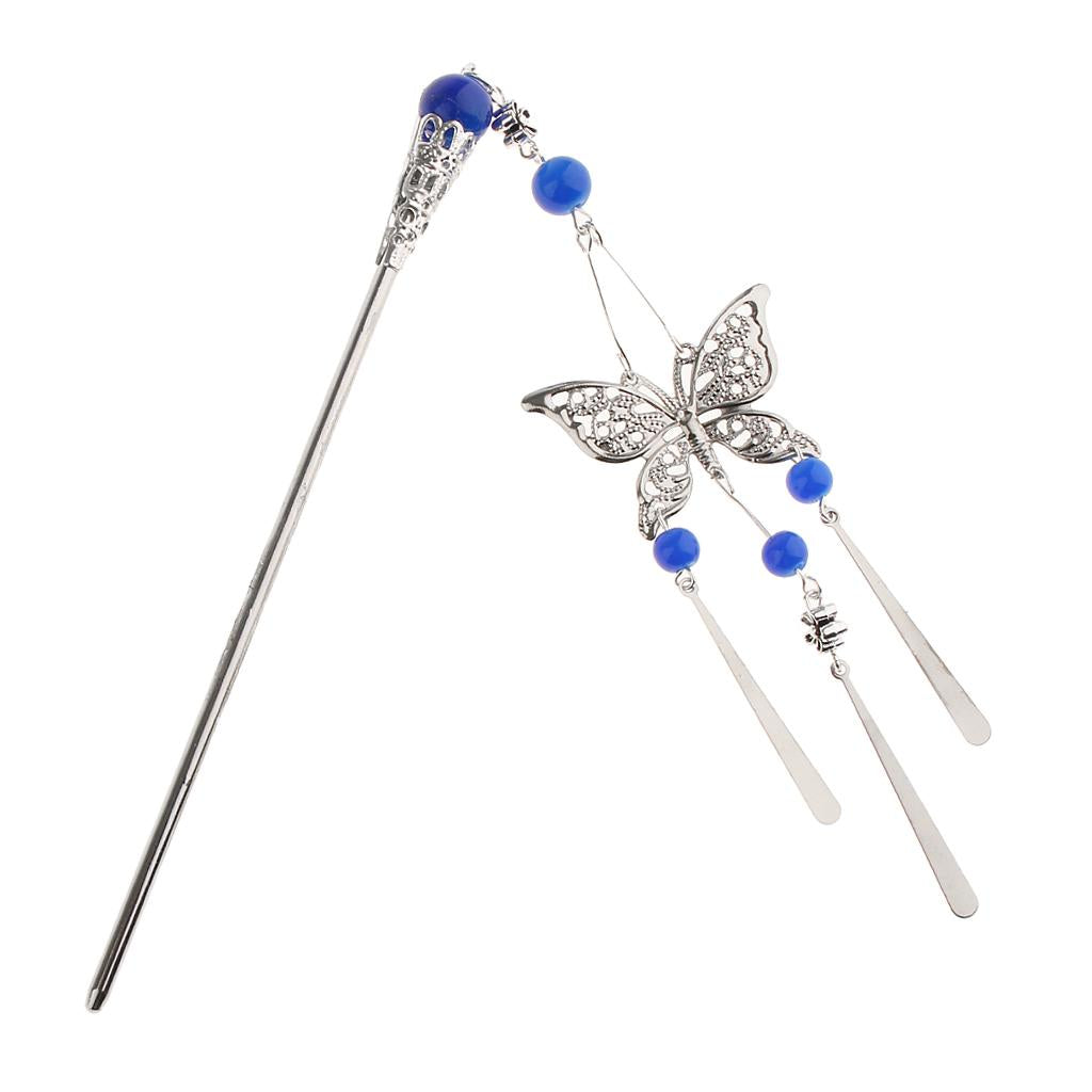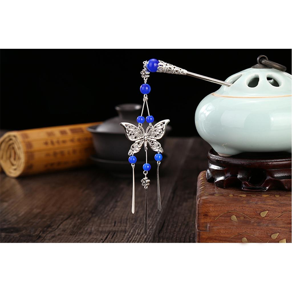Women Butterfly Hair Stick with Beads Tassels Hair Accessories Blue