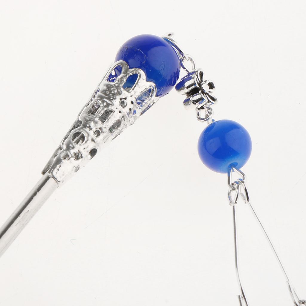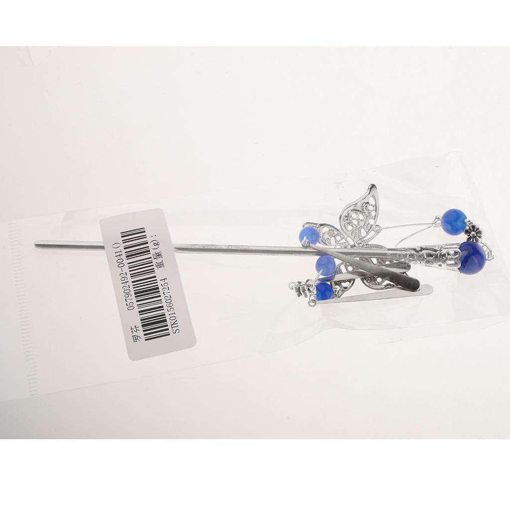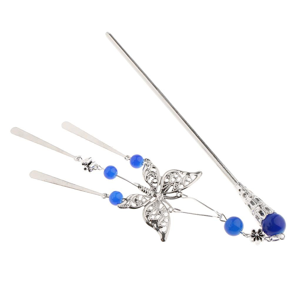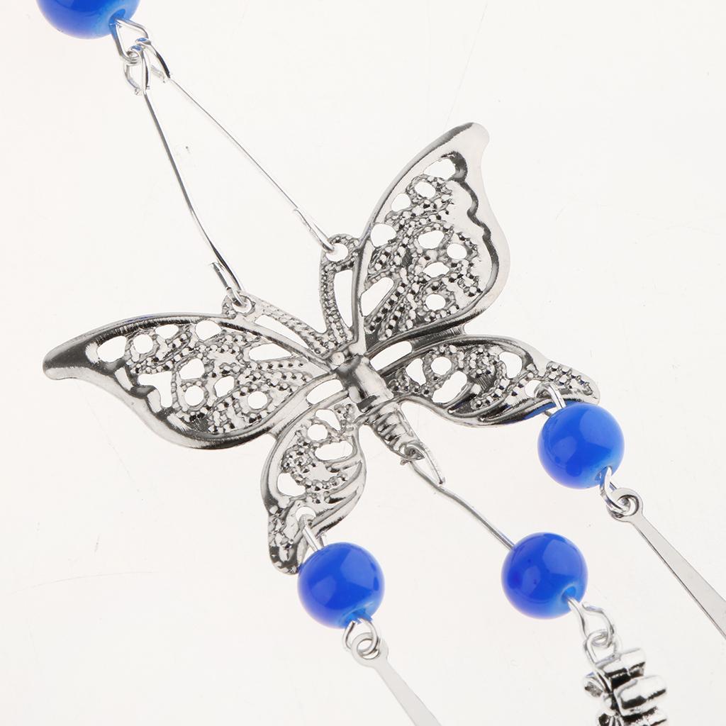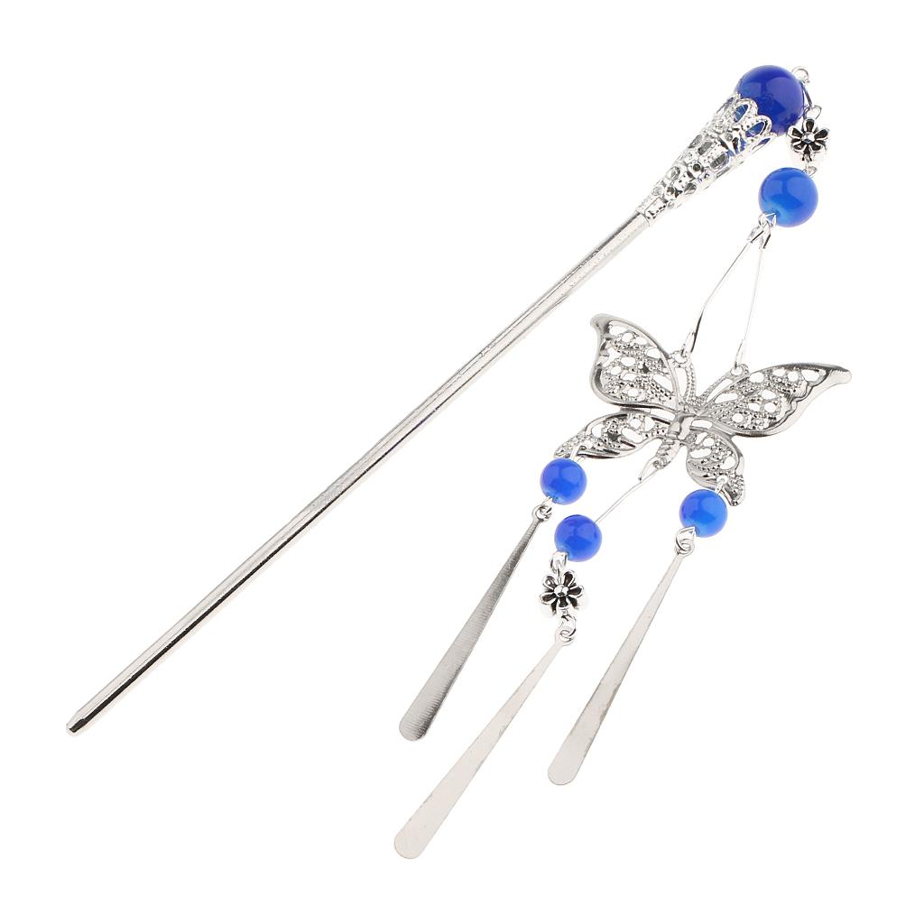 Women Butterfly Hair Stick with Beads Tassels Hair Accessories Blue