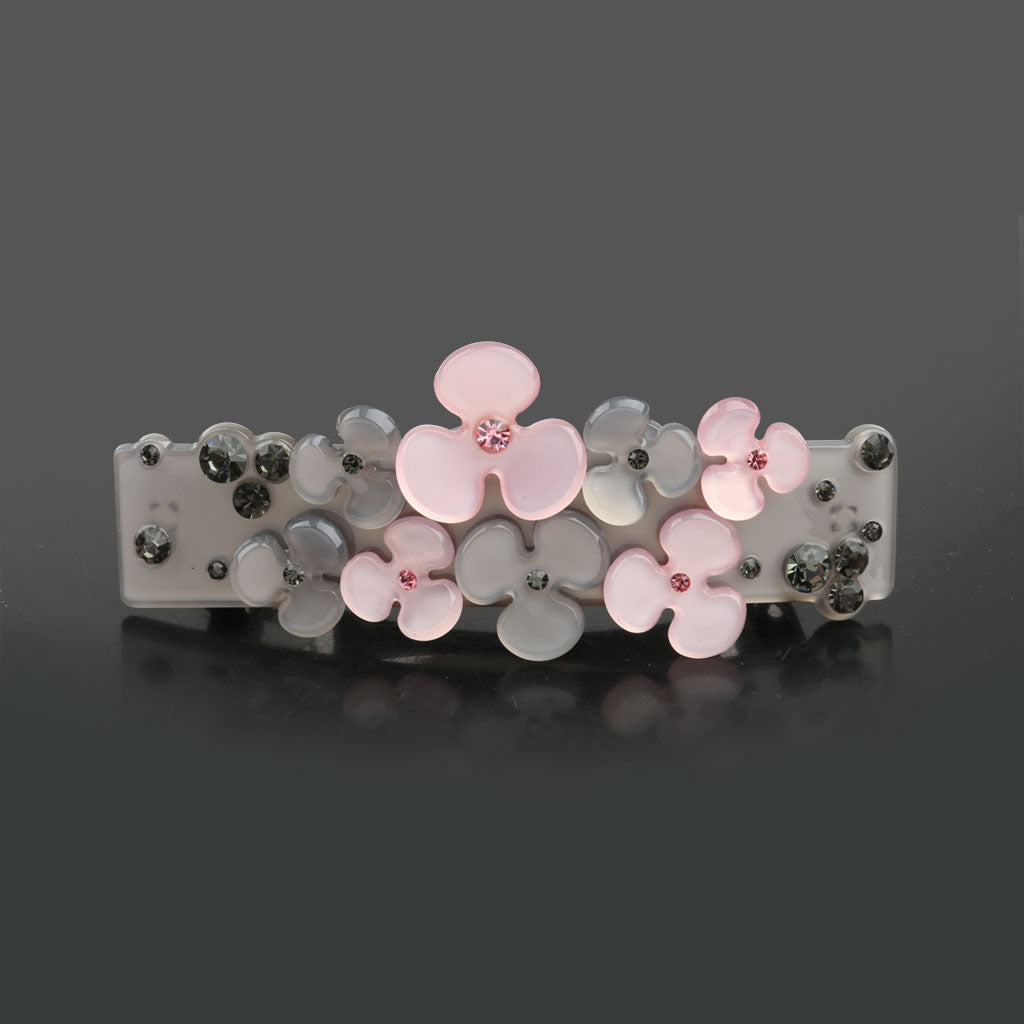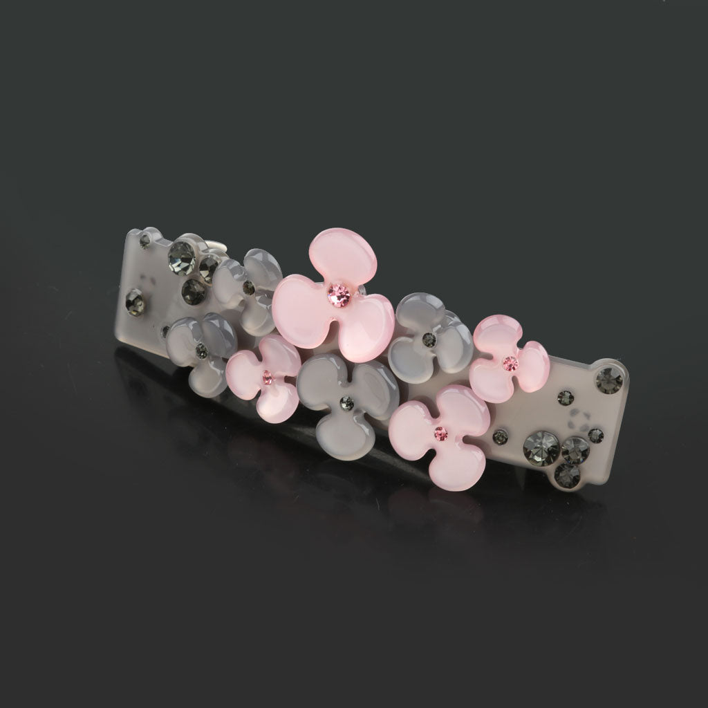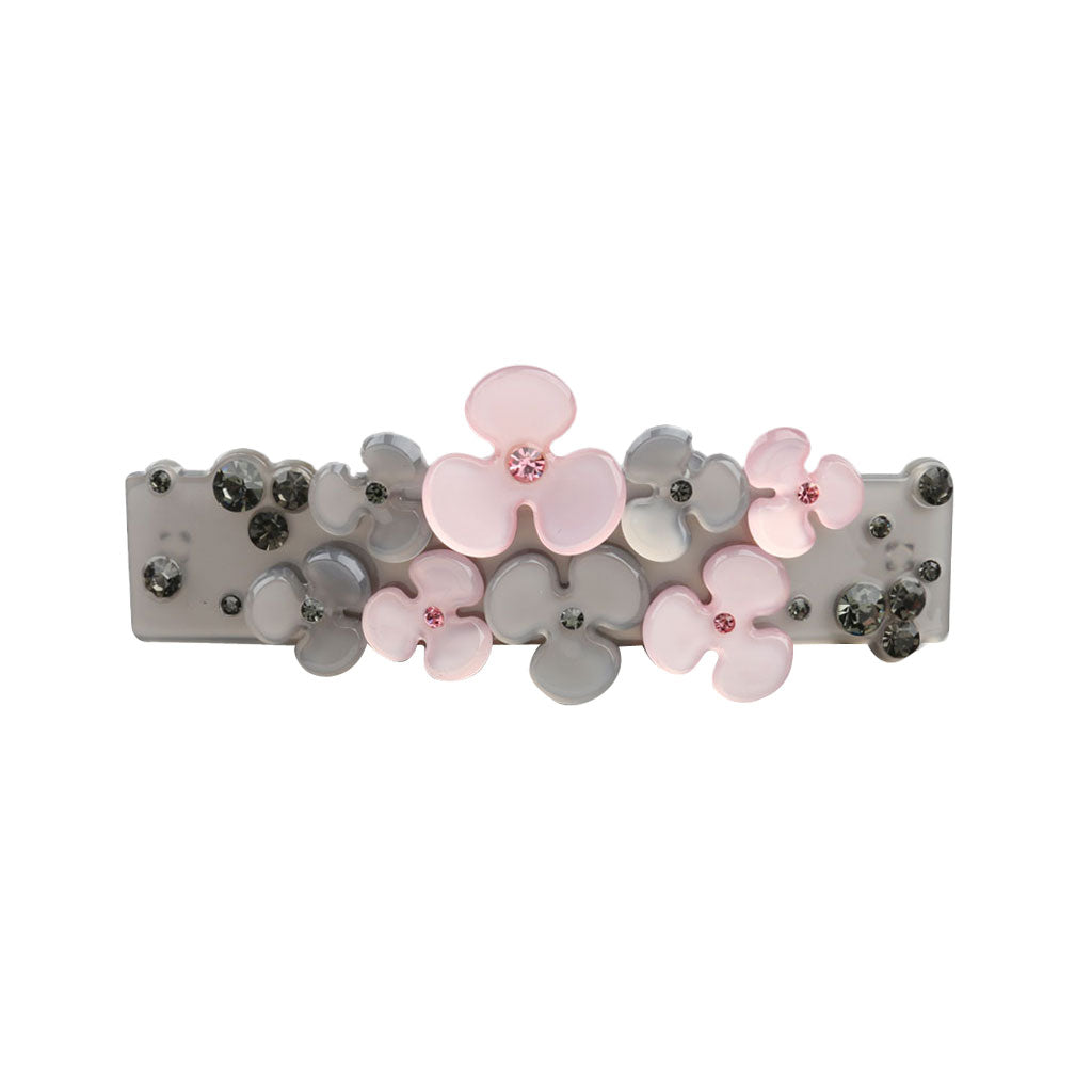 Women Fashion Crystal Rhinestone Flower Hair Barrette Clip Hairpin Grey