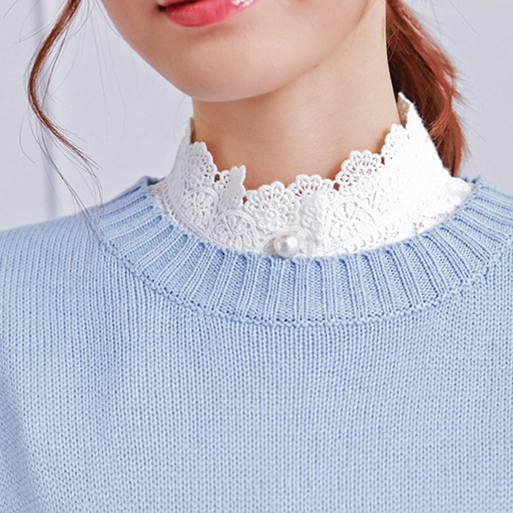 Ladies women girls elegant pure cotton white lace floral false doll collar bib