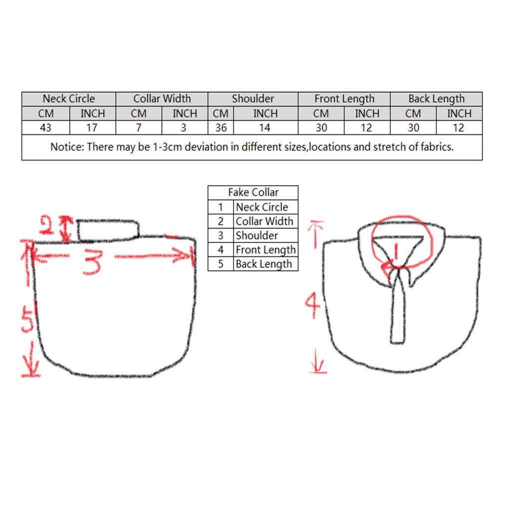 Neck Circle:43cm/17inch; Collar Width:7cm/3inch; Shoulder:36cm/14inch; Front Length:30cm/12inch; Back Length:30cm/12inch.