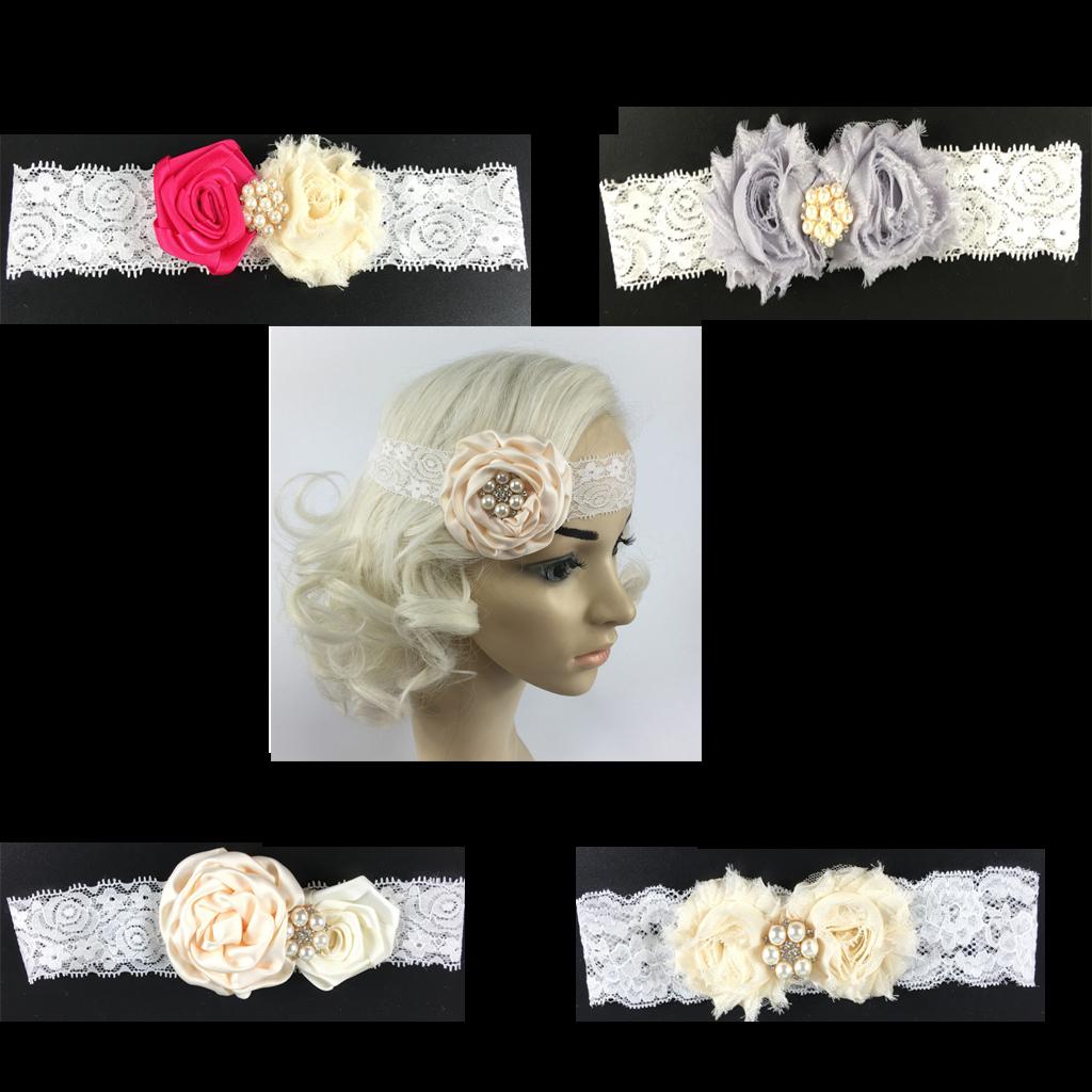 Women Flower Lace Pearls Headband Hair Band Party Hair jewelry