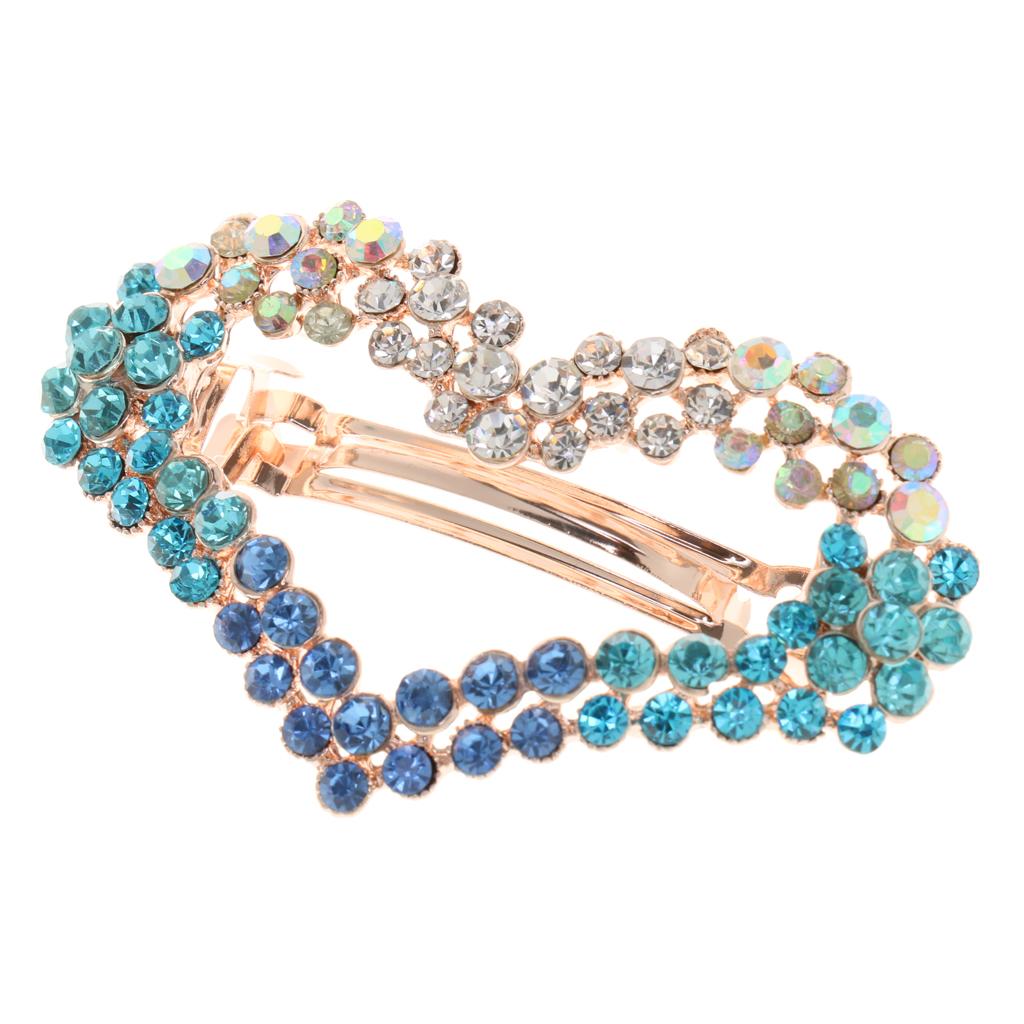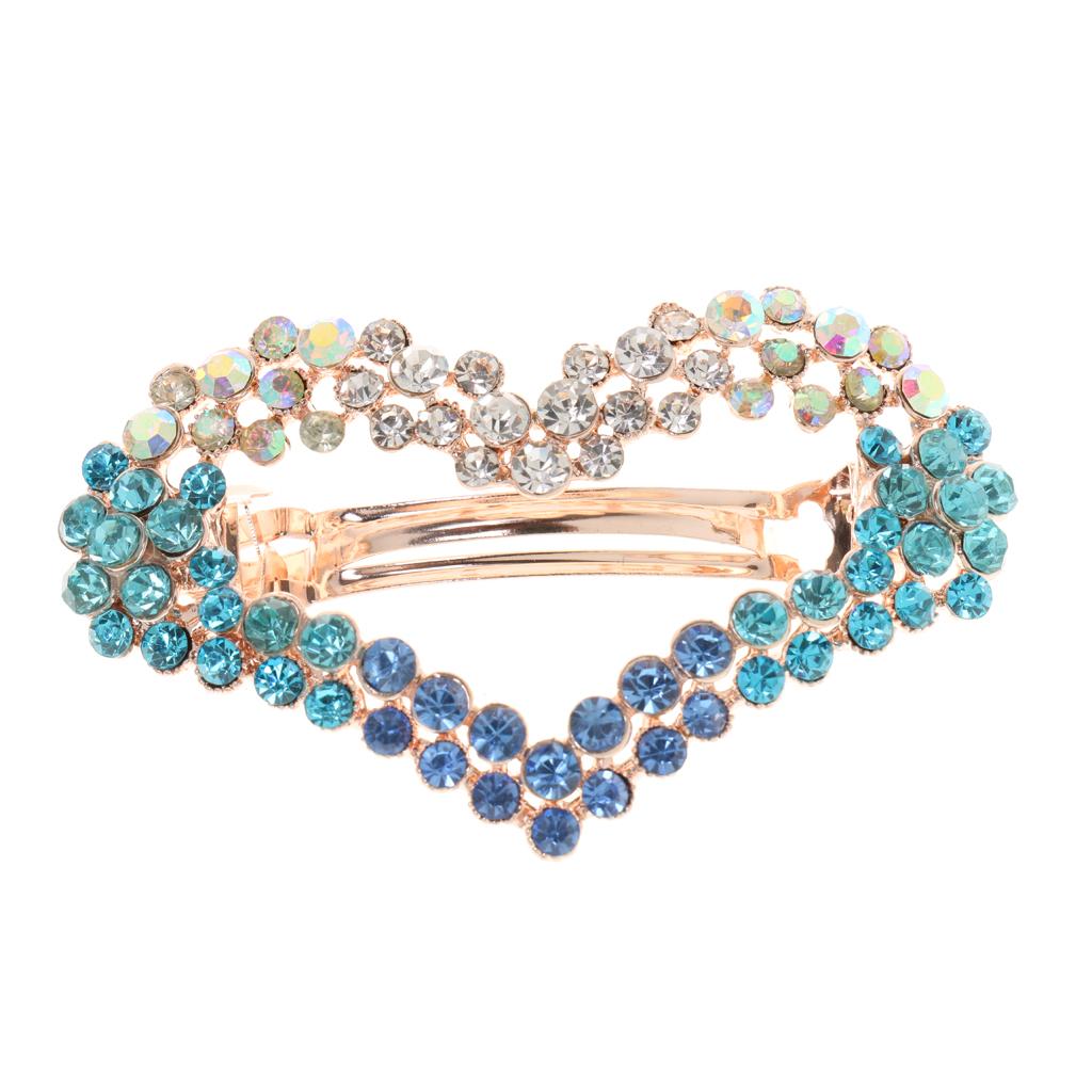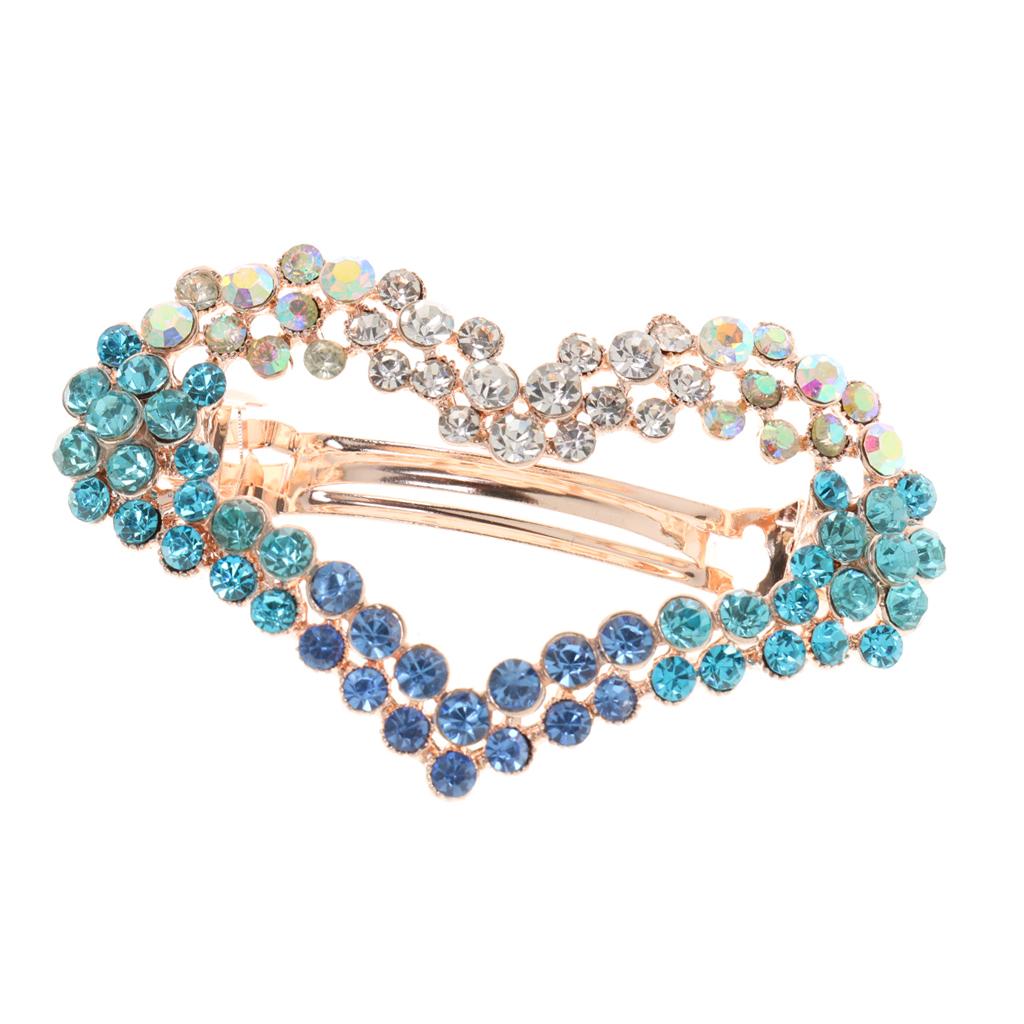 Women Girl Rhinestone Heart Hair Clip Hairpin Barrette Hair Accessory Blue