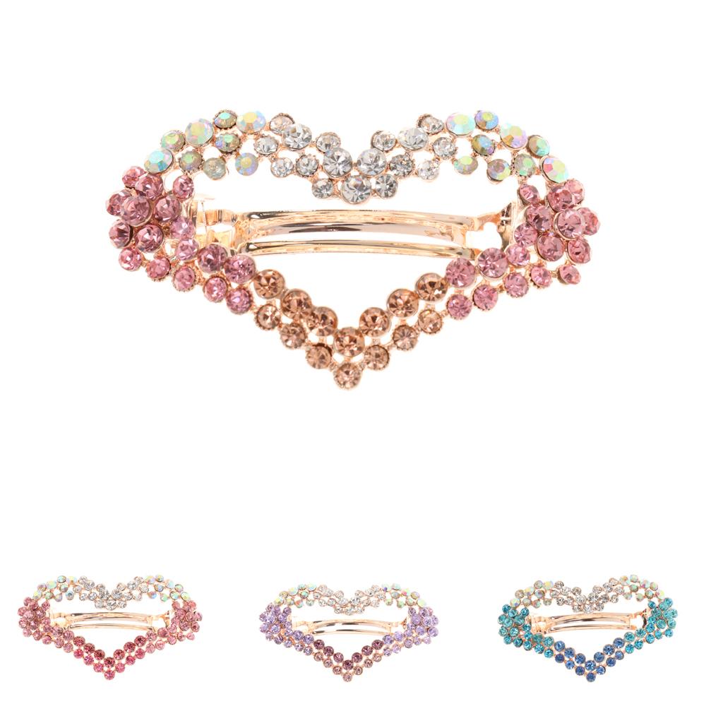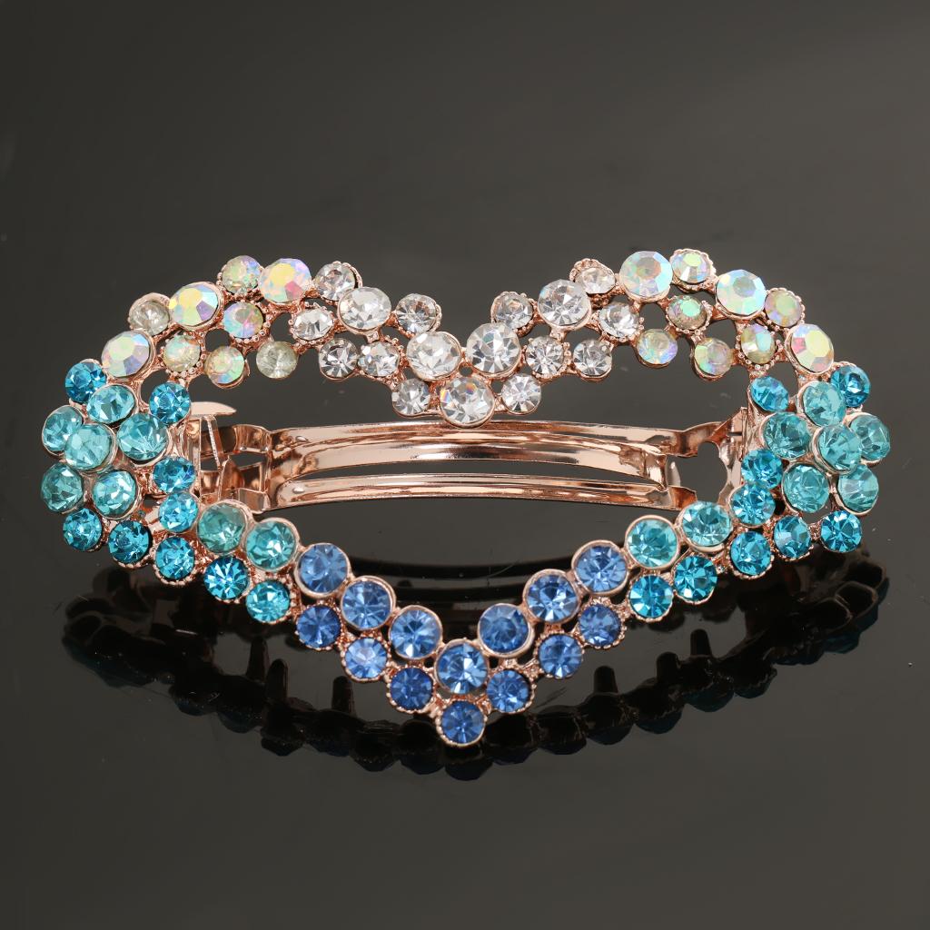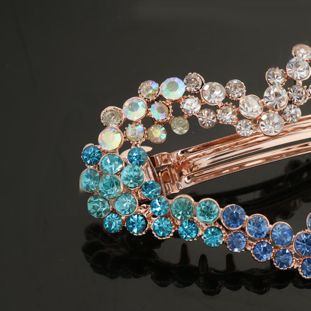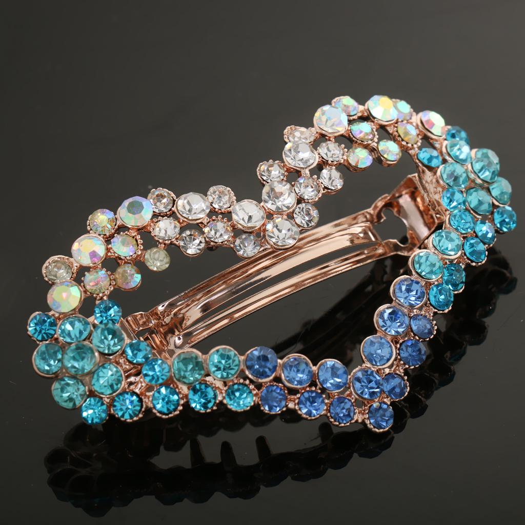 Women Girl Rhinestone Heart Hair Clip Hairpin Barrette Hair Accessory Blue