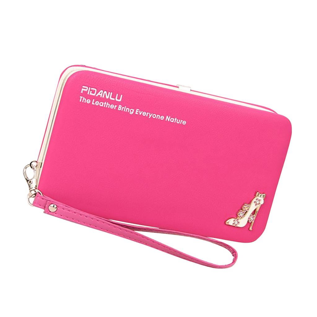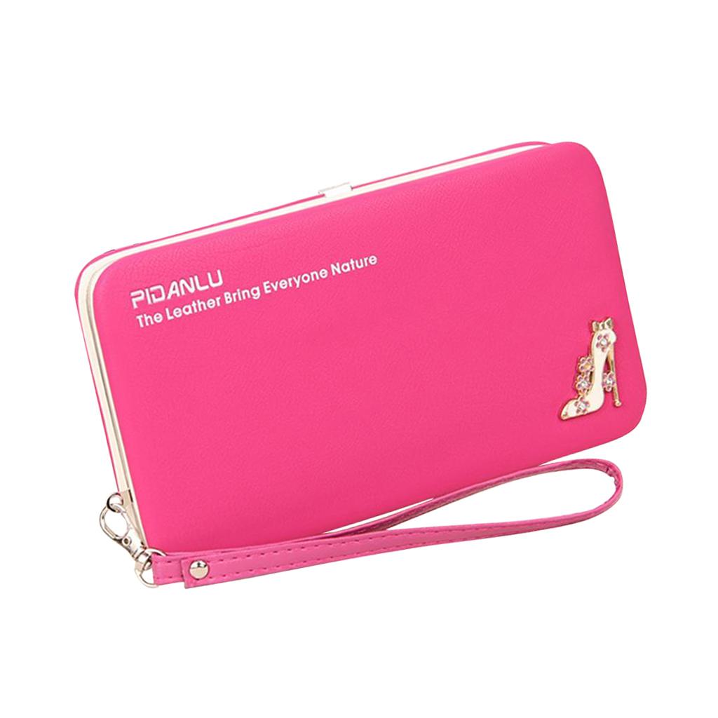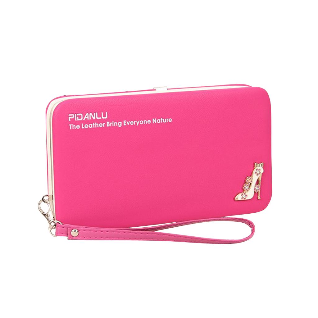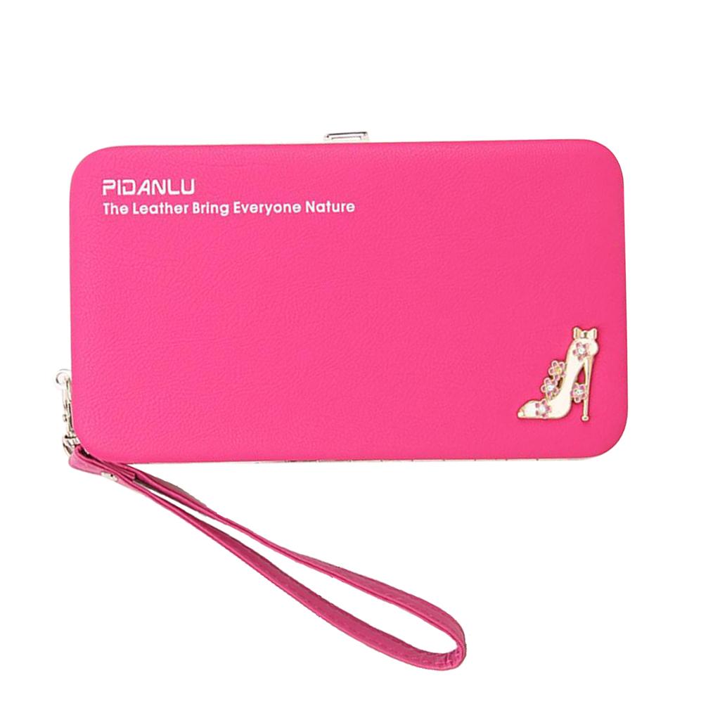 Women Girls Ladies Fashionable PU Leather High Heel Patterns Wallet Coin Penny Purse Cellphone Pouch Rose Red