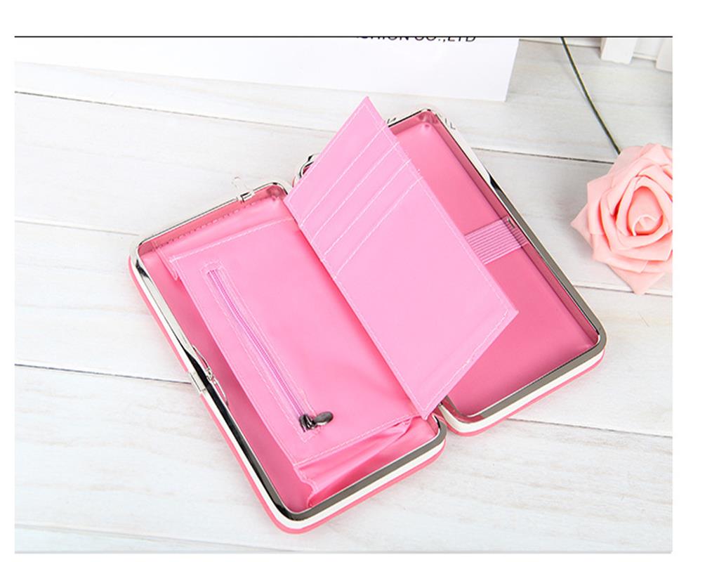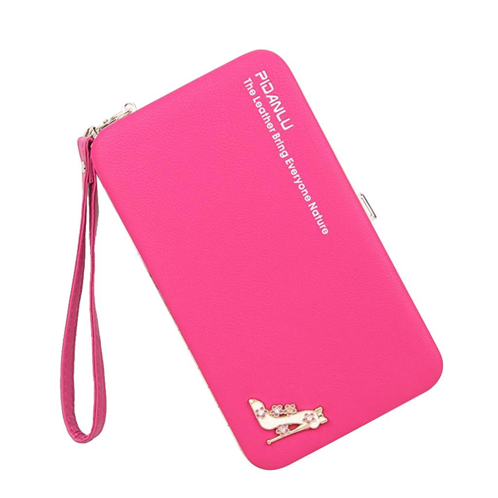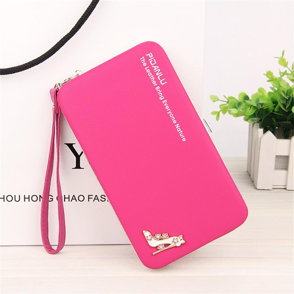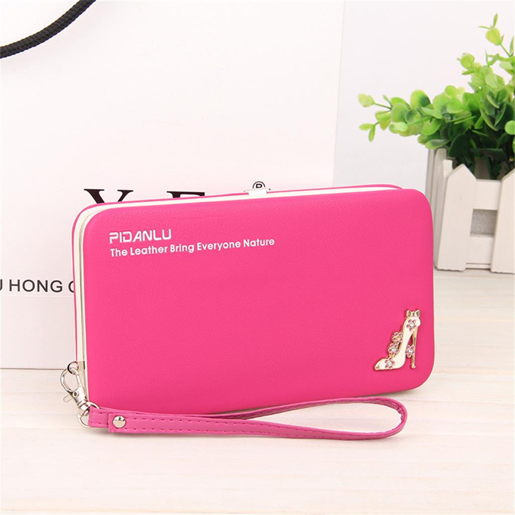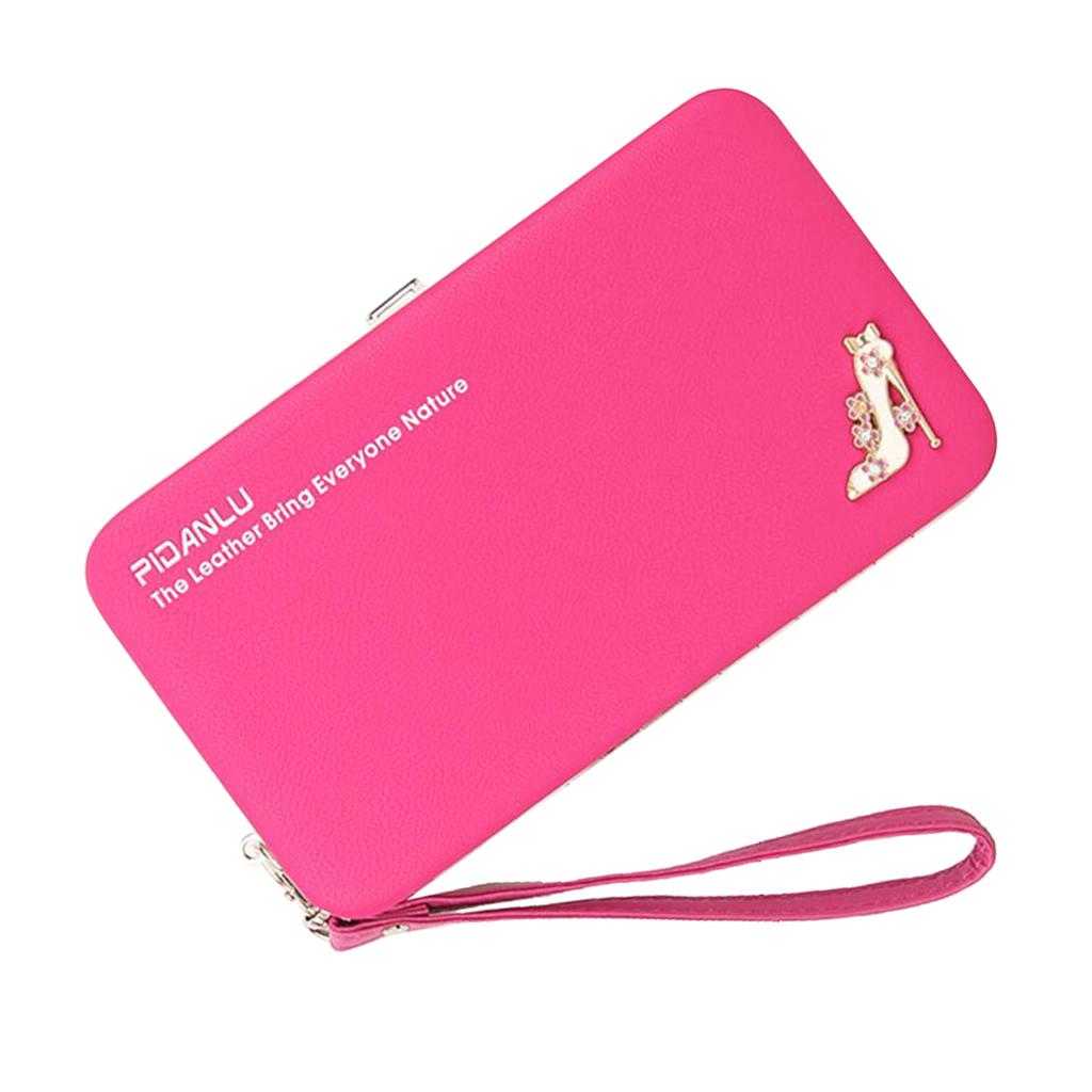 Women Girls Ladies Fashionable PU Leather High Heel Patterns Wallet Coin Penny Purse Cellphone Pouch Rose Red