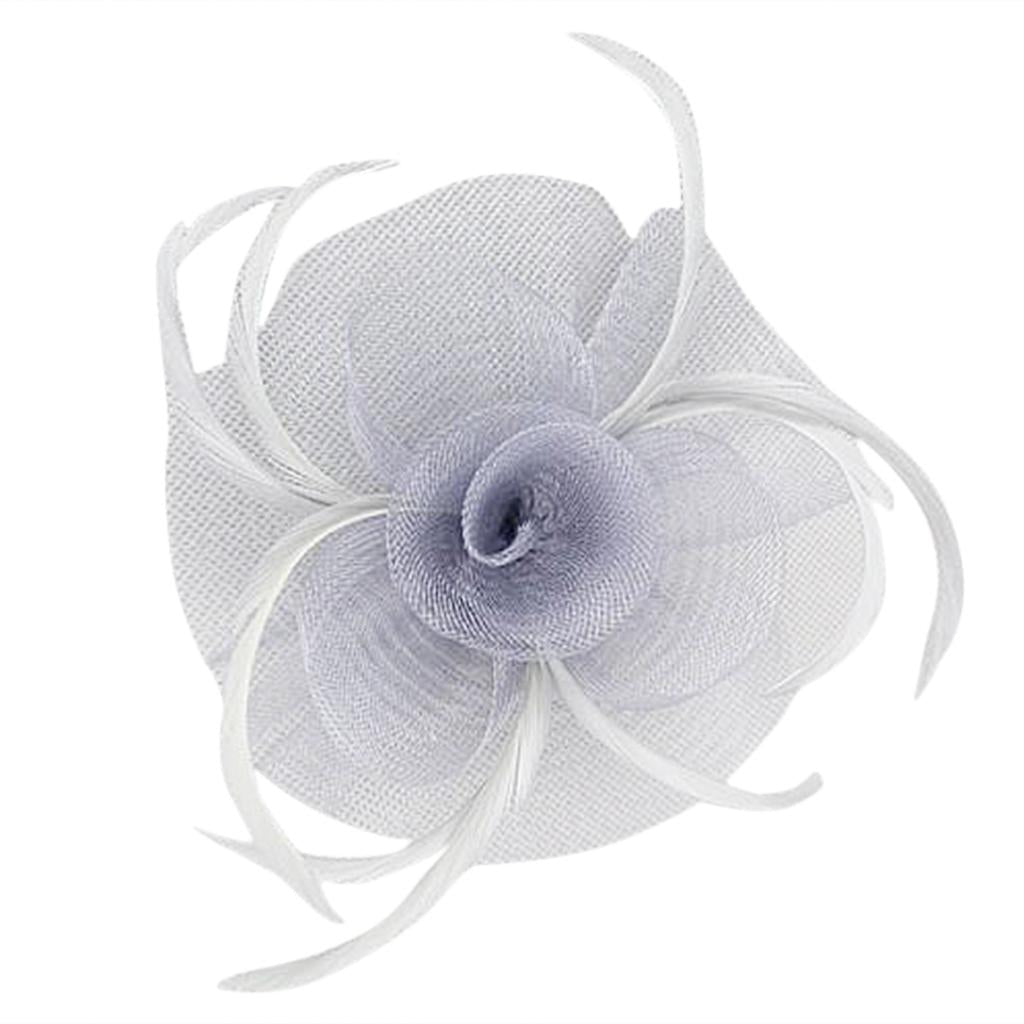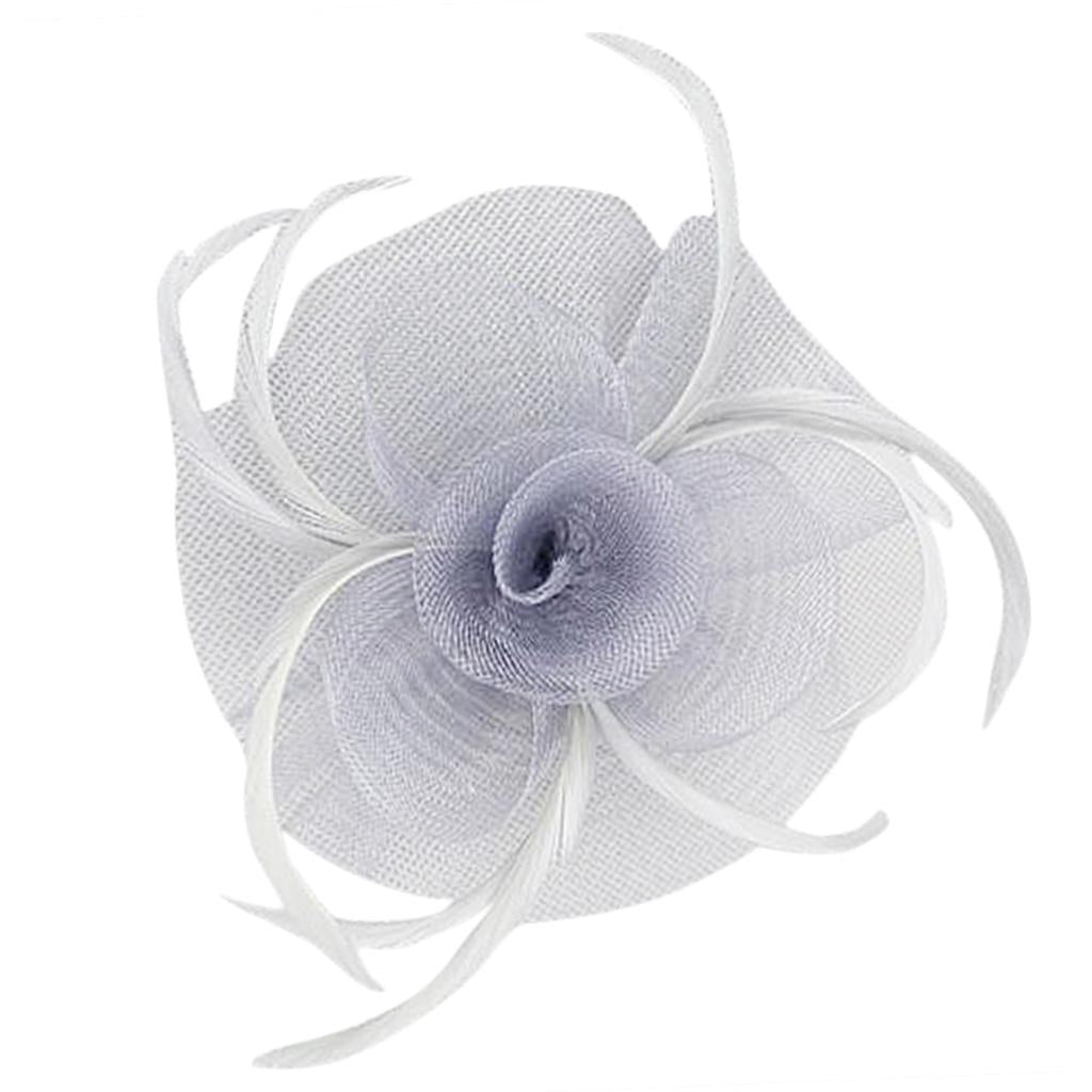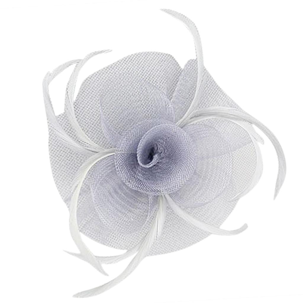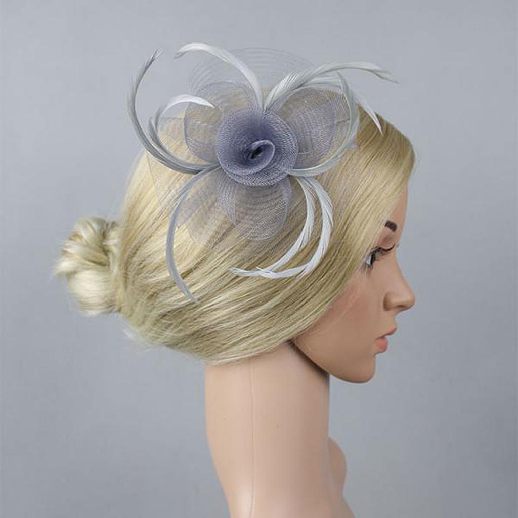Women Girls Wedding Prom Party Headband Headpiece Fashionable Flower Net Feather Fascinator Hat Hair Clip Accessory Gray