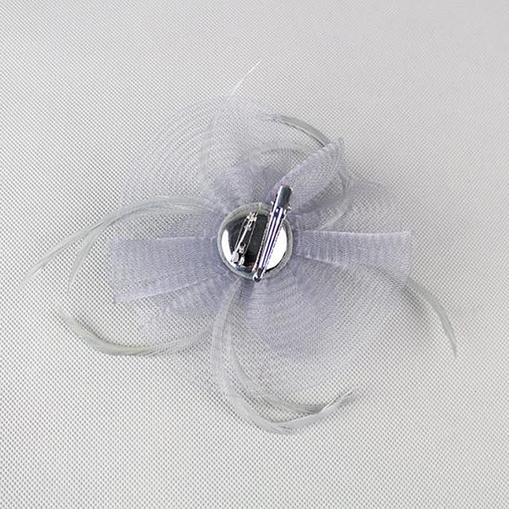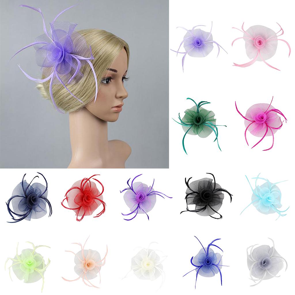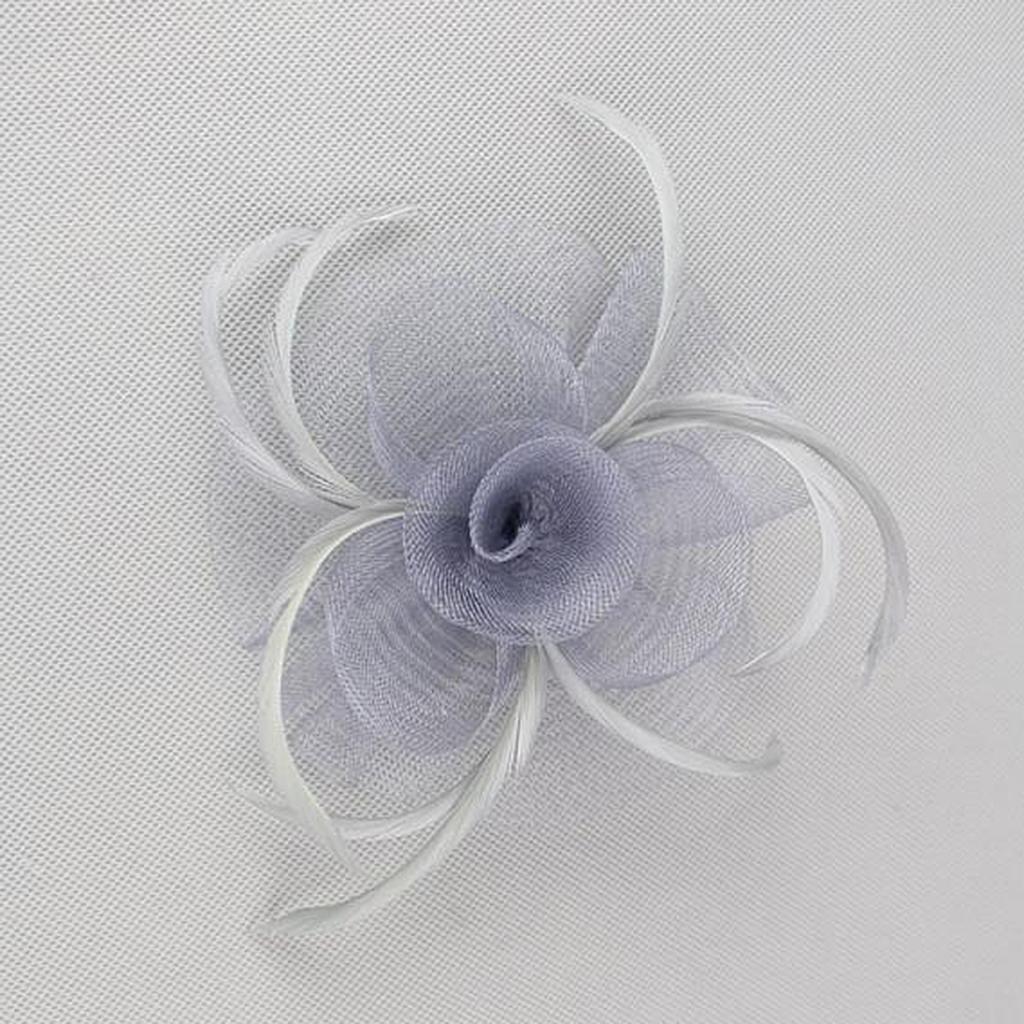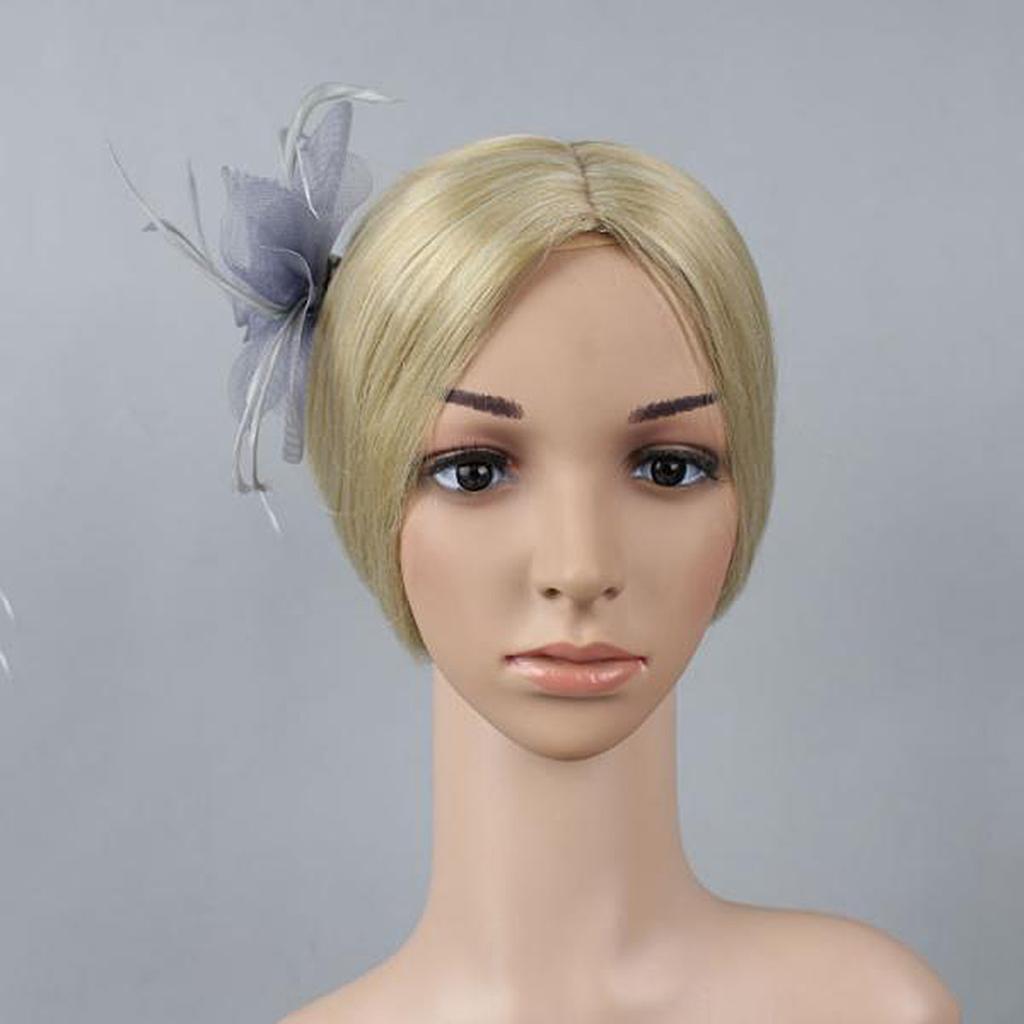 Women Girls Wedding Prom Party Headband Headpiece Fashionable Flower Net Feather Fascinator Hat Hair Clip Accessory Gray