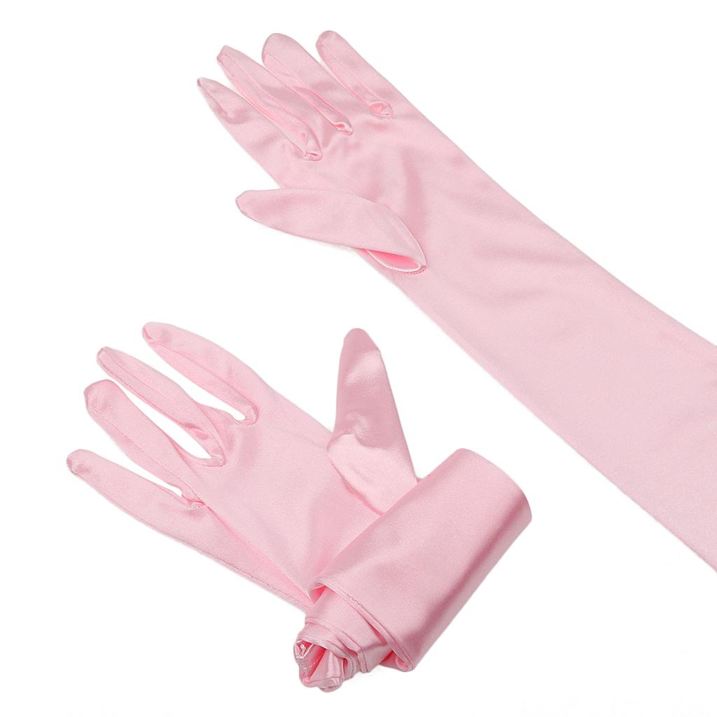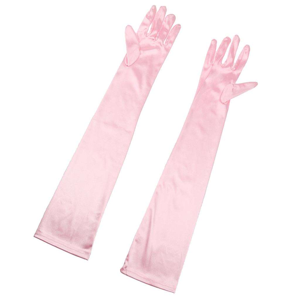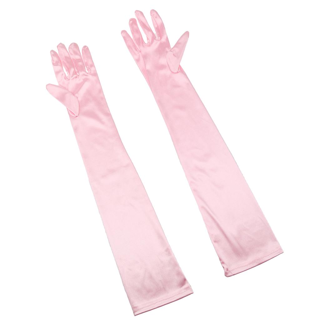 Women Ladies Fashionable Opera Evening Wedding Bridal Prom Party Long Satin Gloves 1 Pair Pink