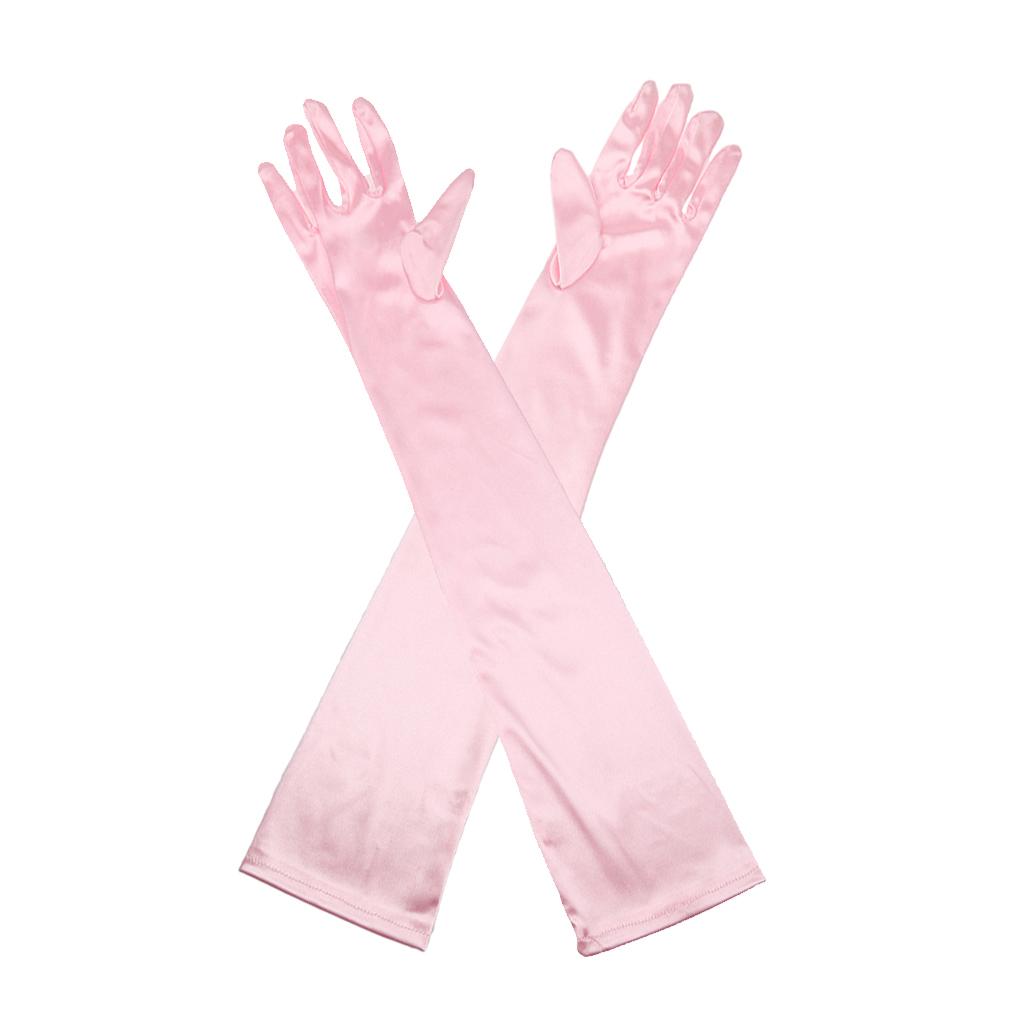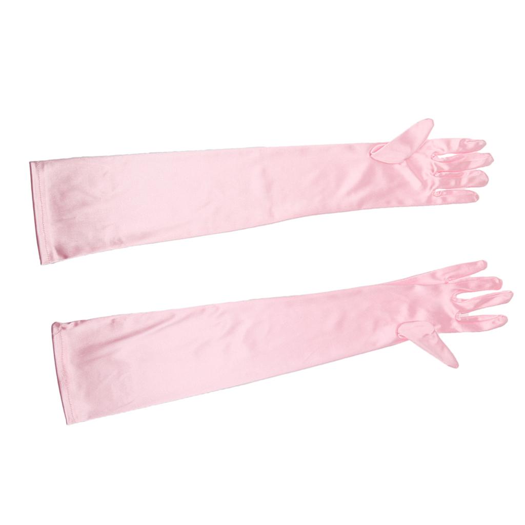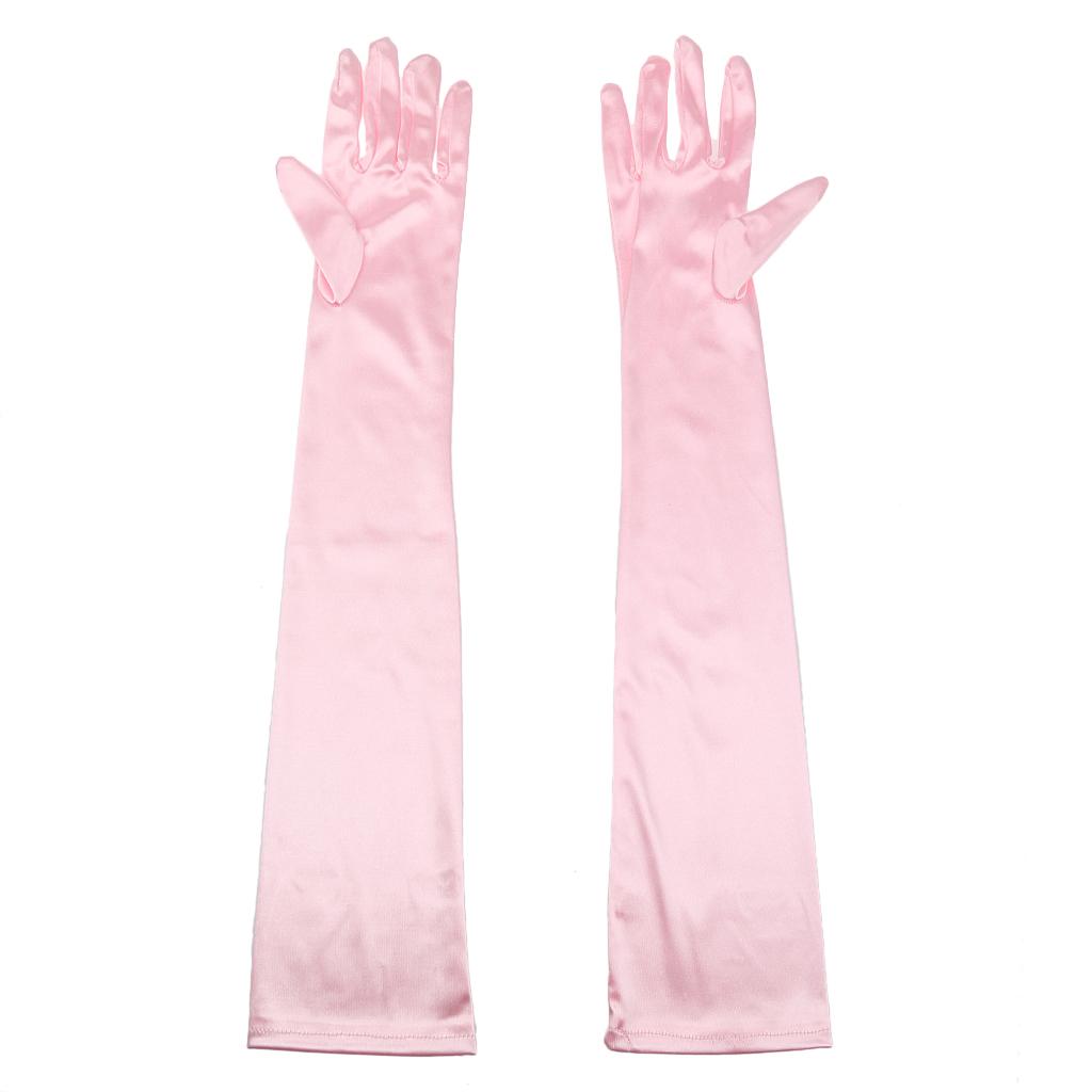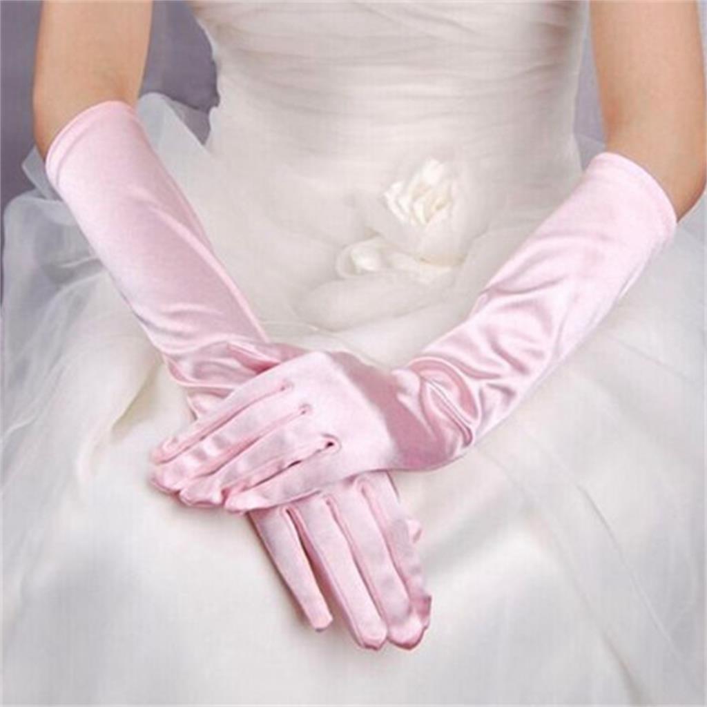 Women Ladies Fashionable Opera Evening Wedding Bridal Prom Party Long Satin Gloves 1 Pair Pink