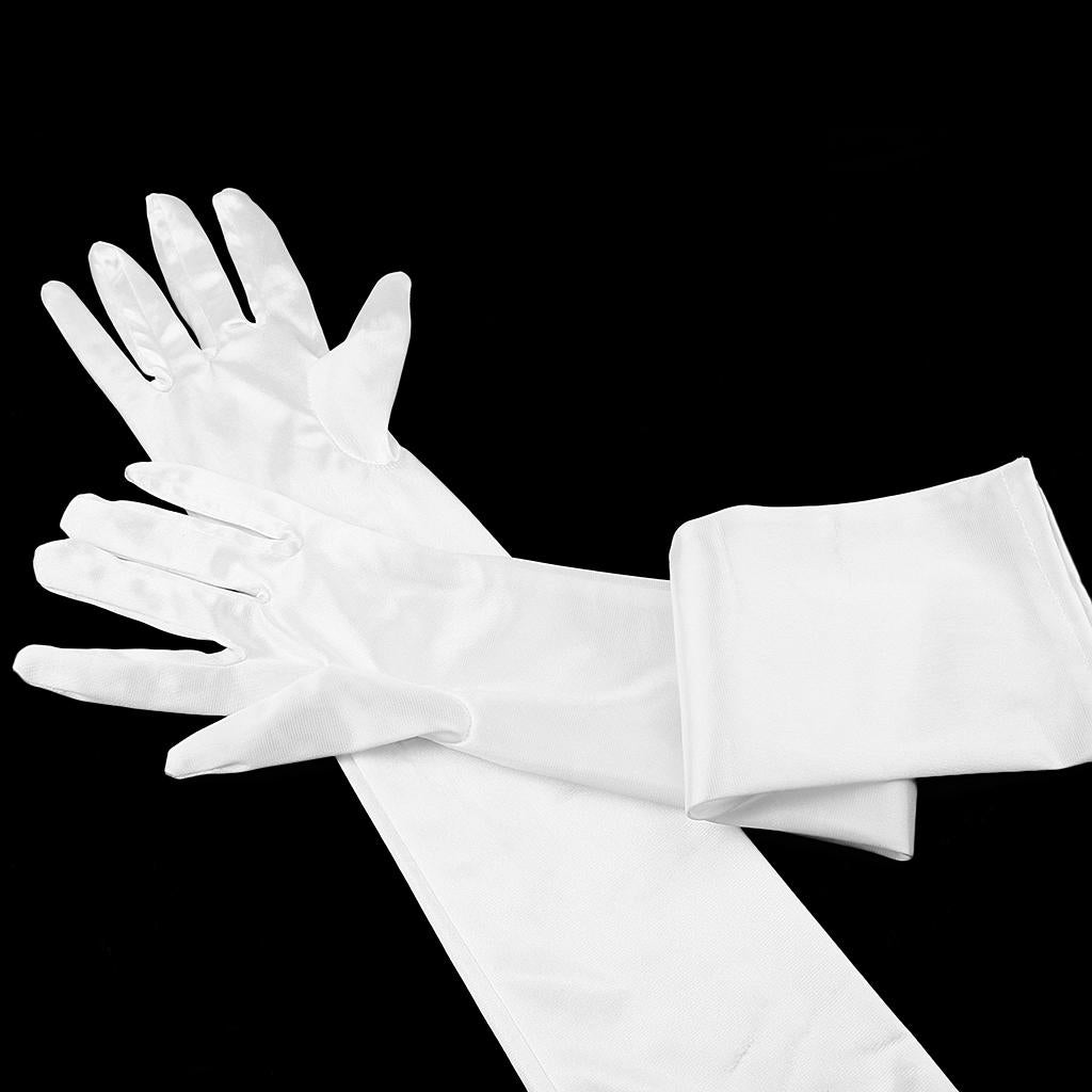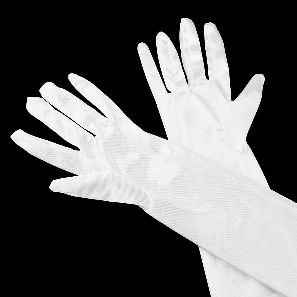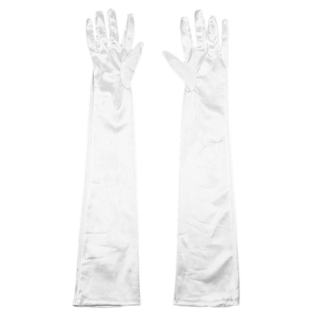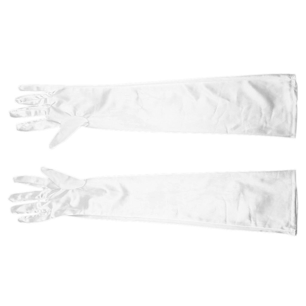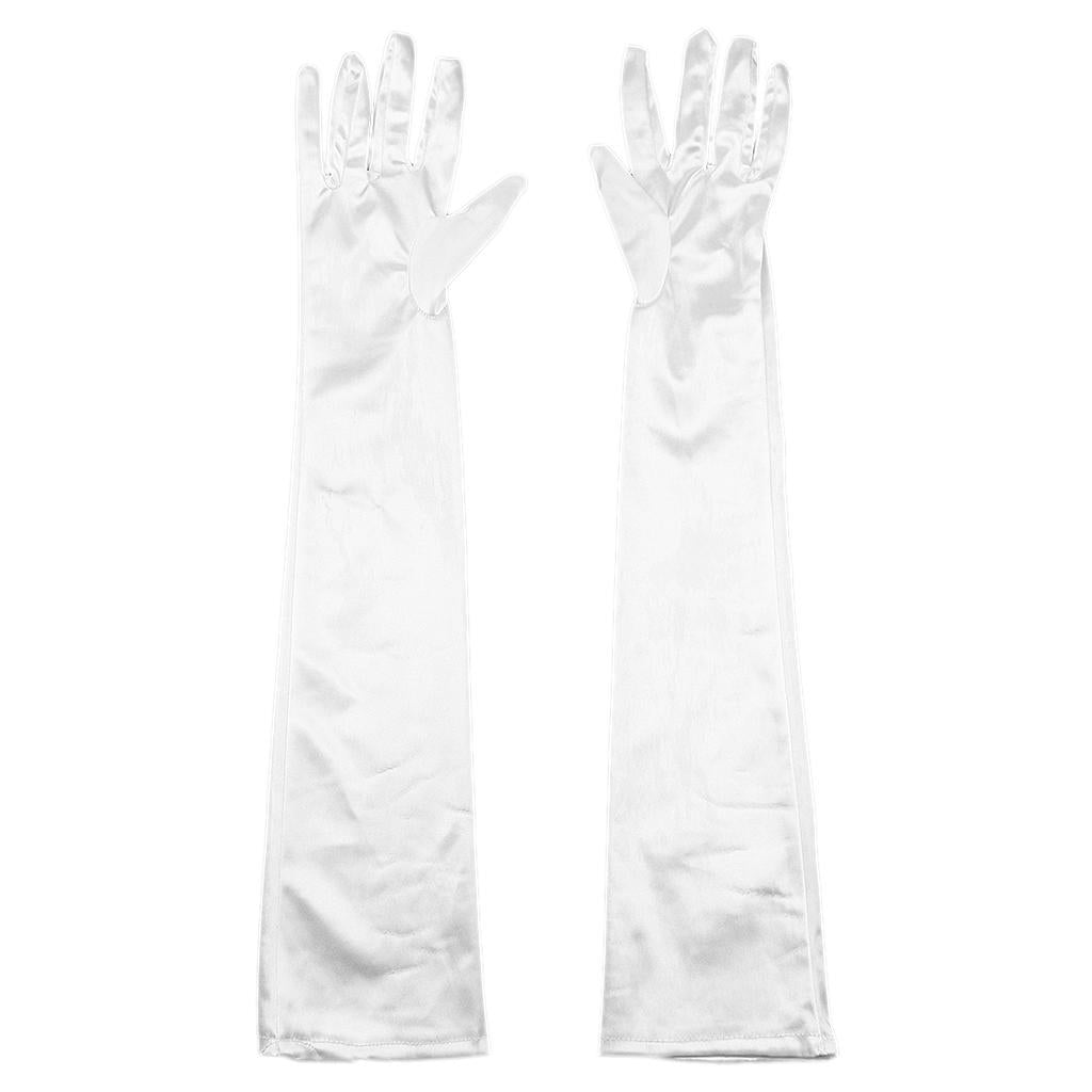 Women Ladies Fashionable Opera Evening Wedding Bridal Prom Party Long Satin Gloves 1 Pair White
