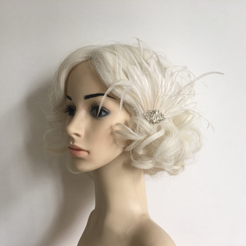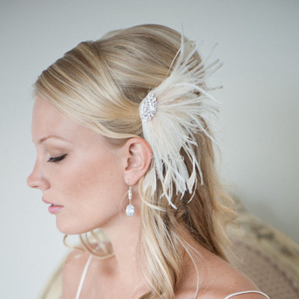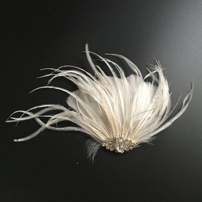 • This stunning hair clip fascinator is finished with gorgeous feather, alloy clip and rhinestone.