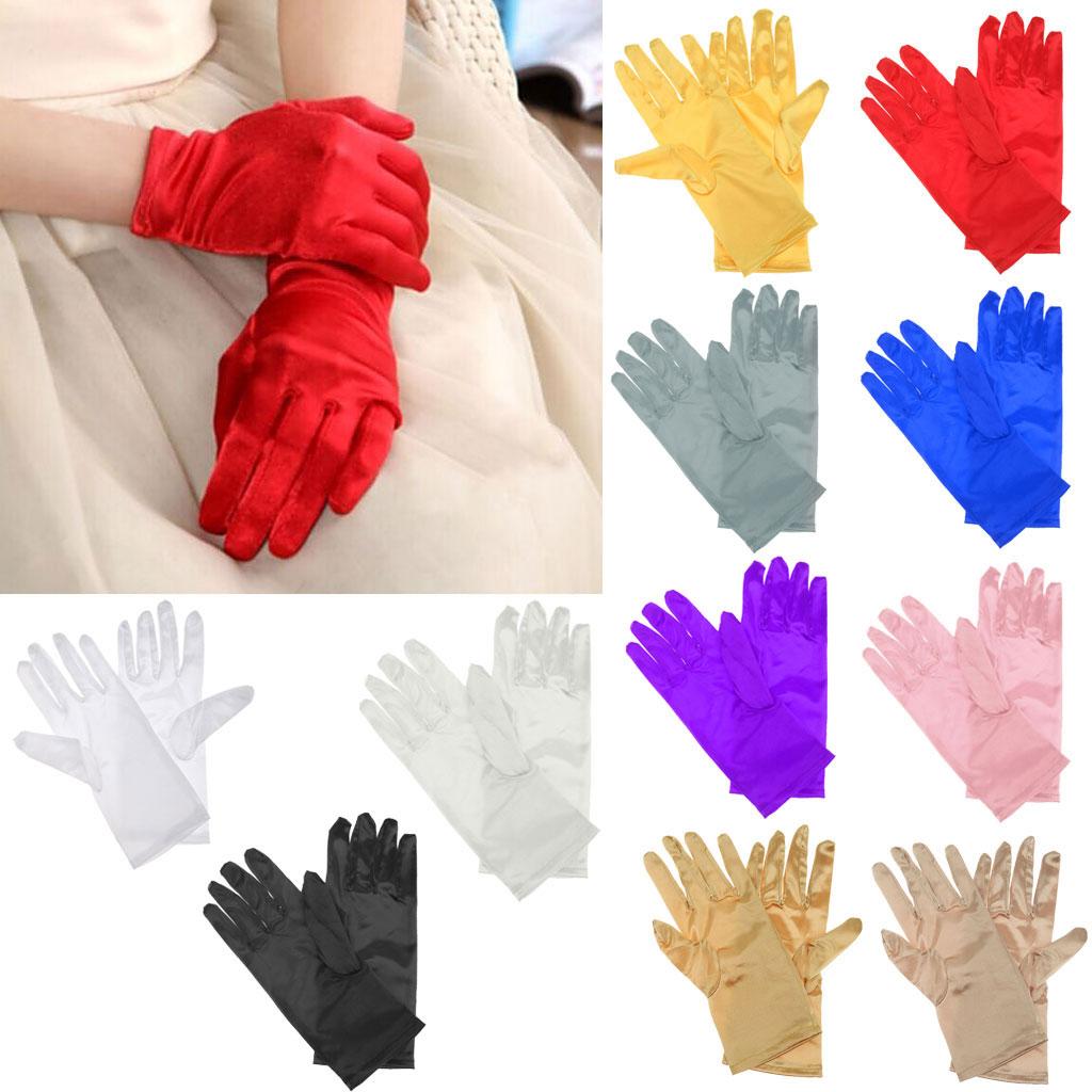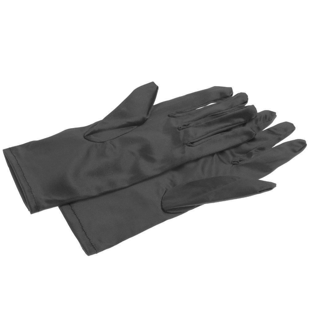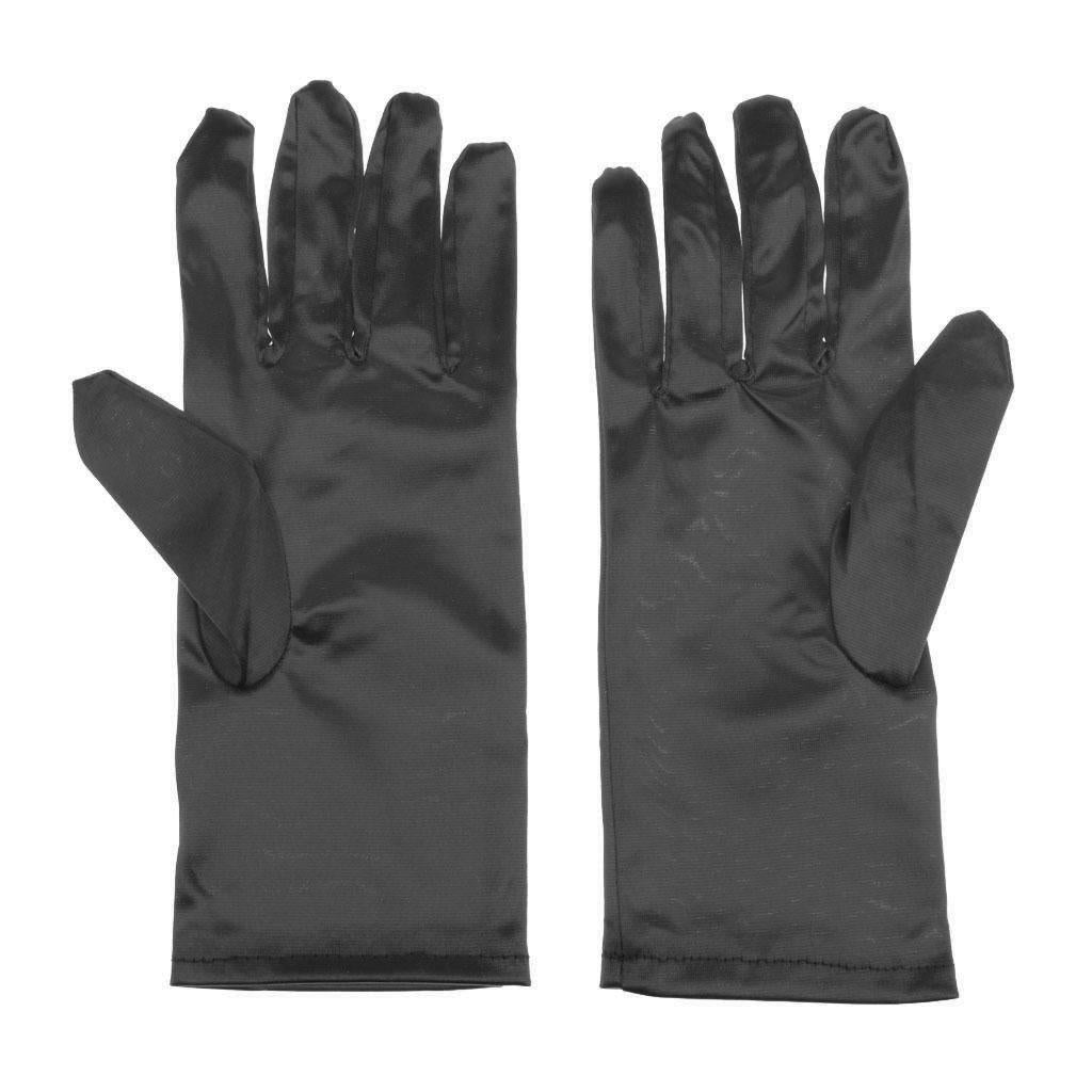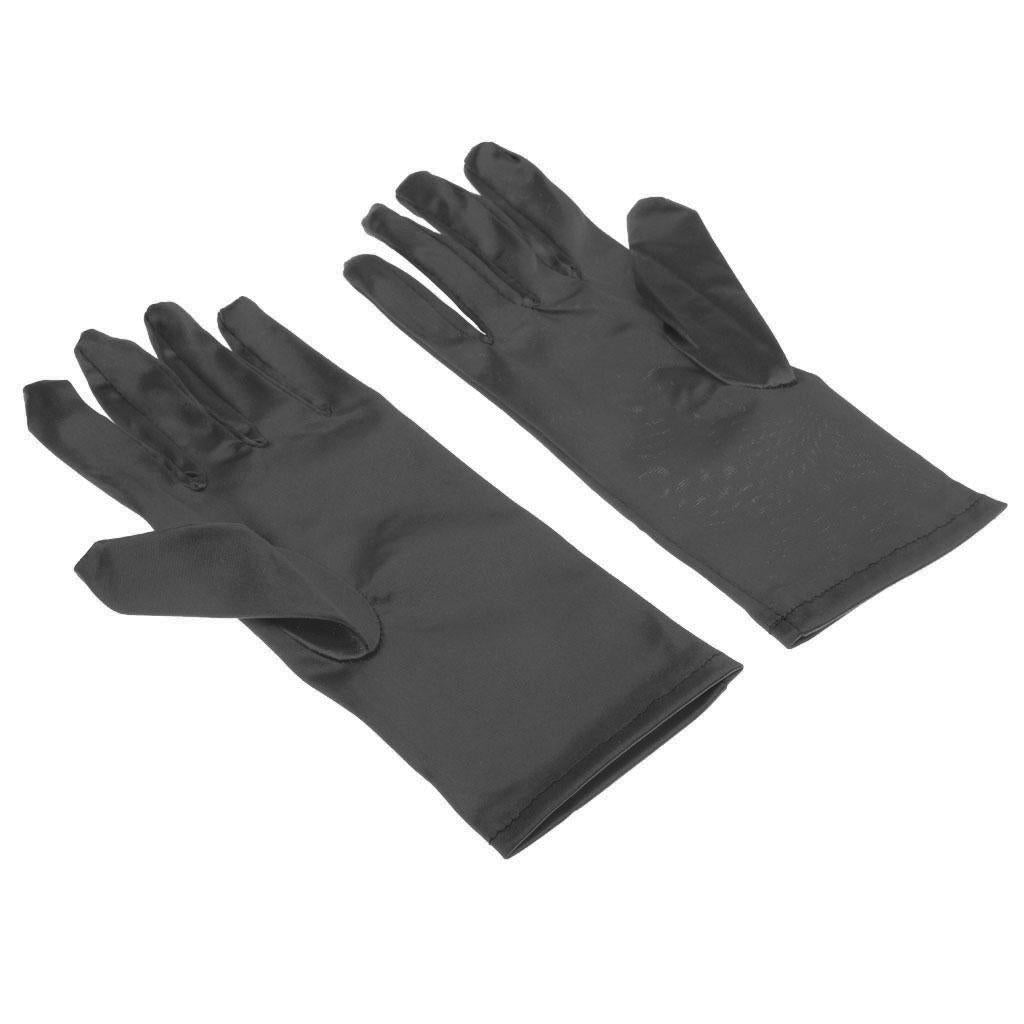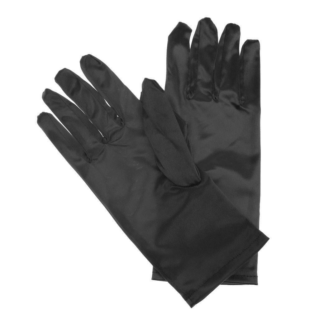 Women Ladies Short Satin Wrist Gloves For Wedding Evening Driving Black
