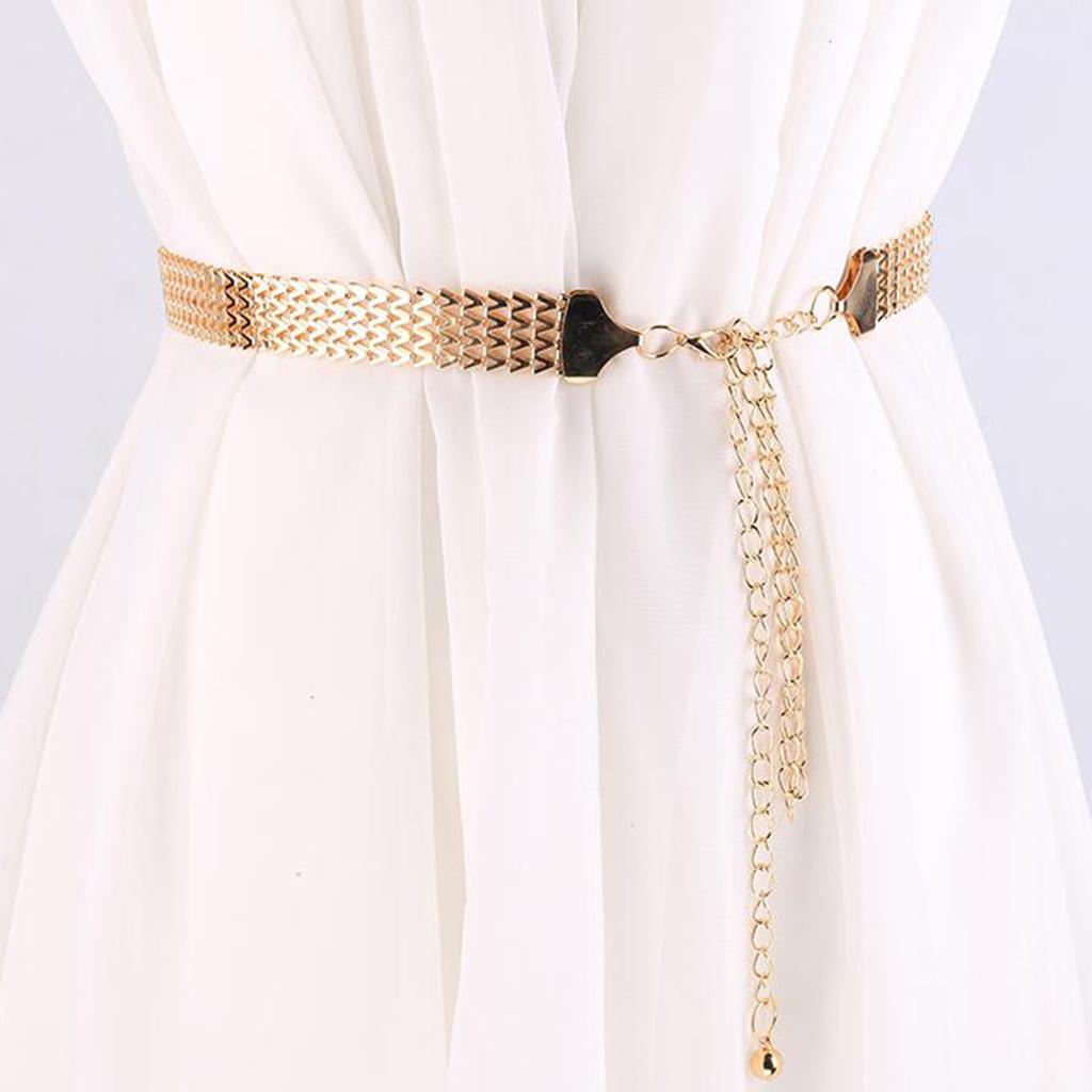 Women Ladies Stylish Wave Golden Waist Belt Modern Dress Chain Belt Jewelry