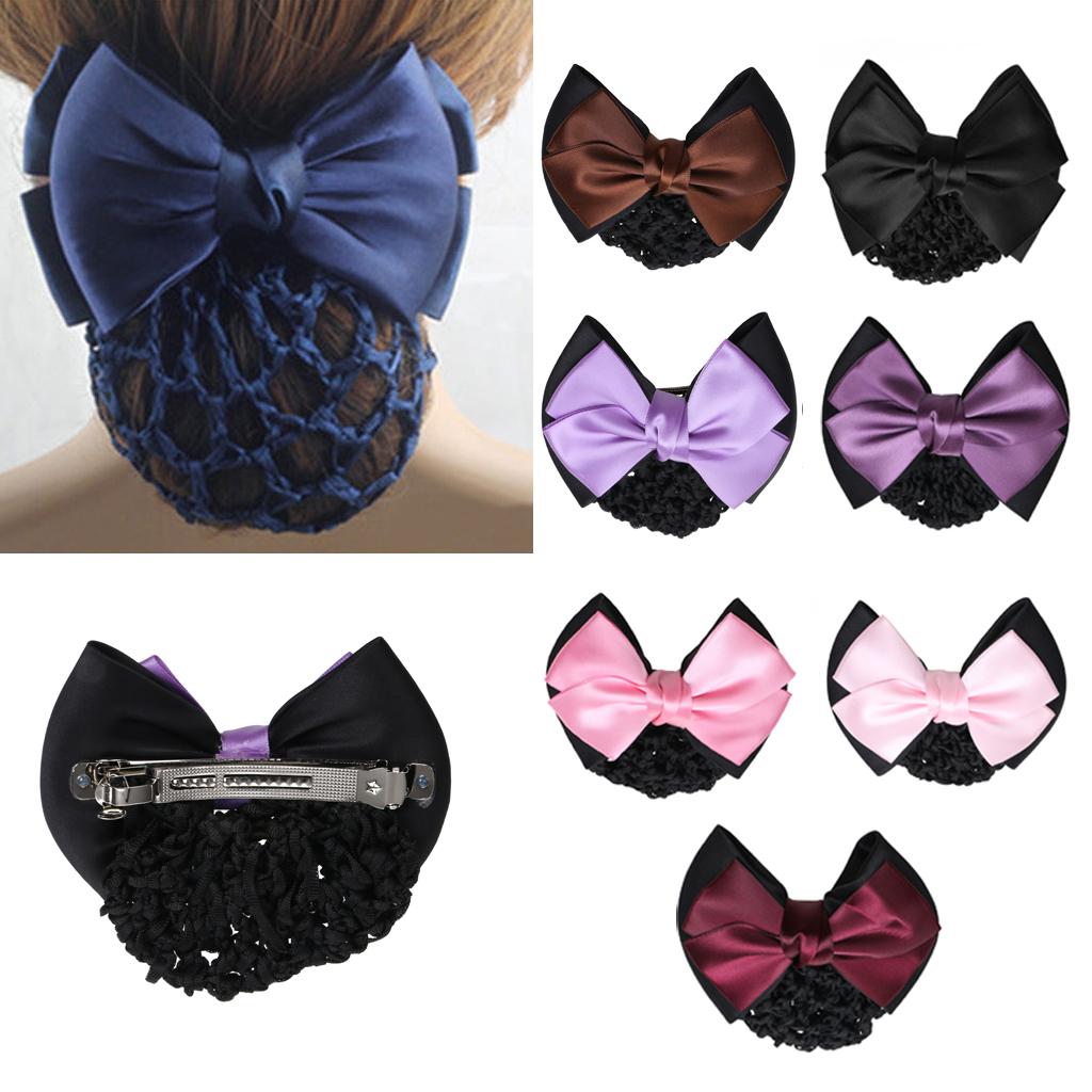 Women Lady Bowknot Hair Clip Cover Bun Snood Net Hair Accessory Blue