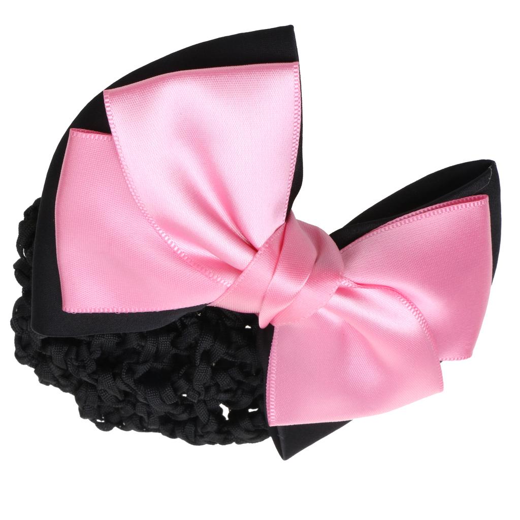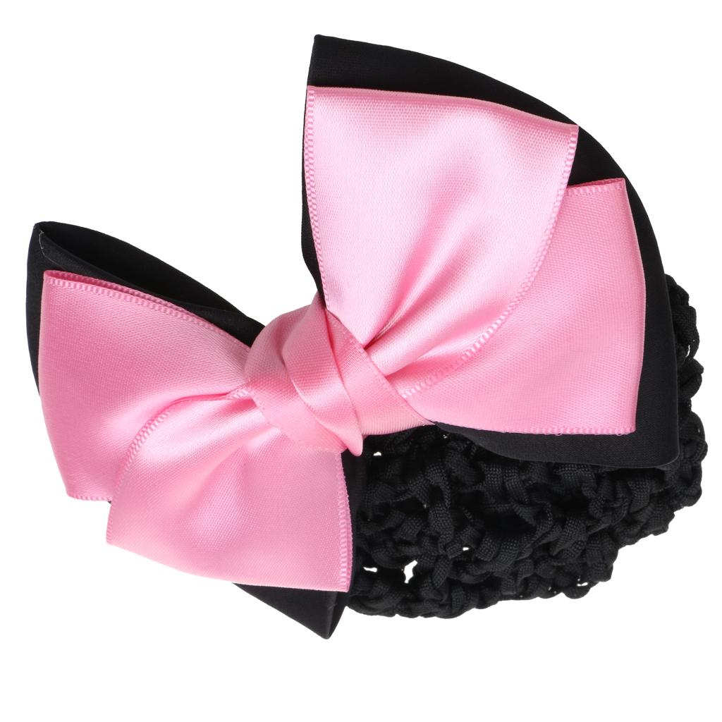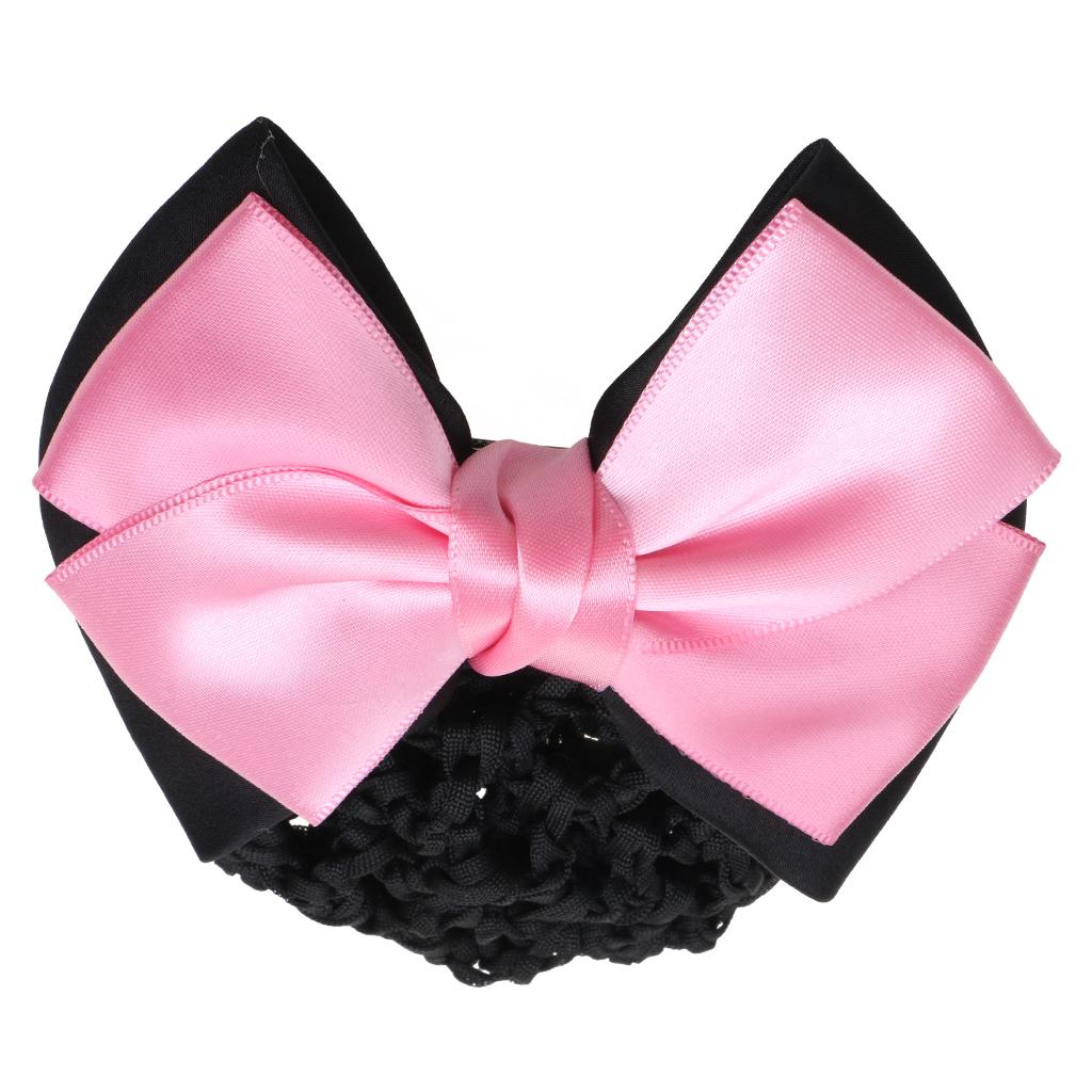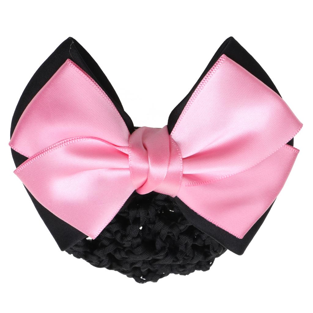 Women Lady Bowknot Hair Clip Cover Bun Snood Net Hair Accessory Pink
