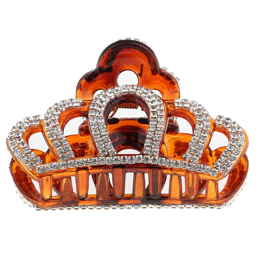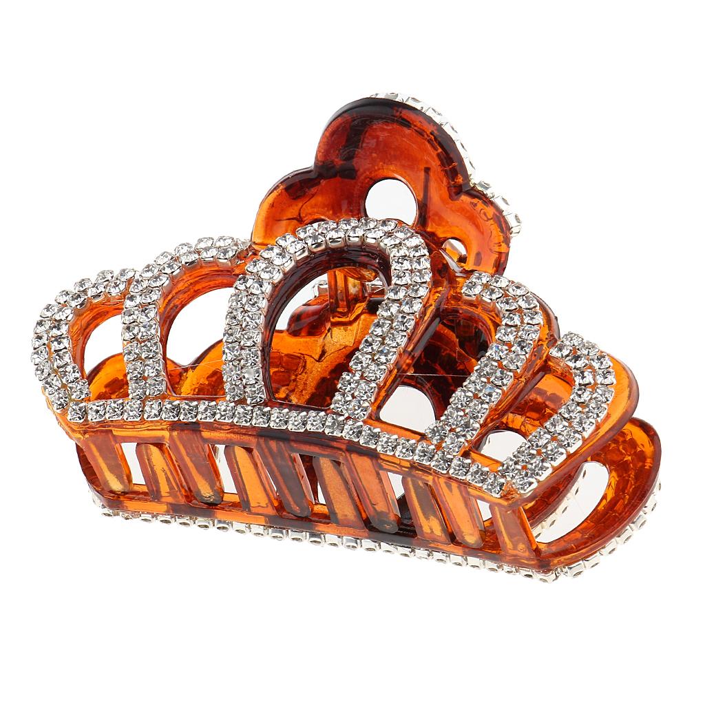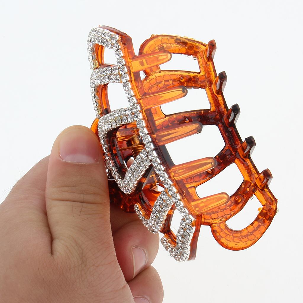 Women Large Hair Barrette Flower Acrylic Crystal Claw Clip Accessories Brown