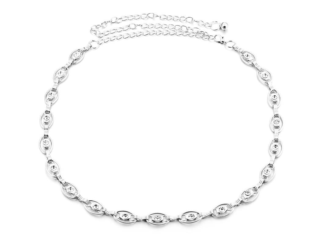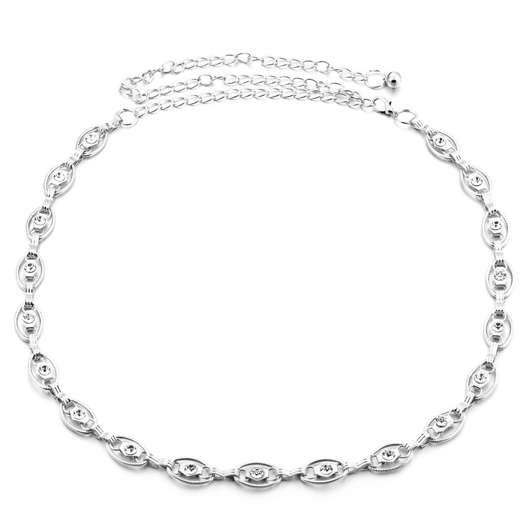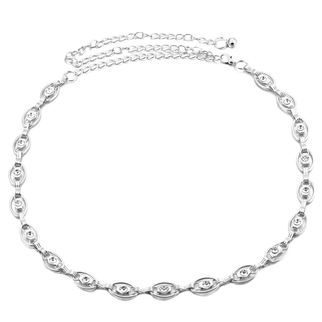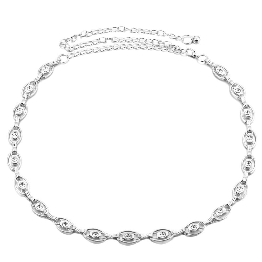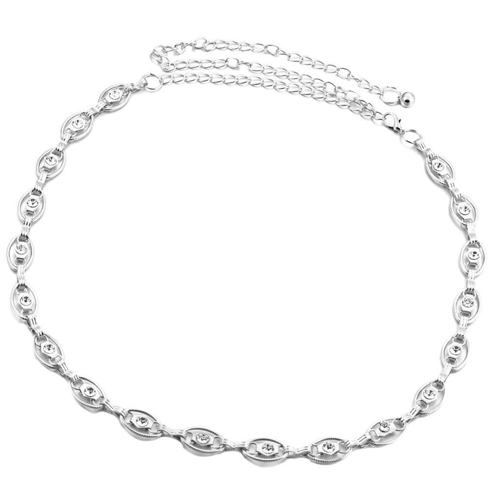 Women Luxury Rhinestone Chain Belt Waist Belt for Dress Decor Silver