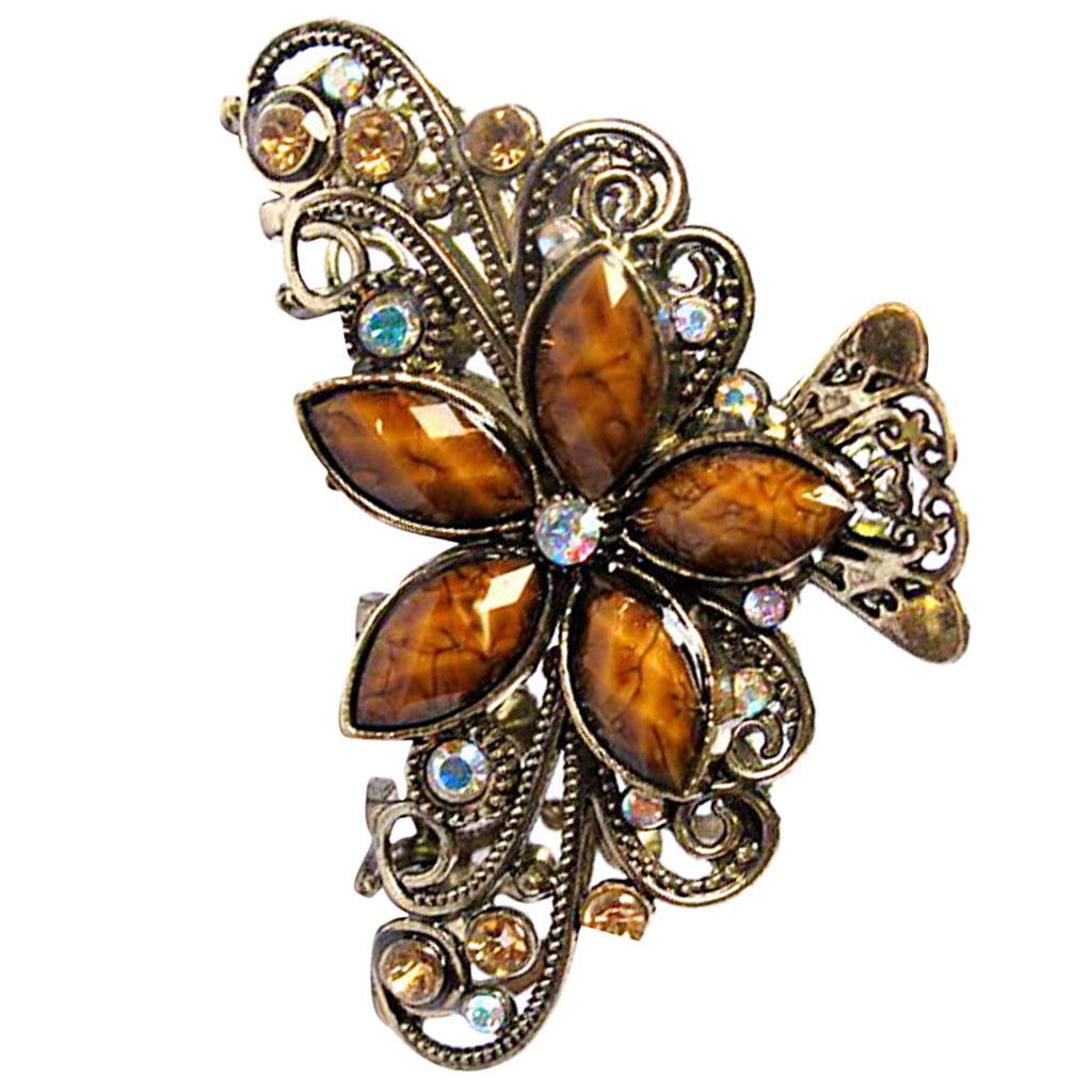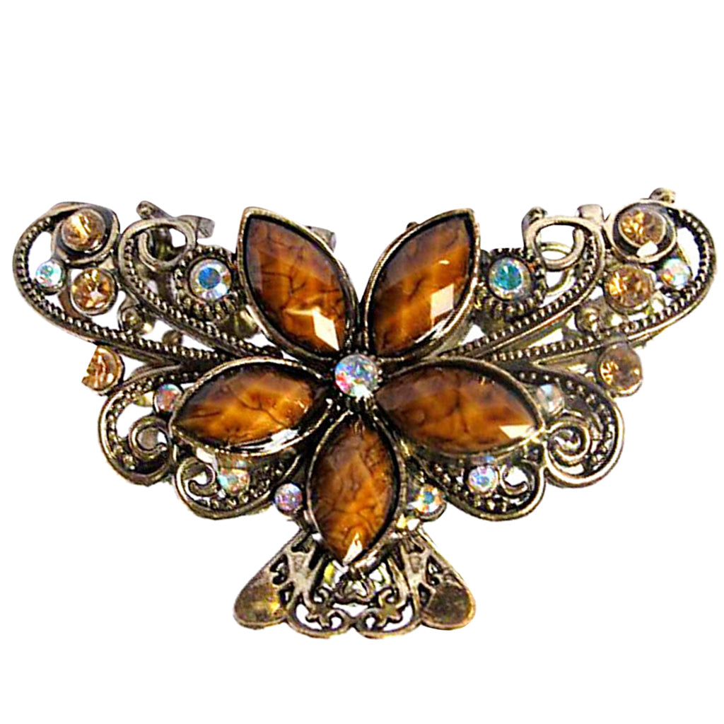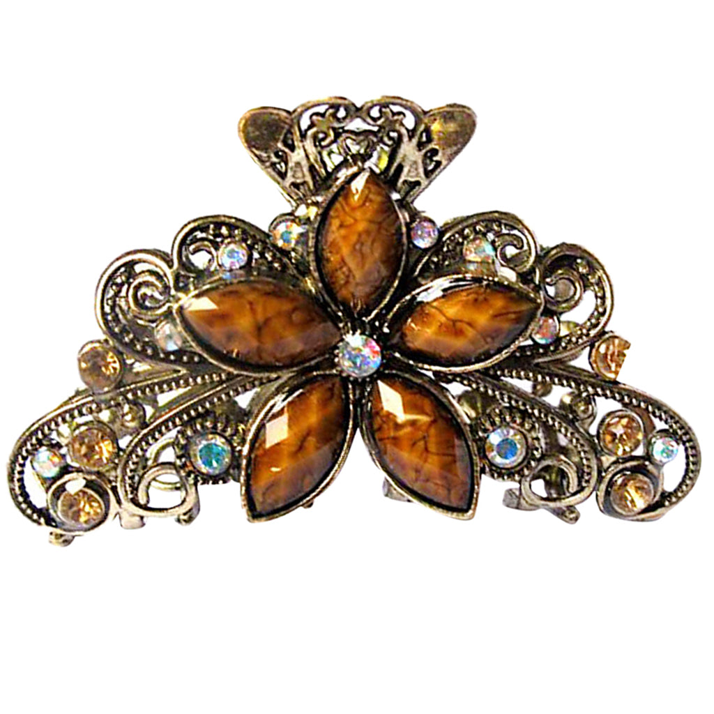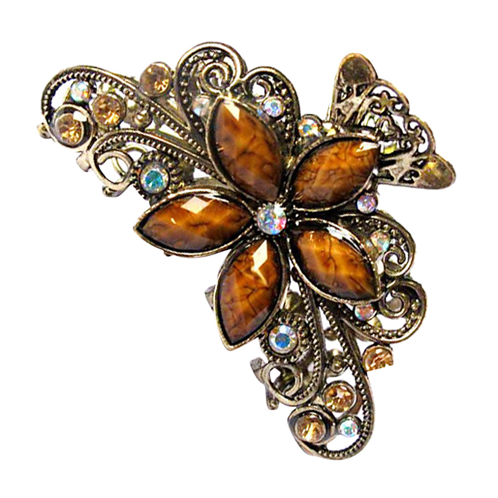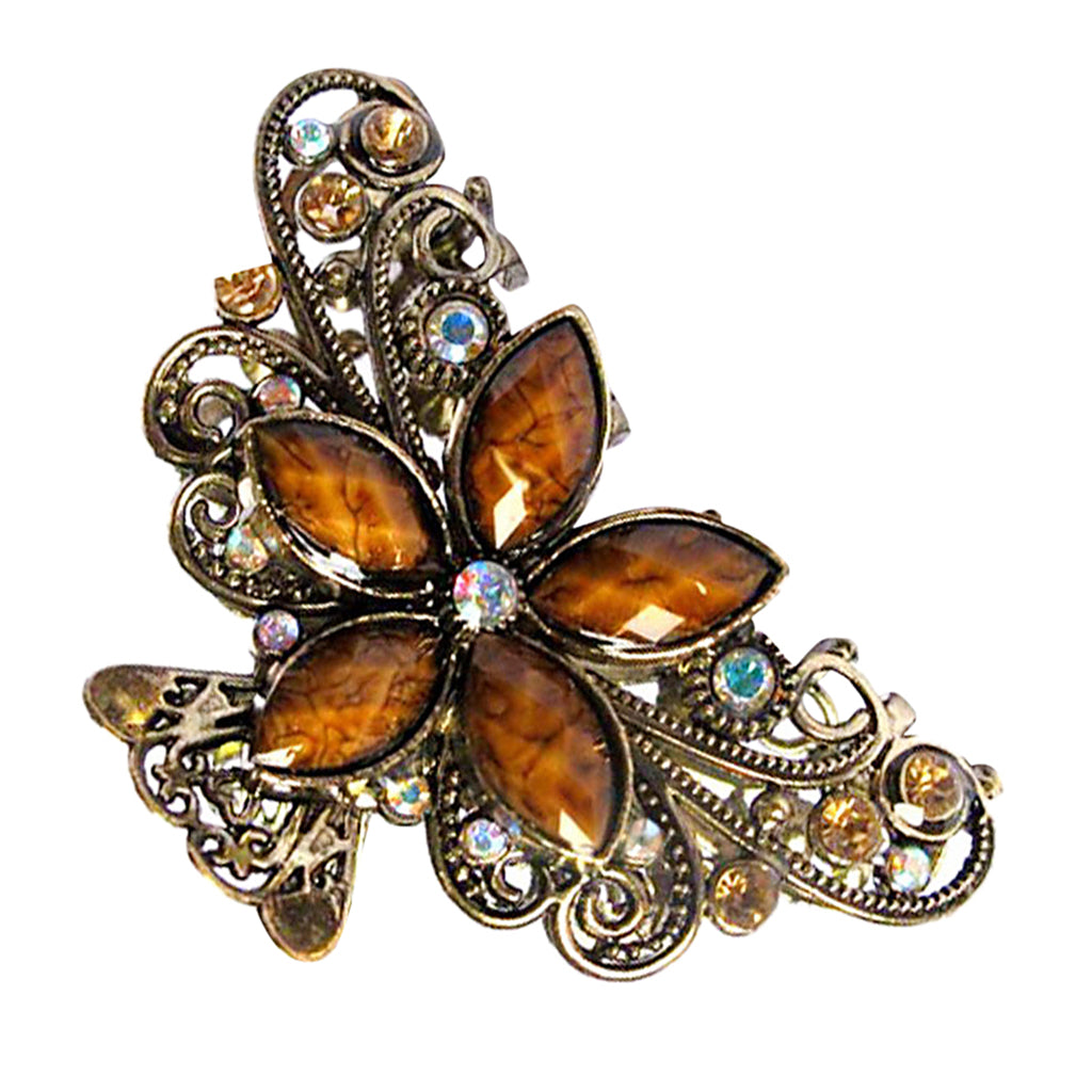Women Metal Butterfly Flower Hair Claw Clamps Hair Clip Accessories Brown