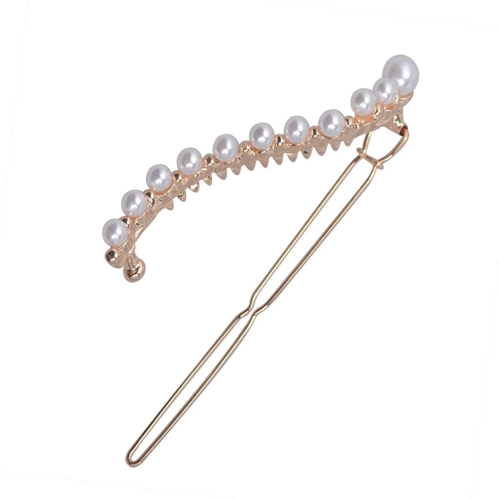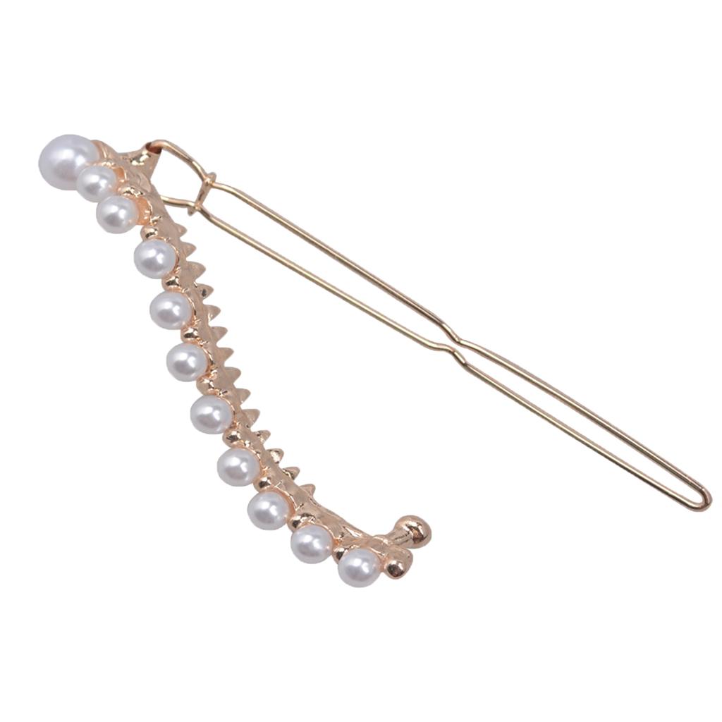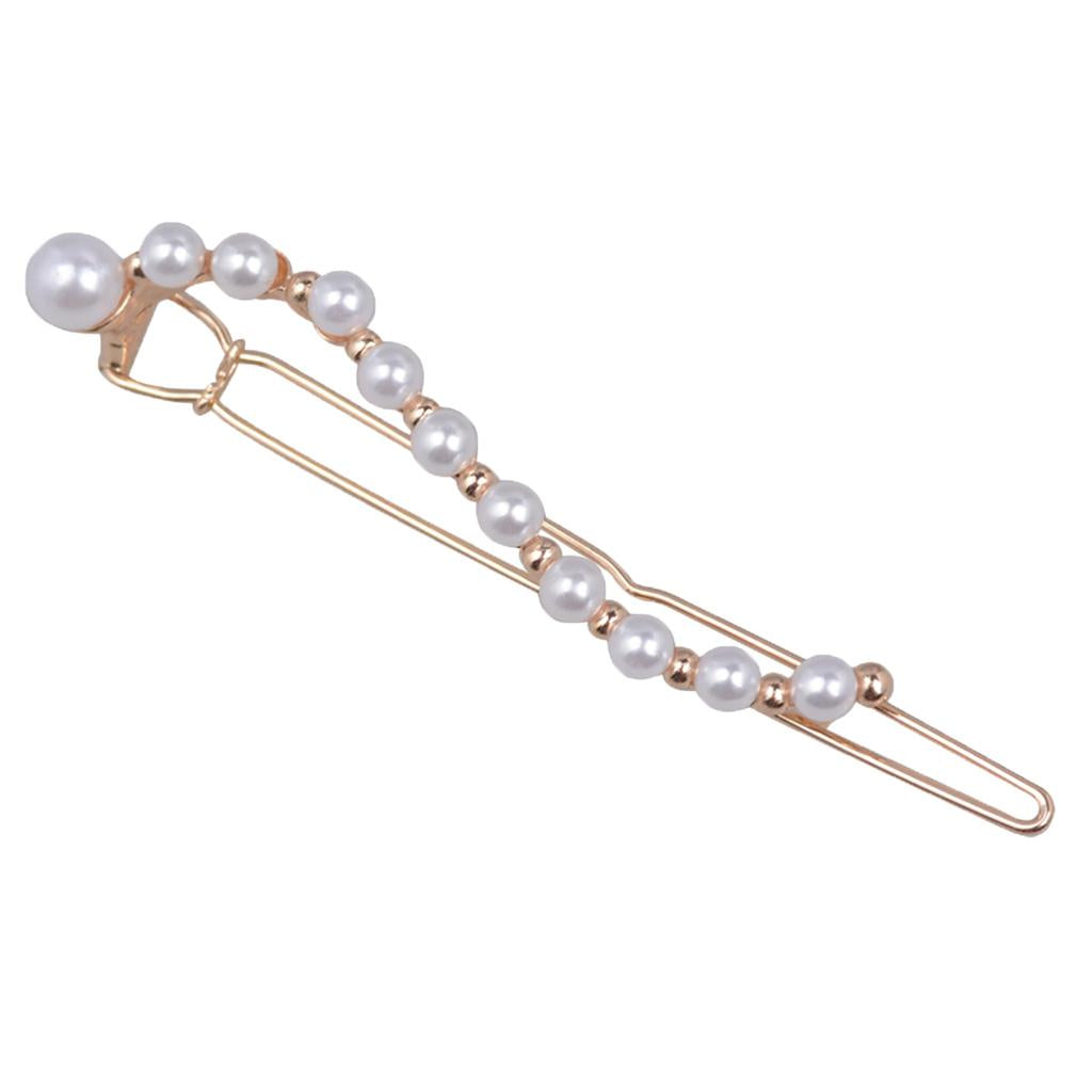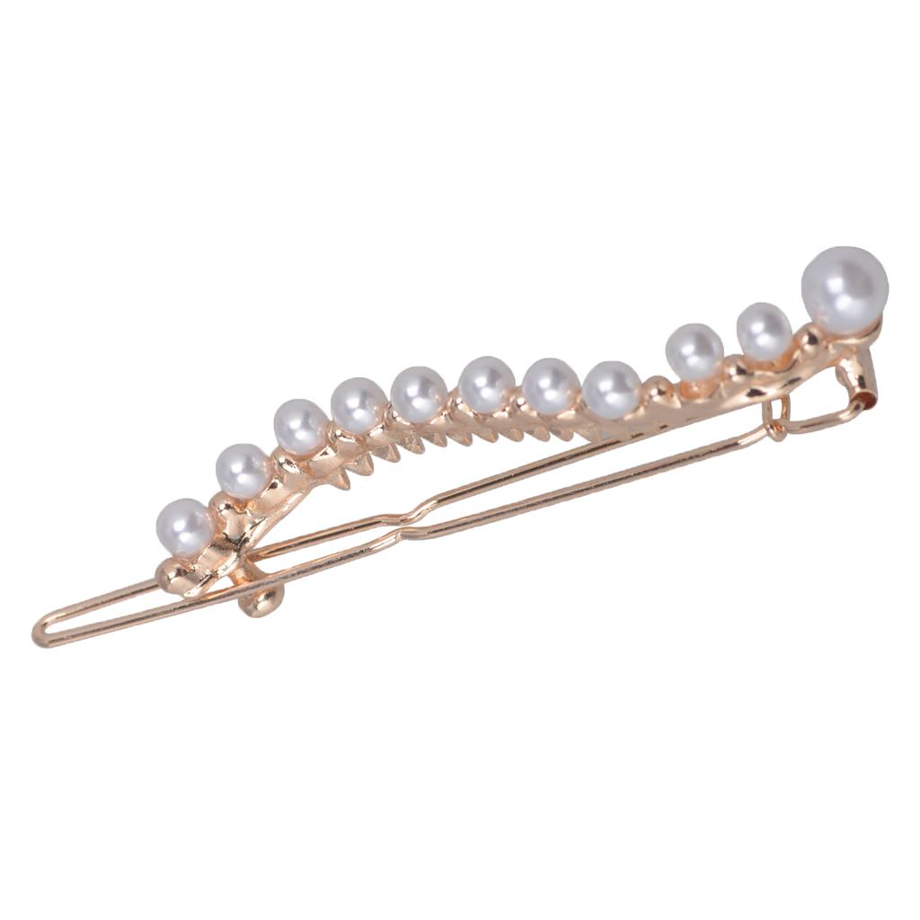 Women Simulated Pearl Slide Hair Clips Barrettes Teens Hairpin