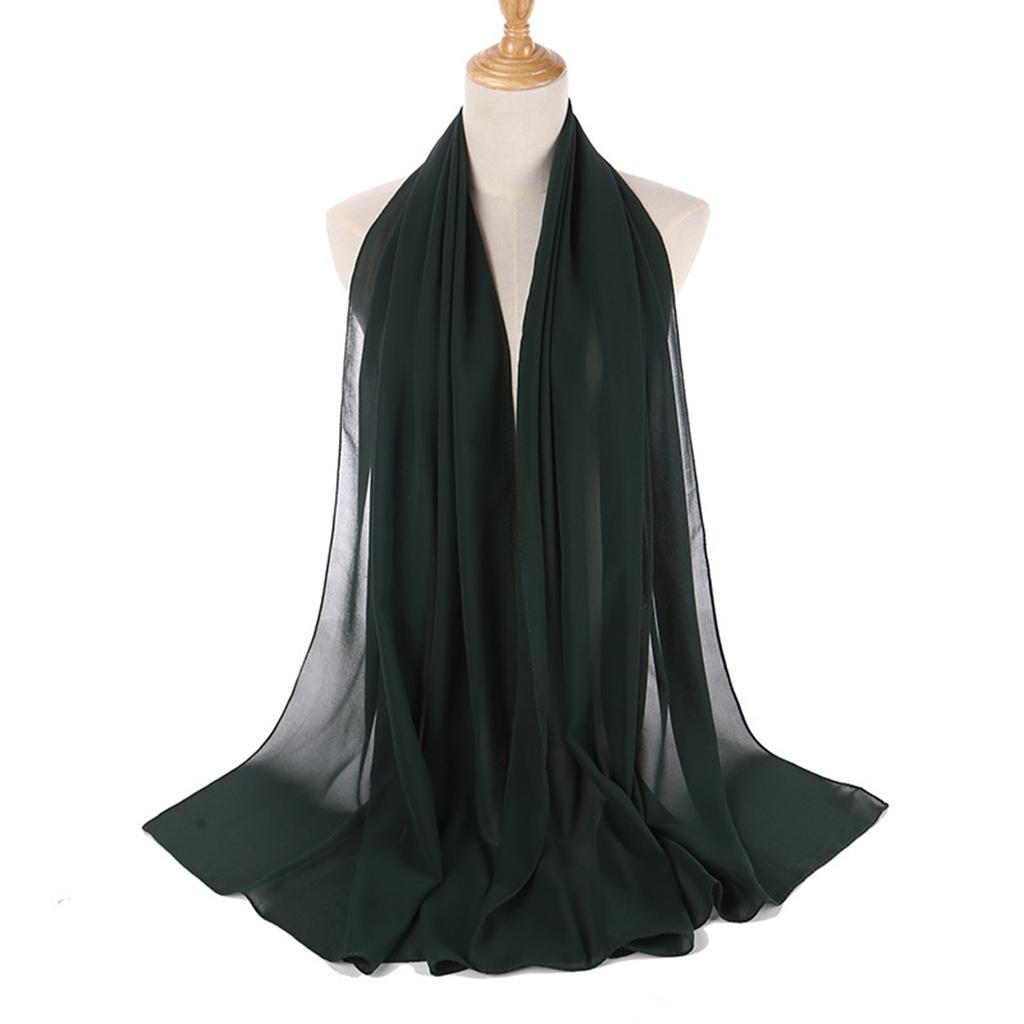 Women Solid Bubble Chiffon Scarf Muslim Hijabs Head Scarf Shawls Dark green