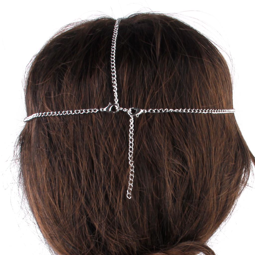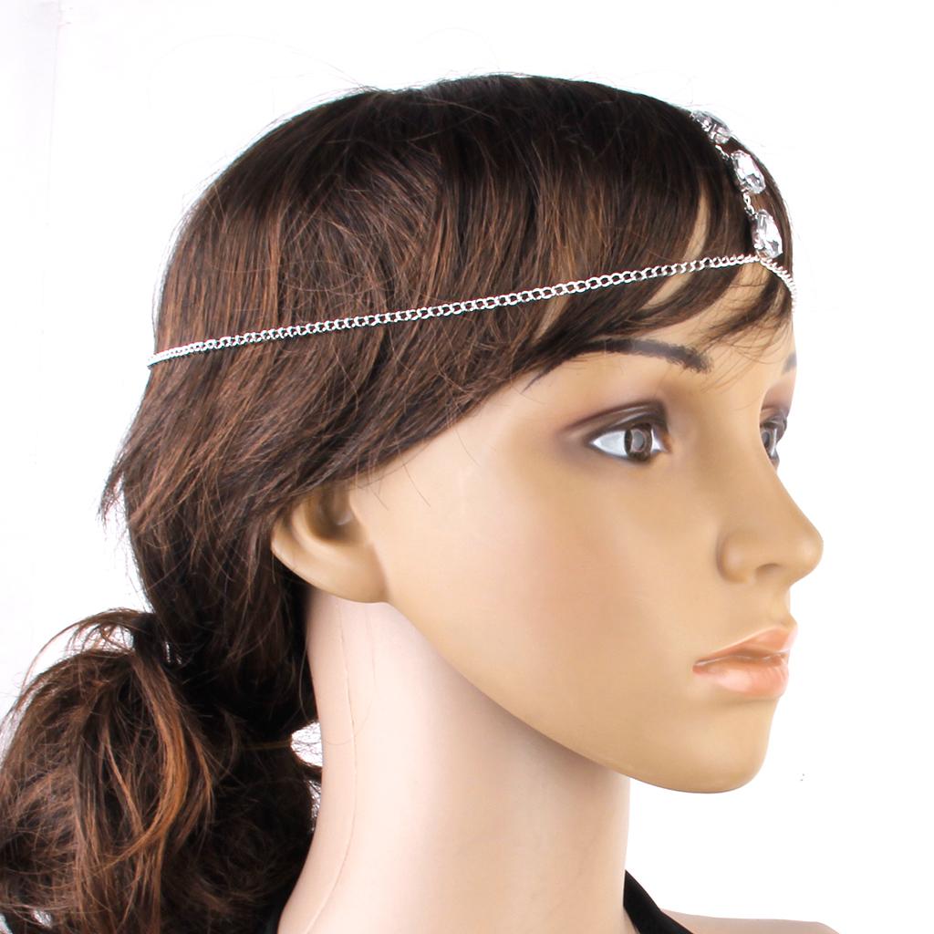 Women Wedding Bridal Rhinestone Forehead Band Head Piece Hair Chain Silver