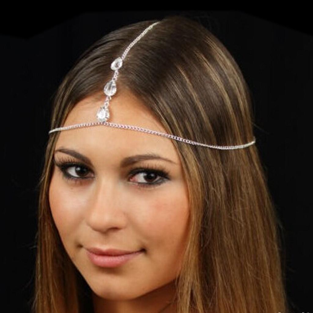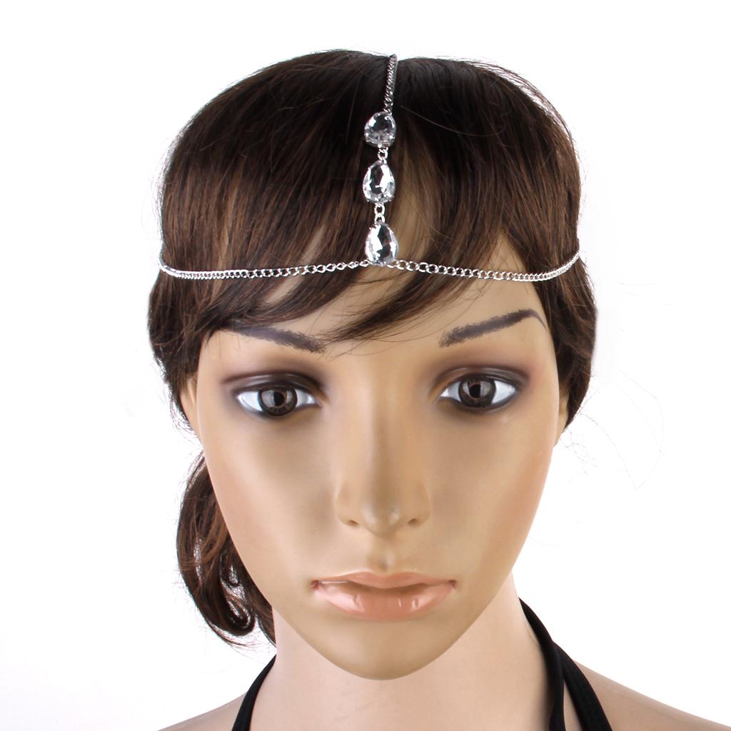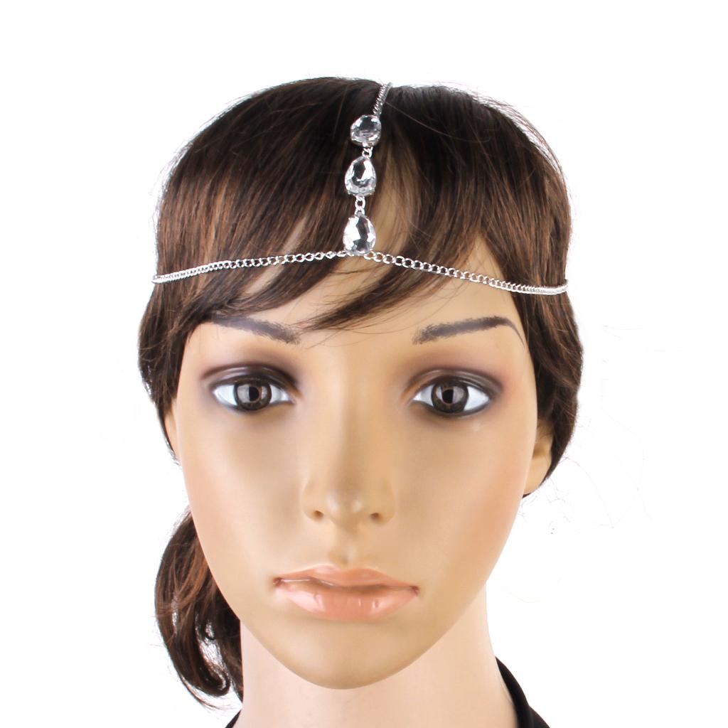• Silver head chain piece with 3 large diamante drops, let you become he focus among the crowds