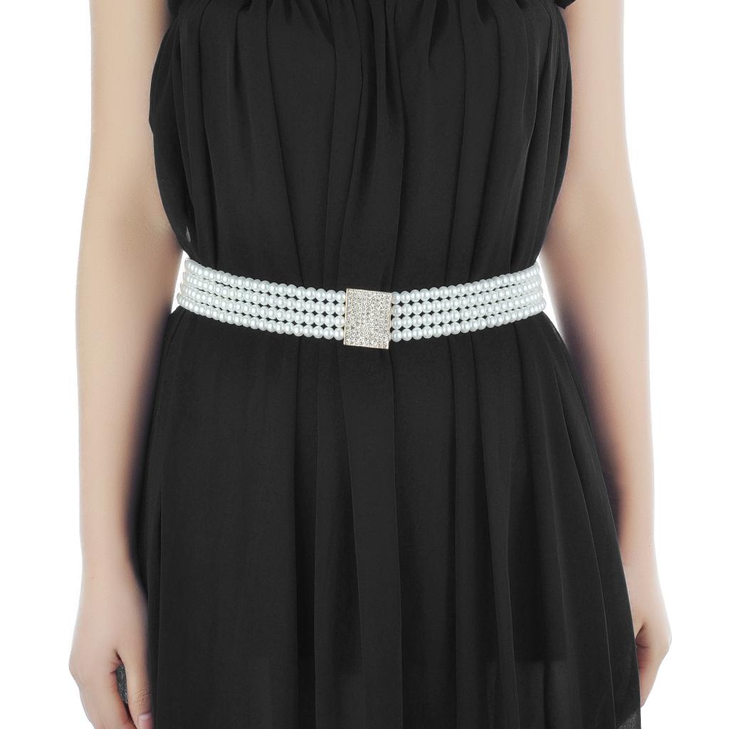 Women's 4 Rows Chain Pearl Beaded Waist Corset Belt Jewelry Crystal Buckle Waistband