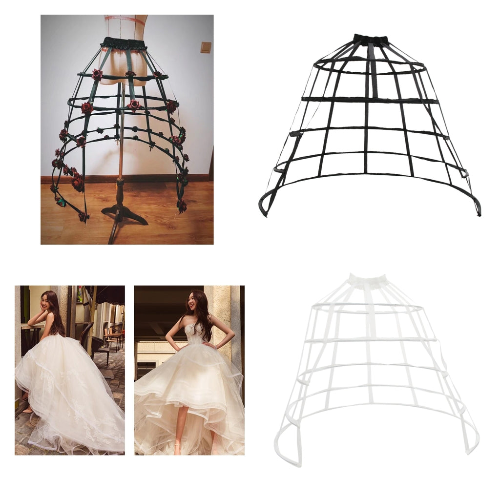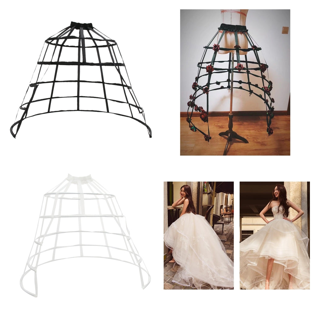 This black/white hoop cage skirt long pannier 5 hoops crinoline support skirts.
