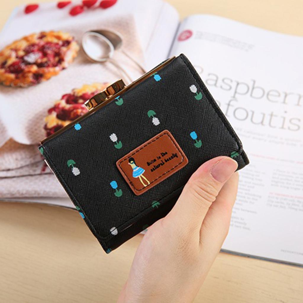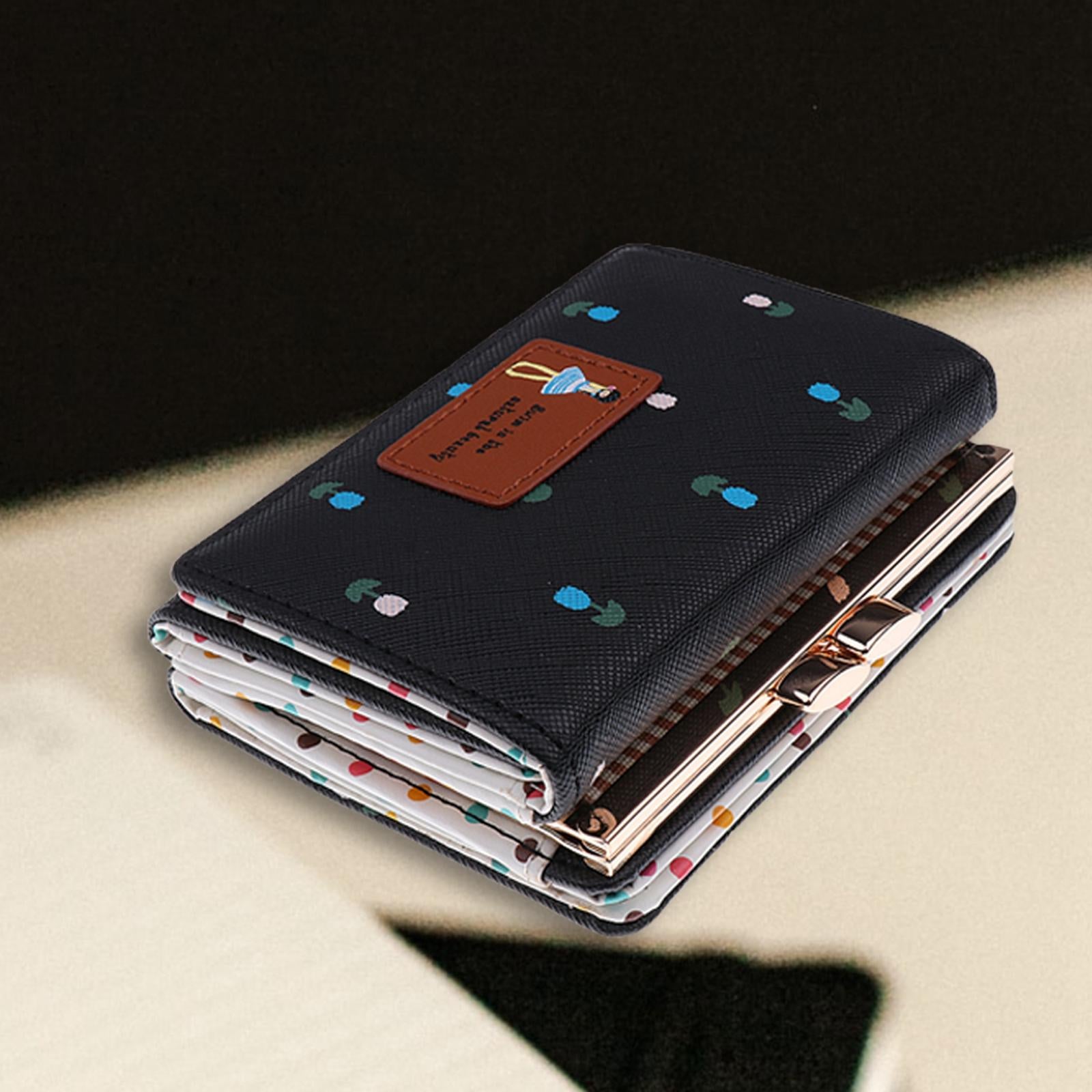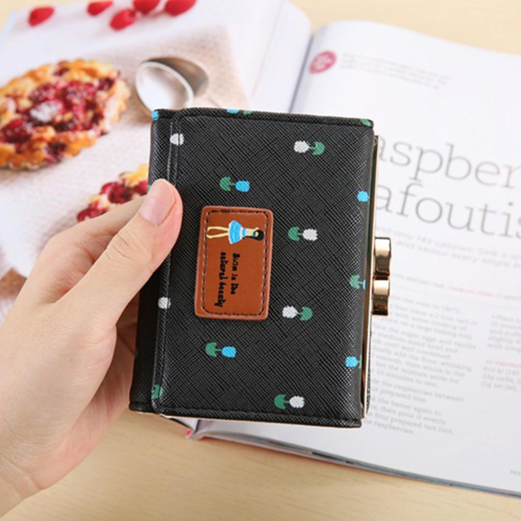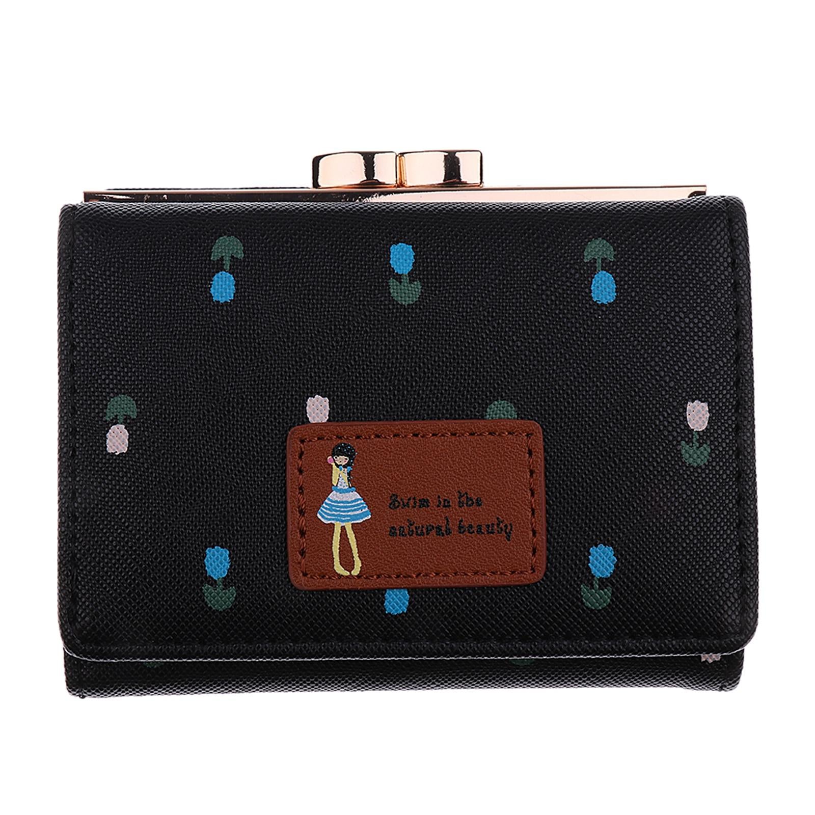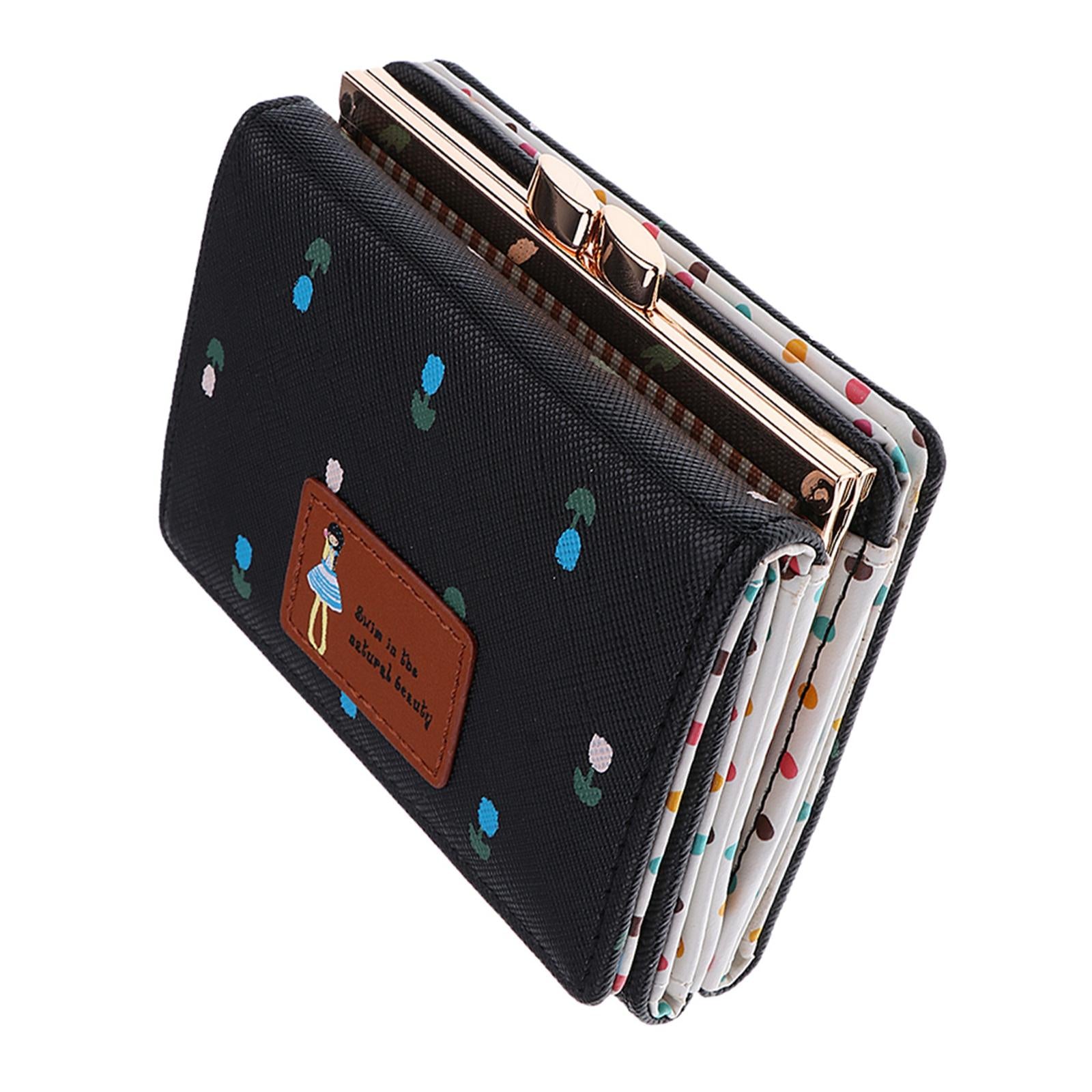 Womens Bifold Wallet Clutch Card Holders Purse Short Handbag Black