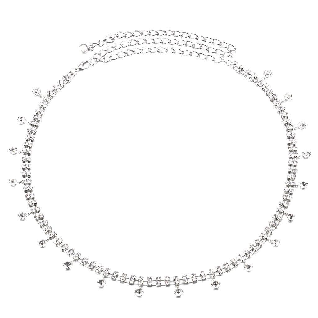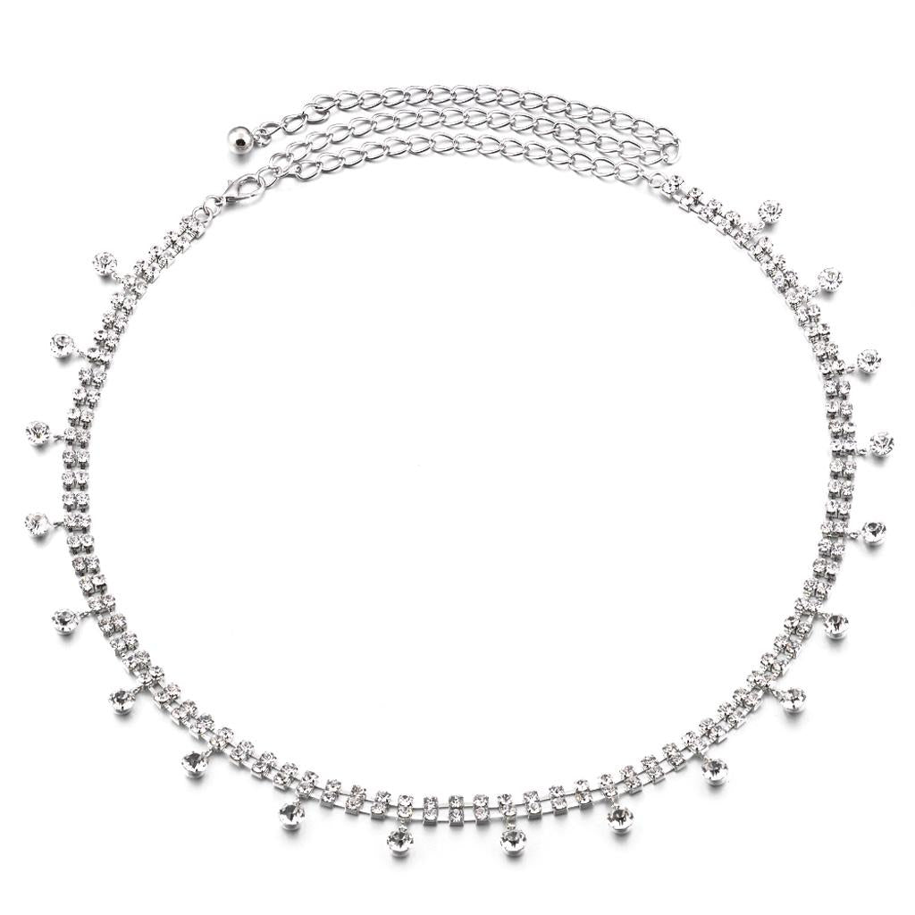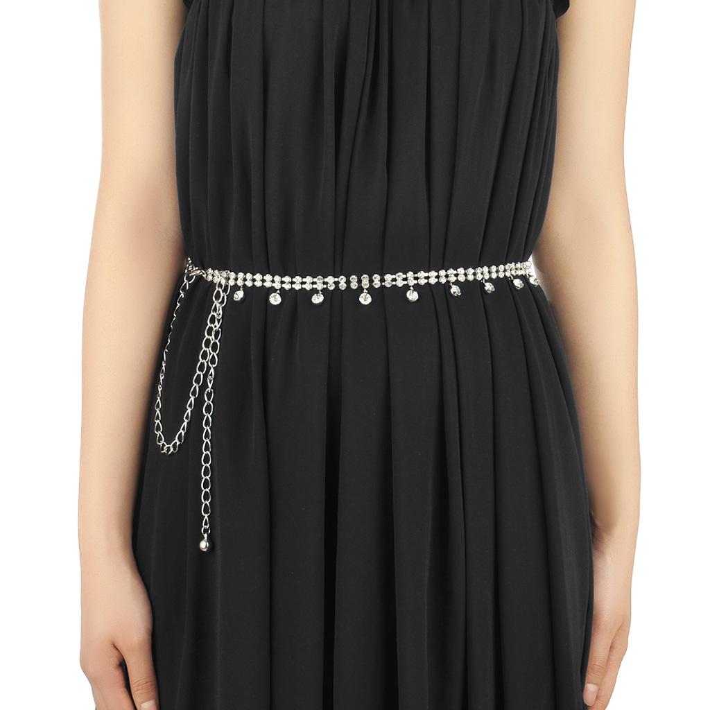 Womens Bling Crystal Rhinestone Two Rows Chain Belt Silver 111cm
