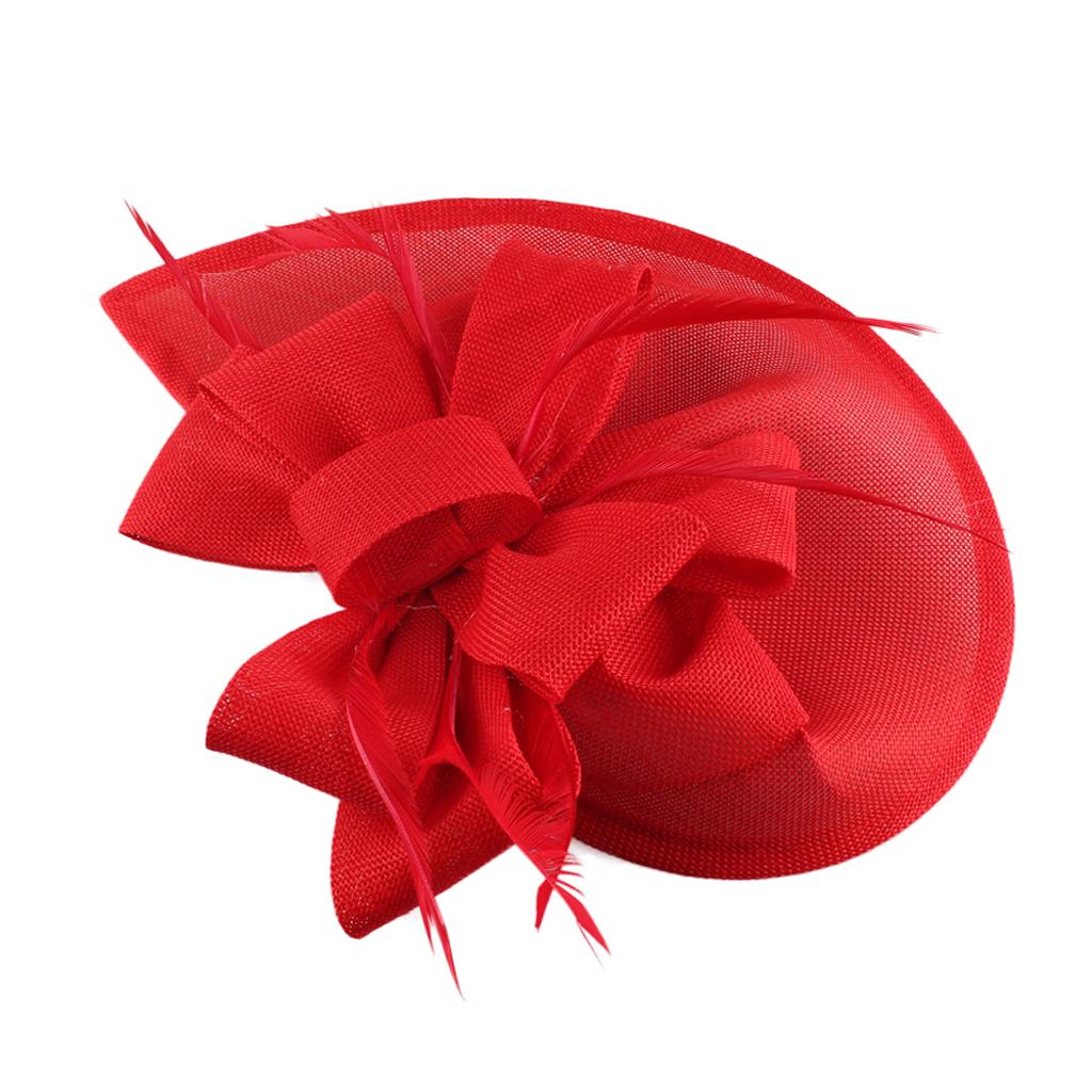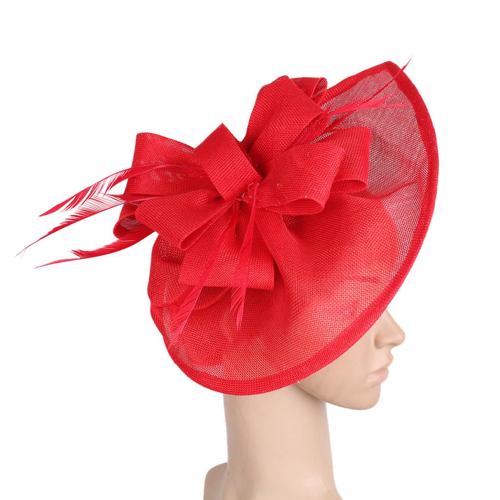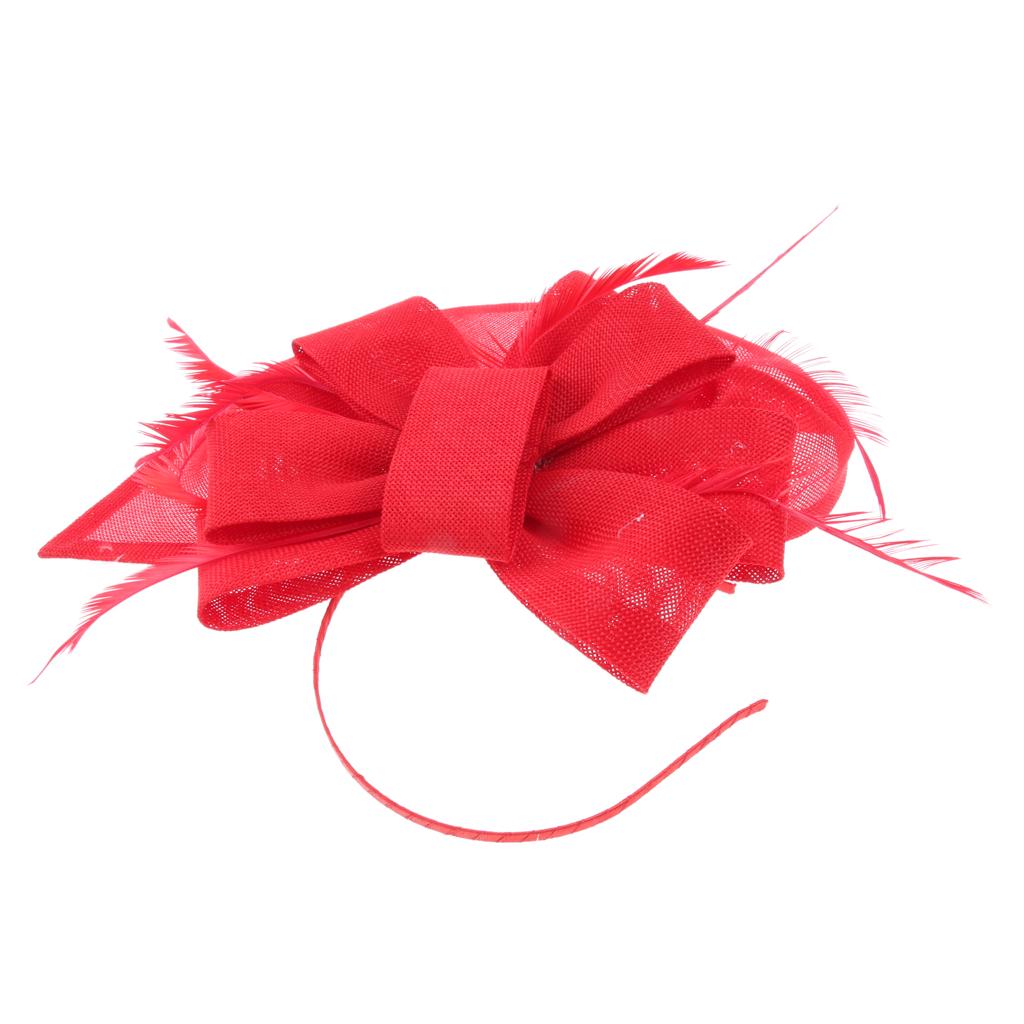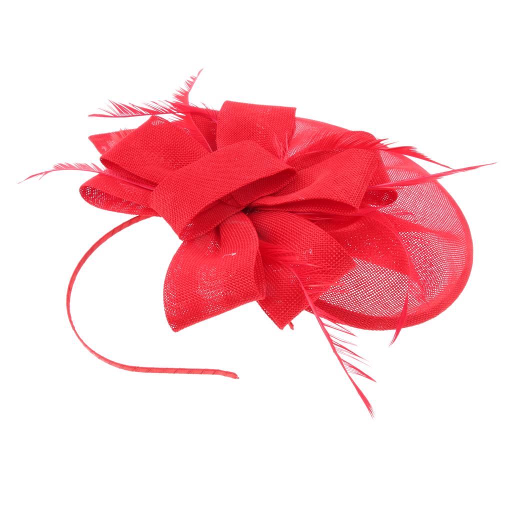 Womens Bridal Feather Fascinator Cocktail Party Hats Headpieces Headband Red