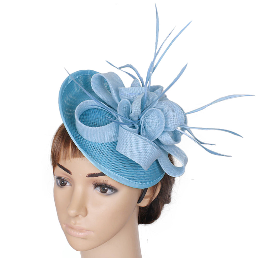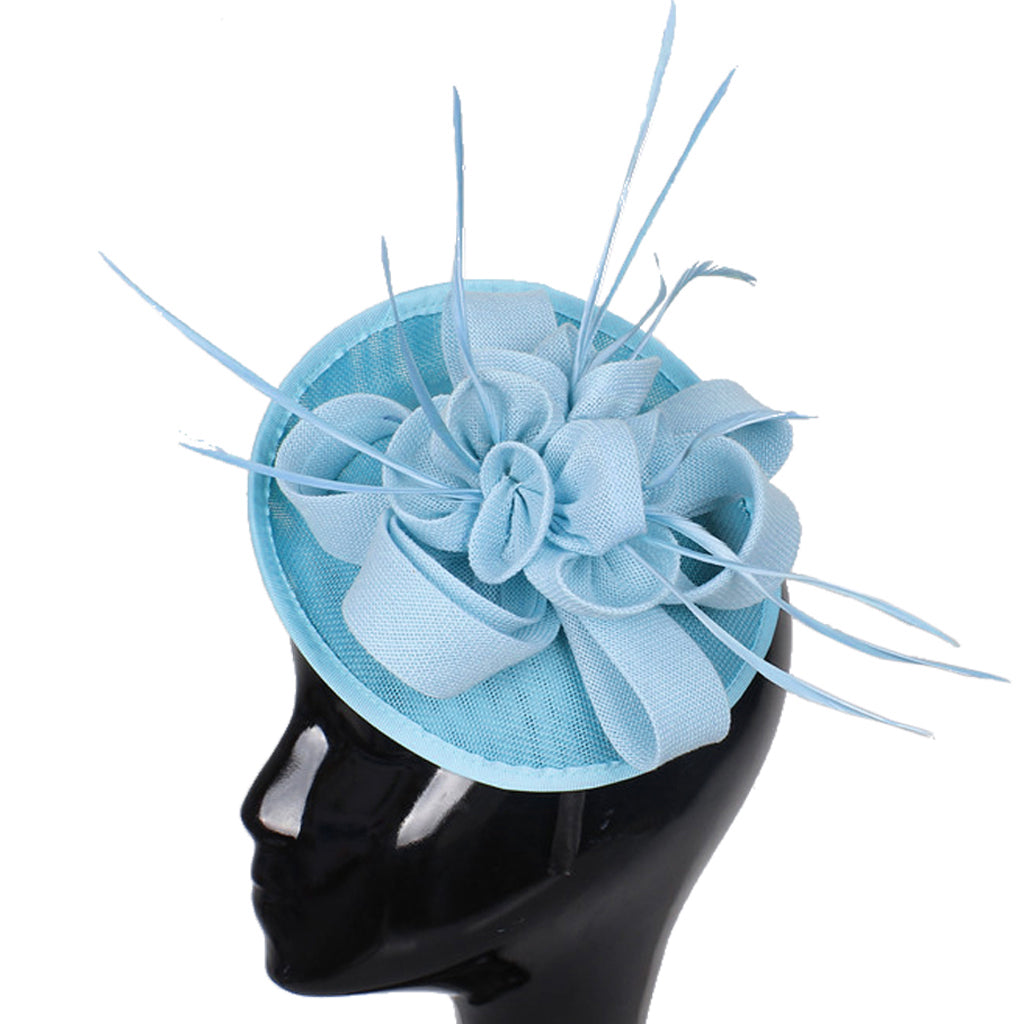 Womens Bridal Feather Fascinator Cocktail Party Hats Headpieces Headbands Blue