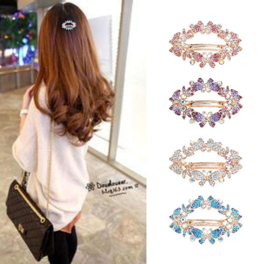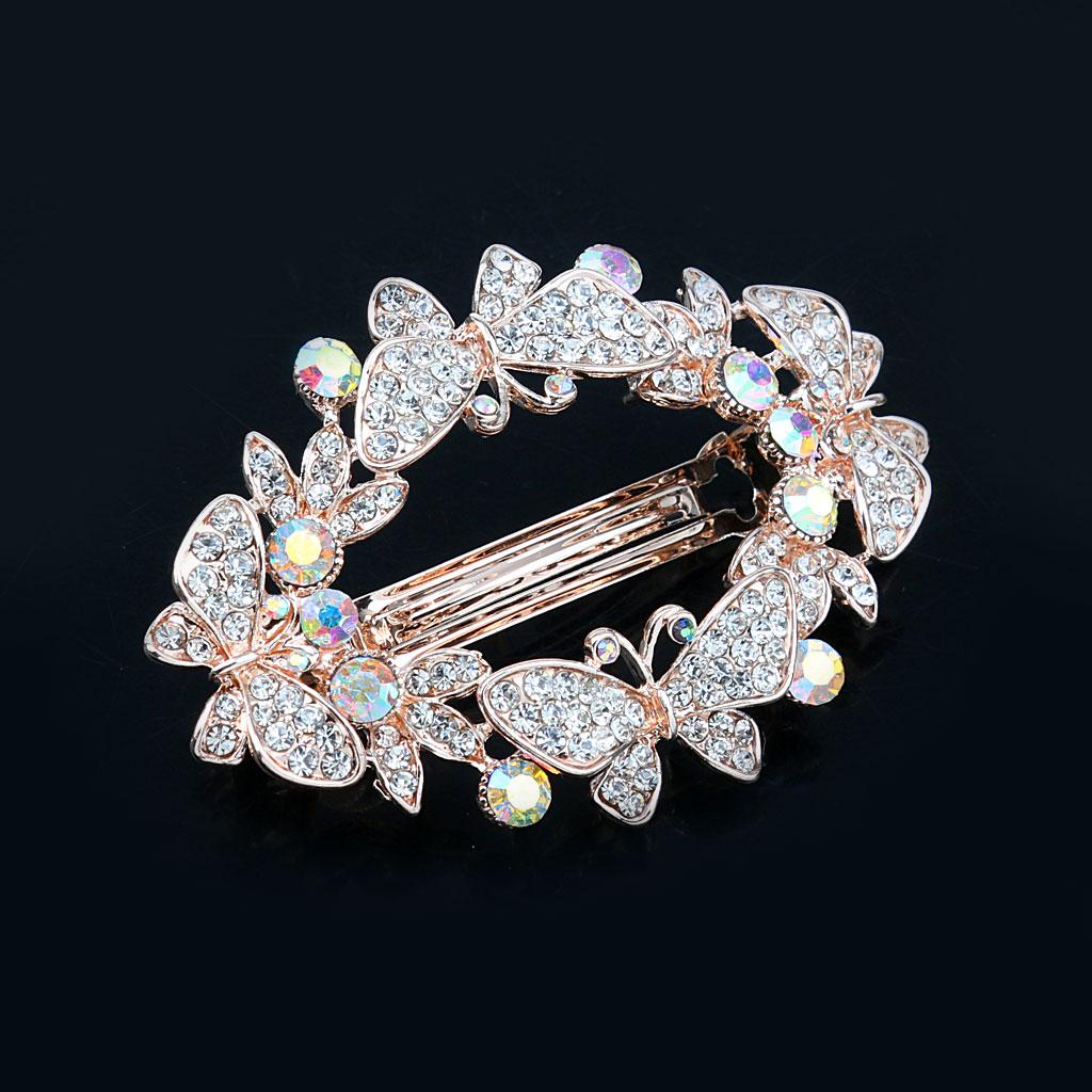 Womens Butterfly Rhinestone Wedding Spring Hair Clip Hair Pin Barrette White